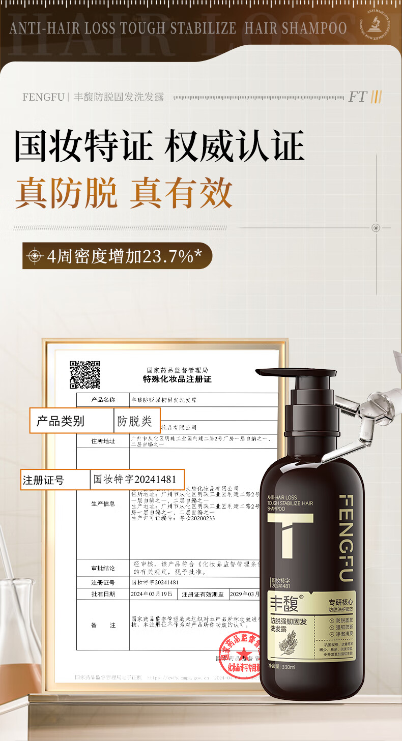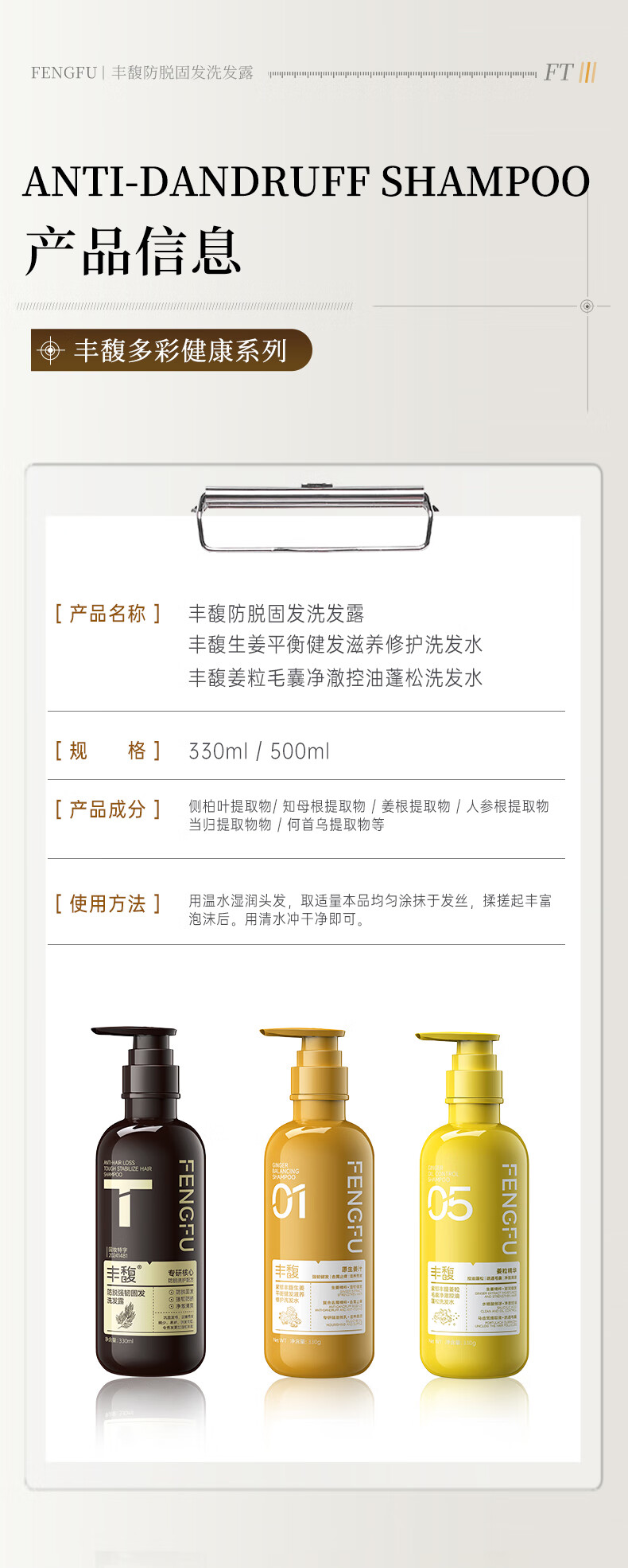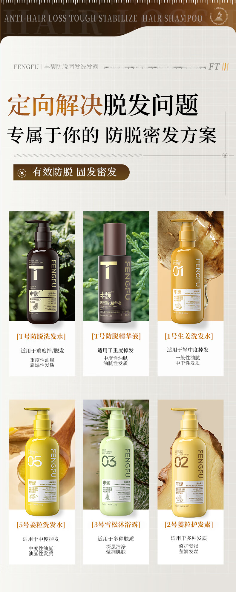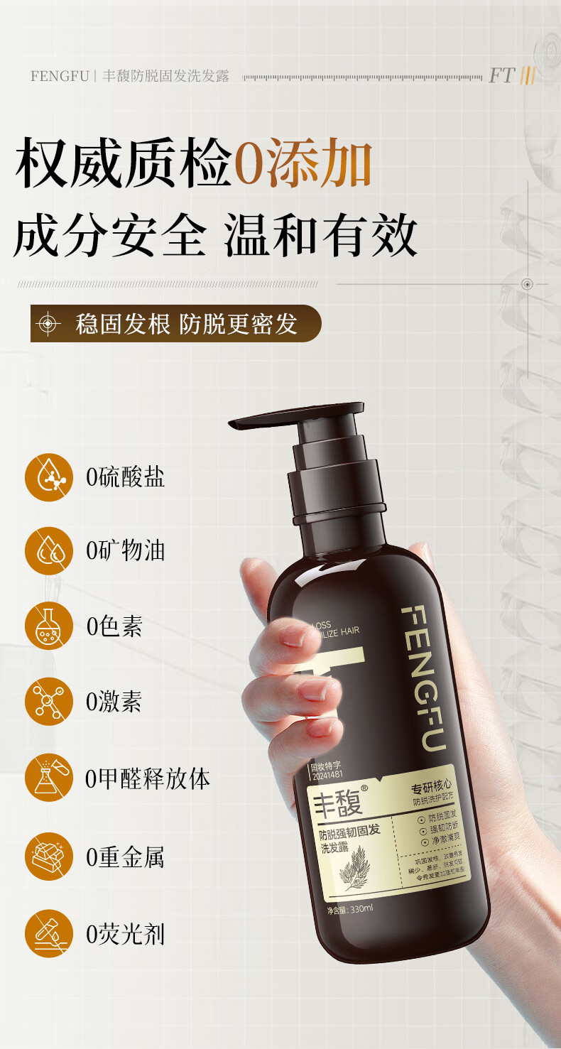 紫郁丰馥防脱洗发水控油蓬松洗头膏生姜固发防断掉发洗发露正品牌 T号防脱洗发水330ml