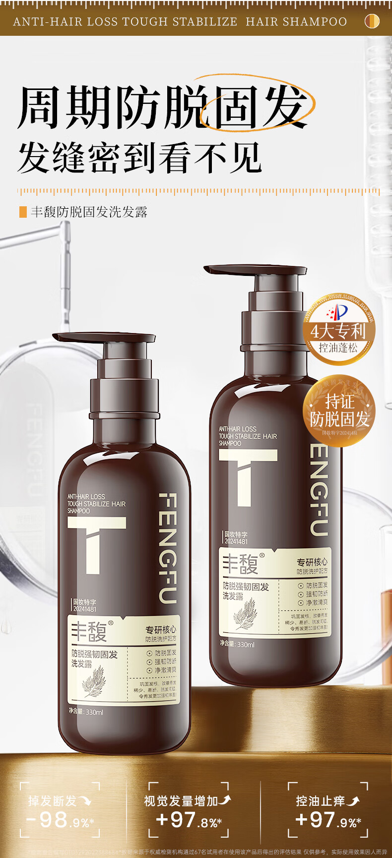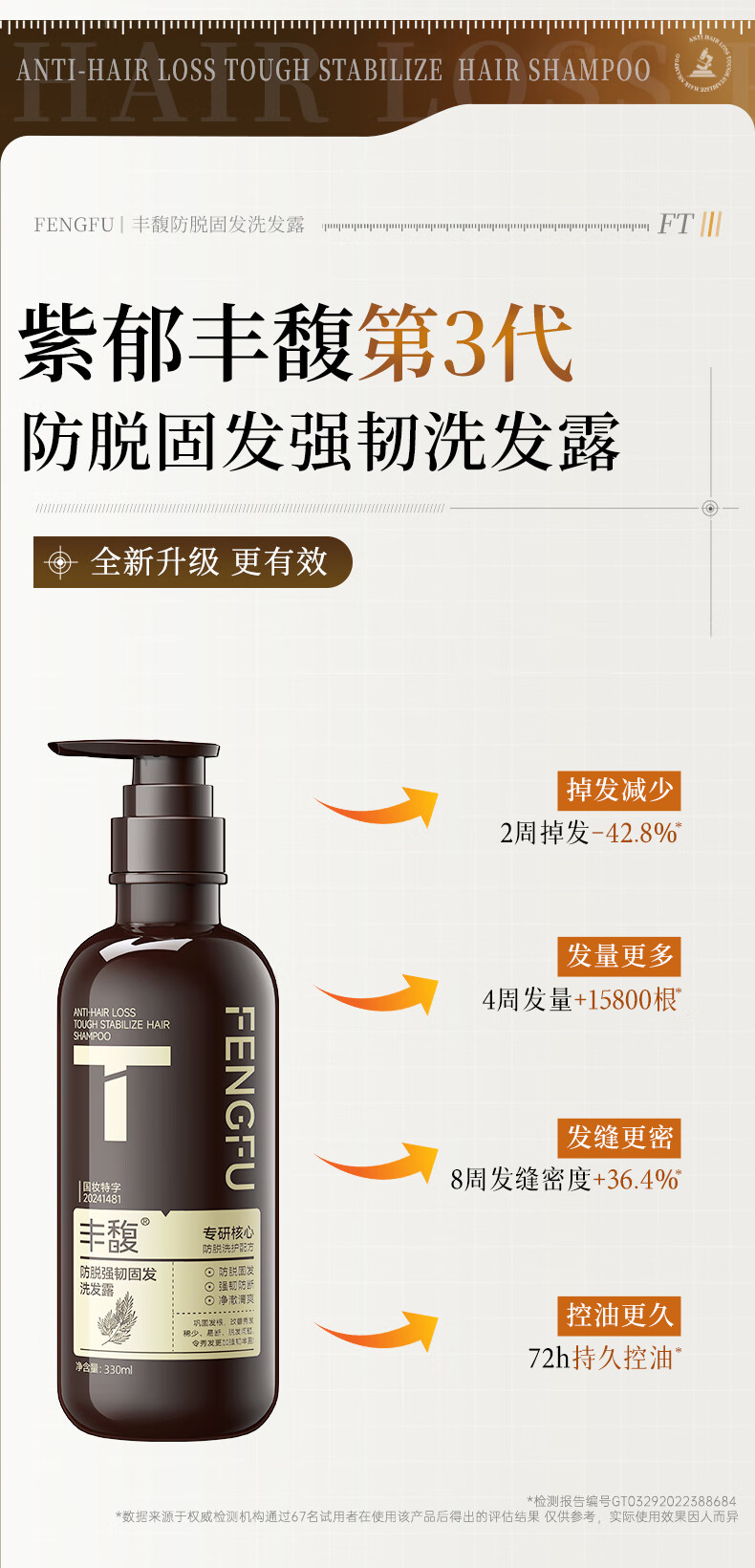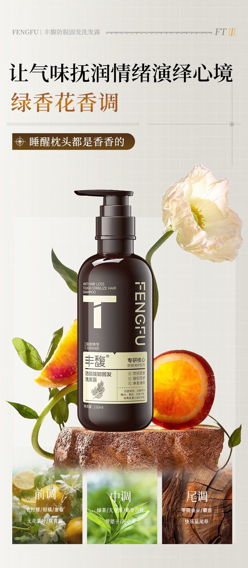 紫郁丰馥防脱洗发水控油蓬松洗头膏生姜固发防断掉发洗发露正品牌 T号防脱洗发水330ml