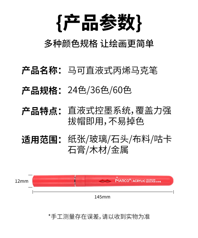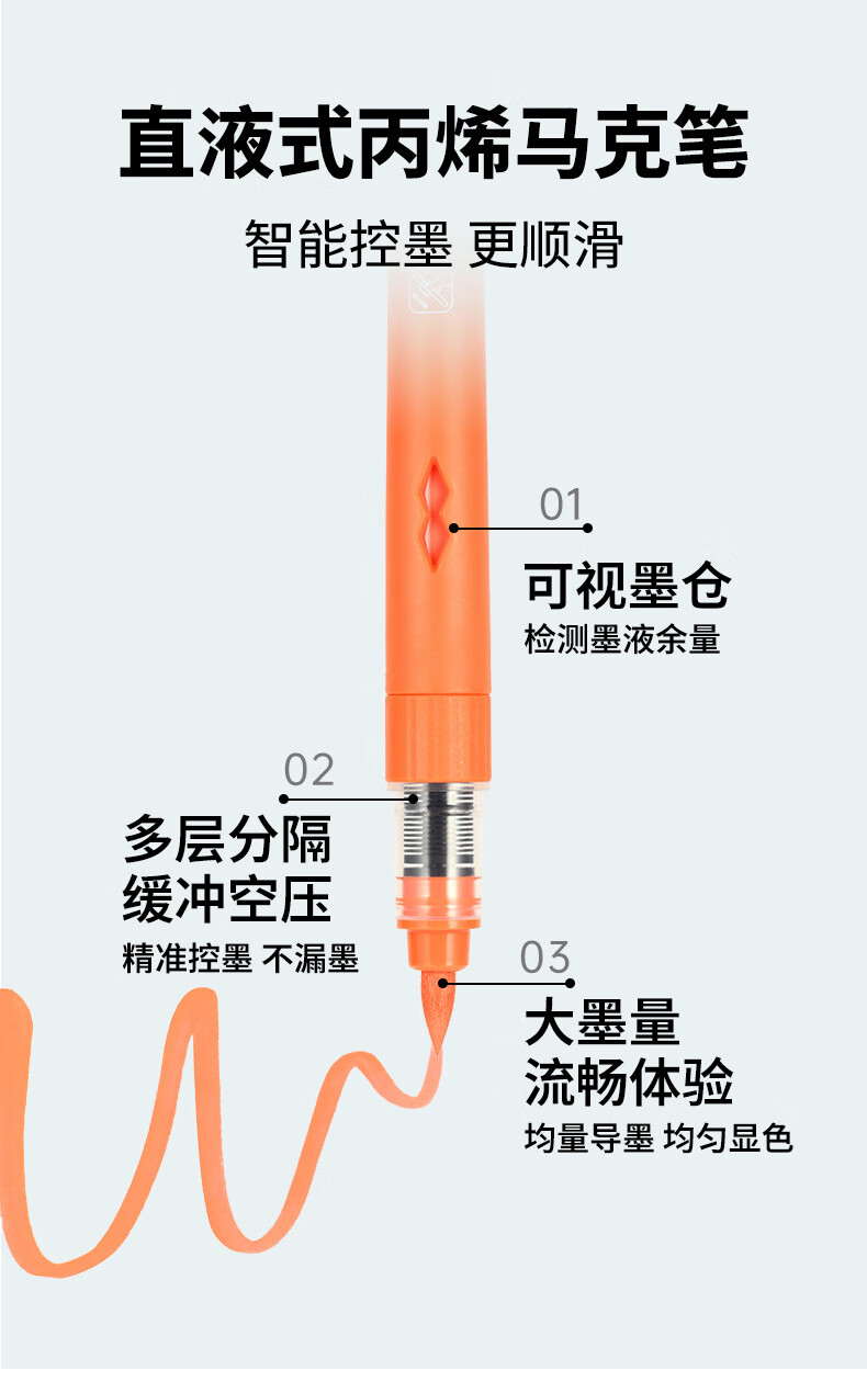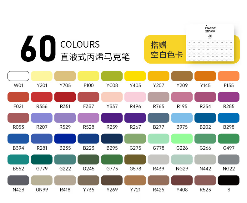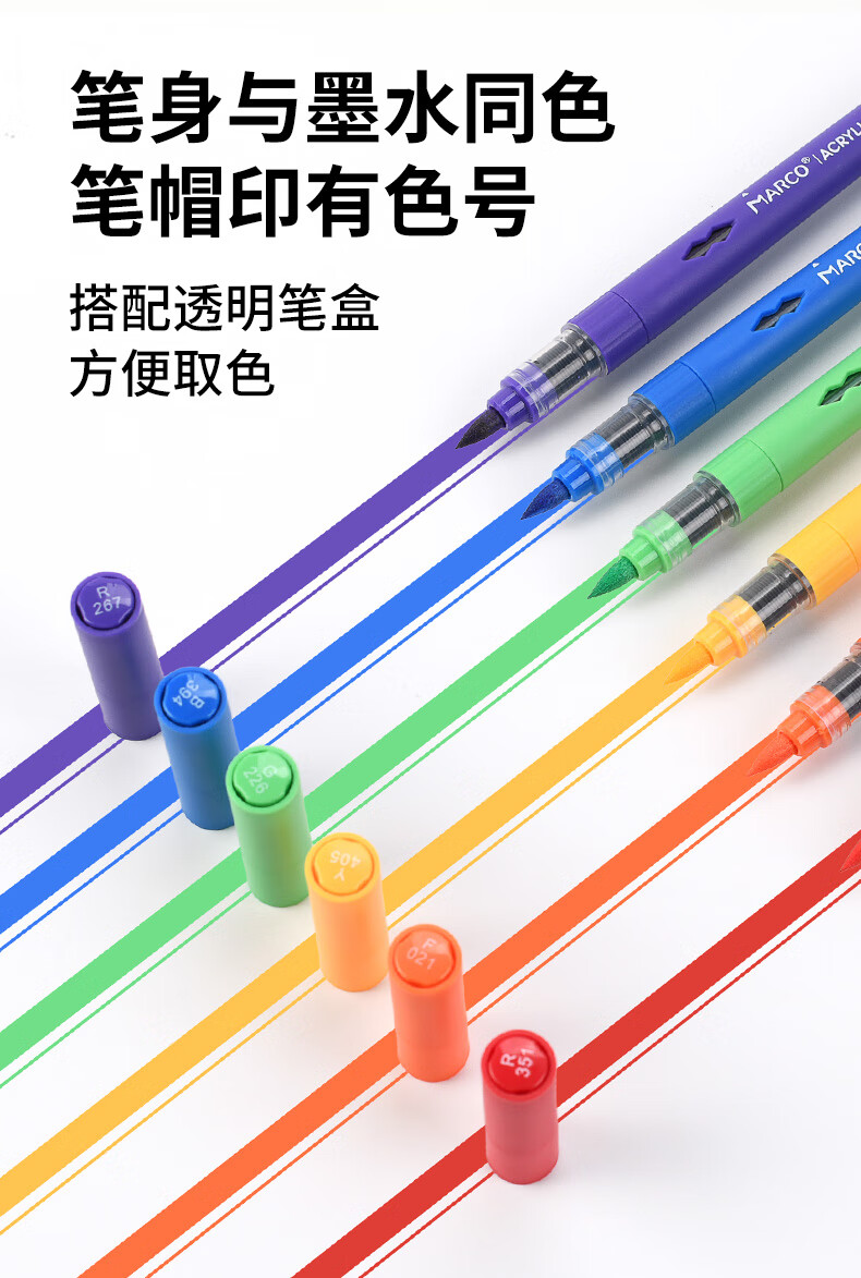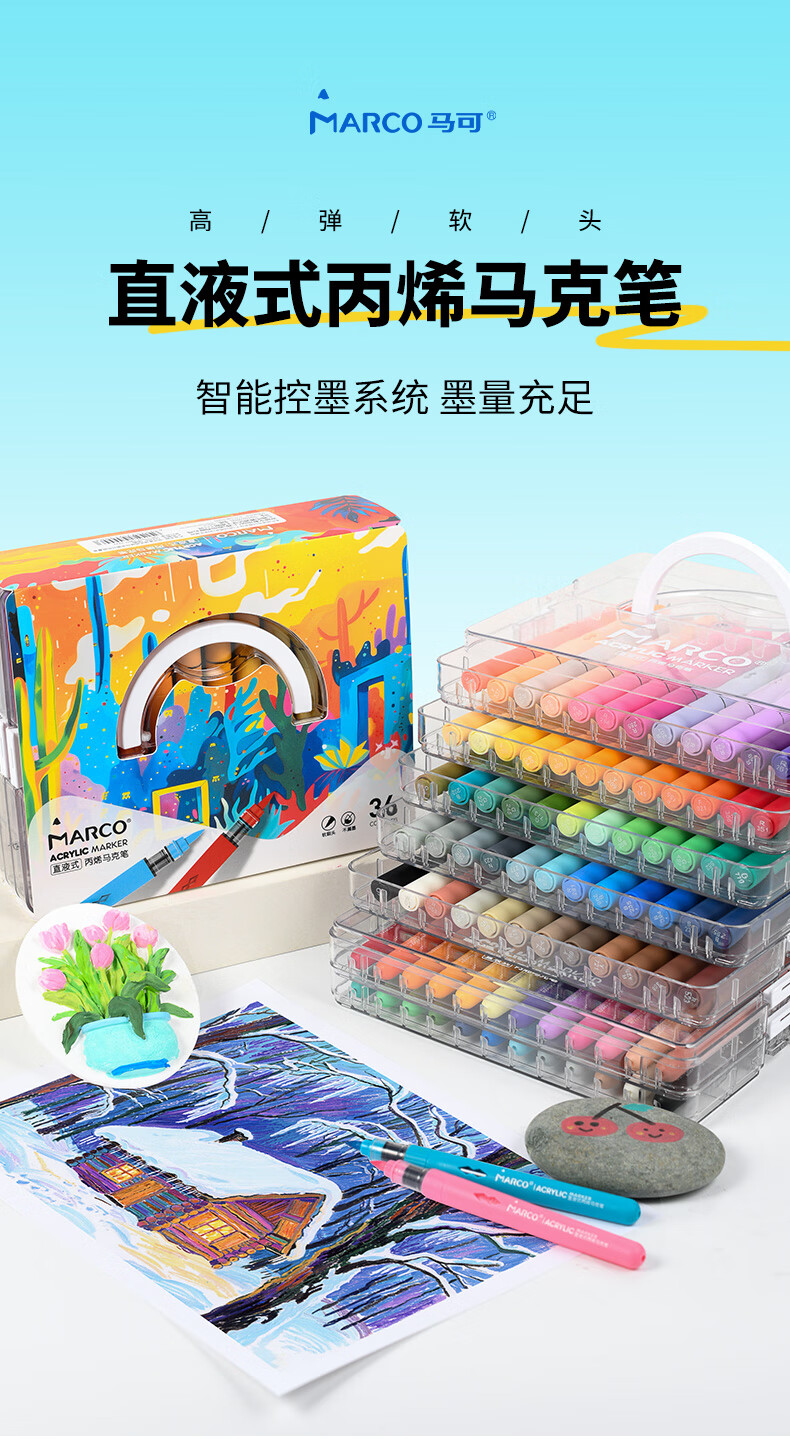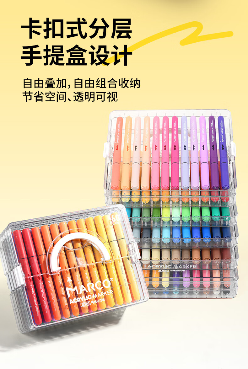 马可(MARCO)直液式软头丙烯马克笔60色儿童中小学生礼盒套装可叠色水彩笔记号笔颜料画笔幼儿园美育写生出游