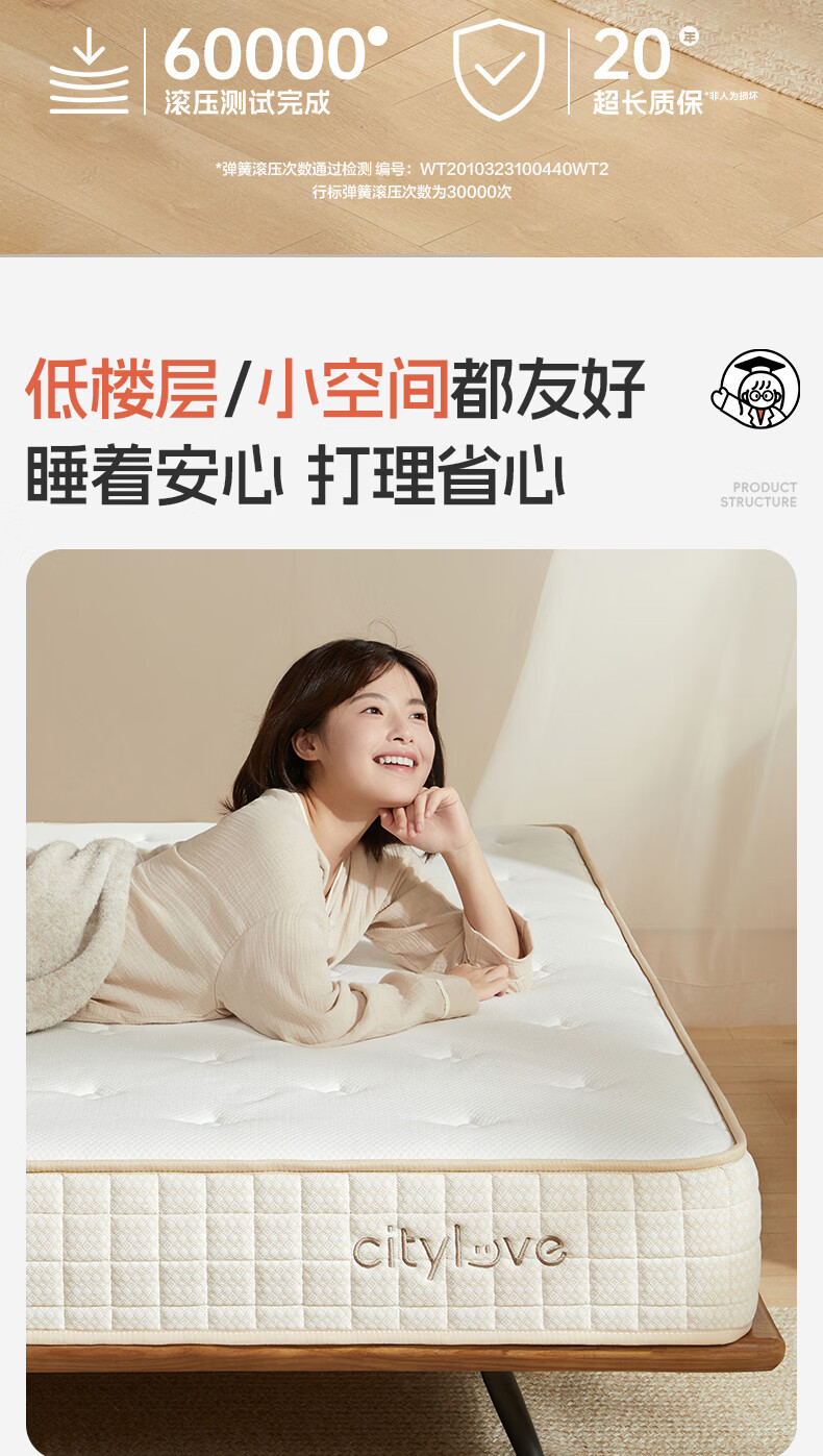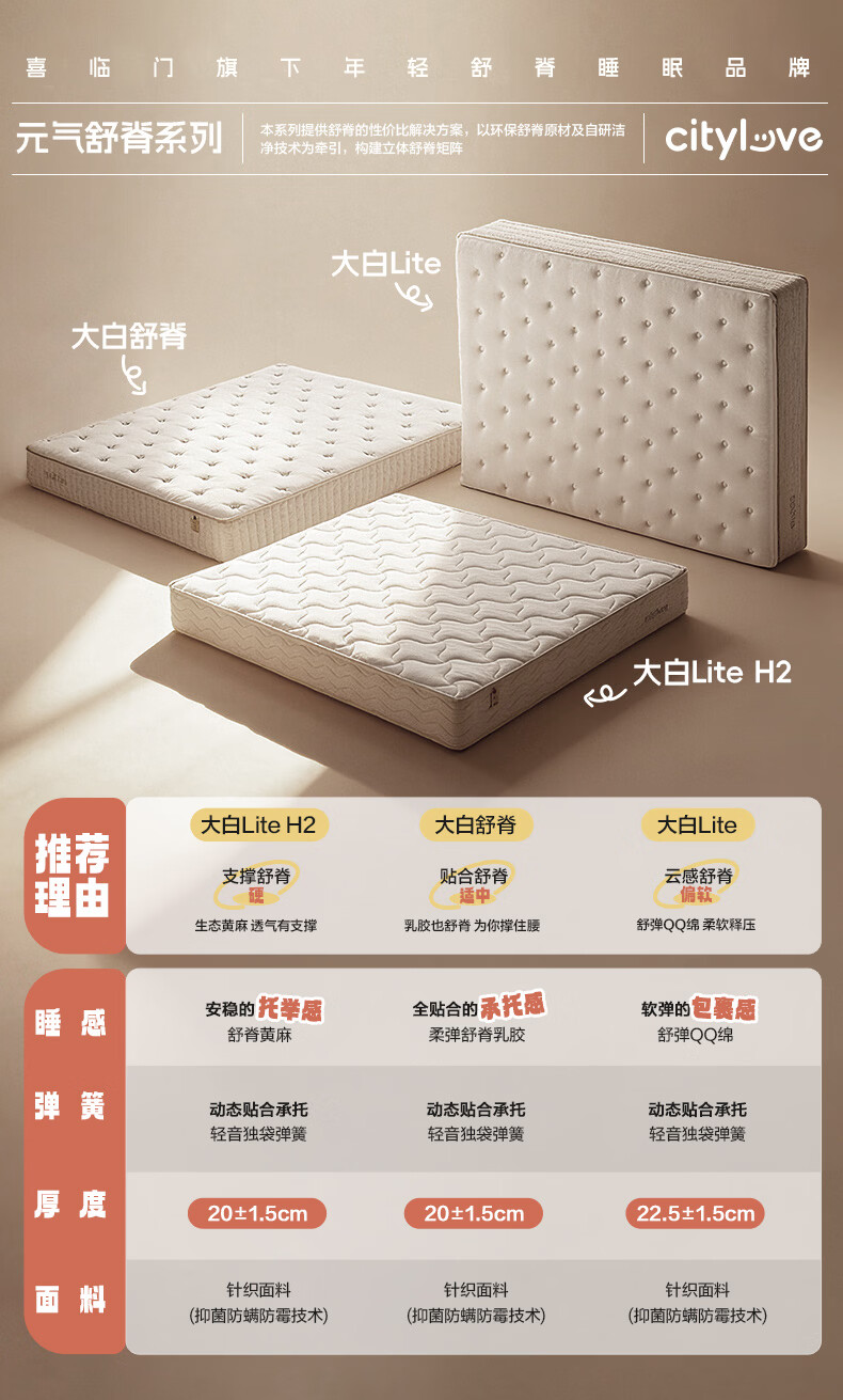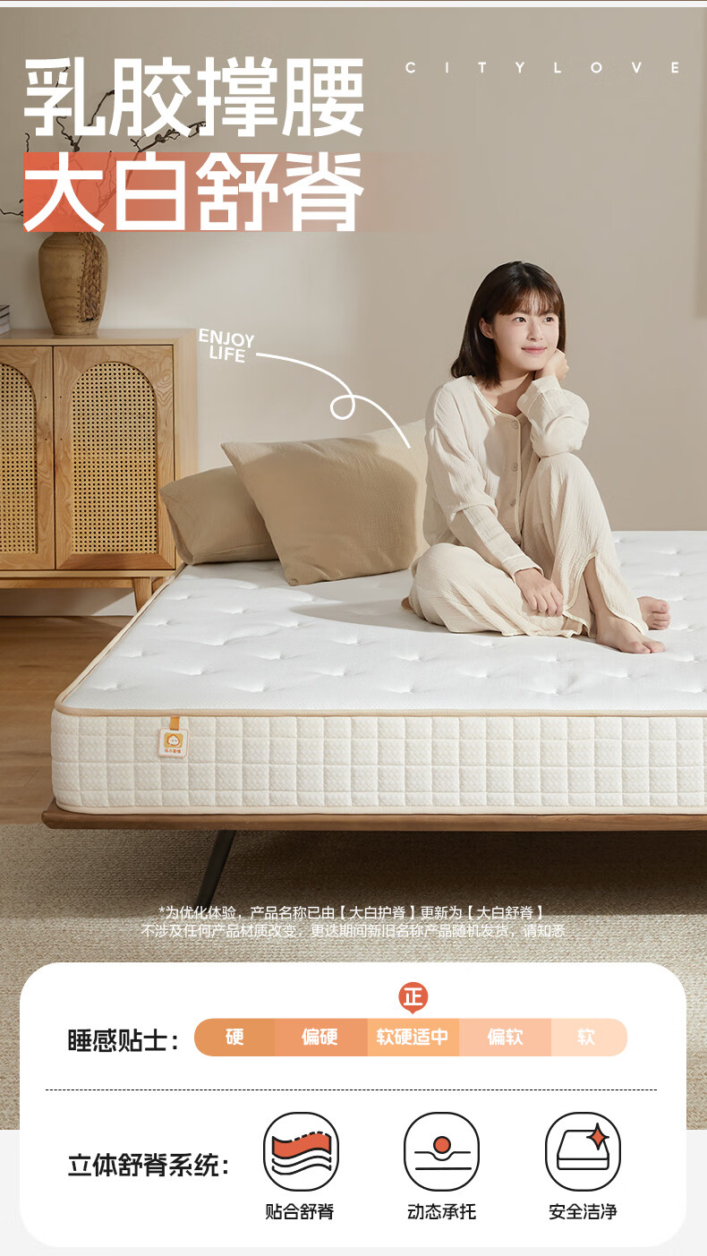 城市爱情喜临门大白舒脊乳胶床垫独立弹簧席梦思双人床垫子 大白舒脊(乳胶+独袋弹簧) 1.5*2.0米