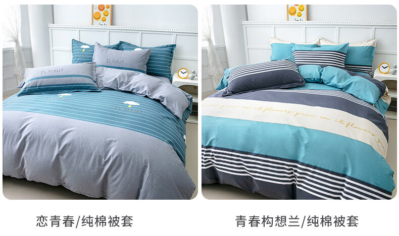 正圣被套单人150x200被罩200x230cm单件加厚纯棉100全棉学生宿舍被单 告白情书蓝/被罩 纯棉被套 150cm*200cm