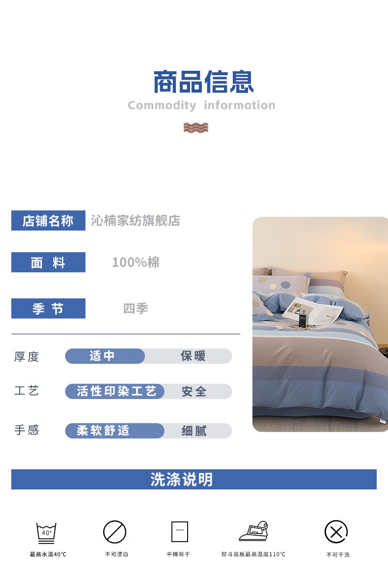无印良品全棉床品四件套纯棉100%小清新花卉风单双人四季通用可裸睡三件套 苏屿【全棉面料 清新印花】 1.8m 床单款 被套200*230cm