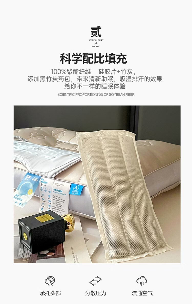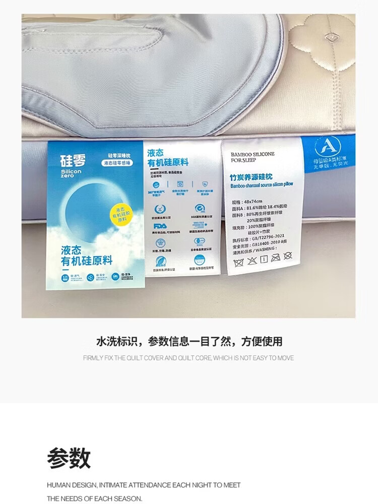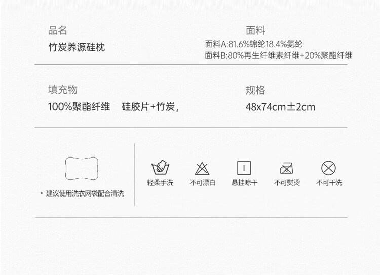 ROLAND LIVE高奢竹炭养源硅护颈助眠枕透气48*74cm家用枕头学生宿舍单人枕芯 TXA 竹炭养源硅枕 【一只装】 48*74cm