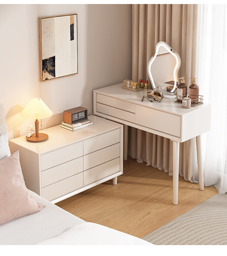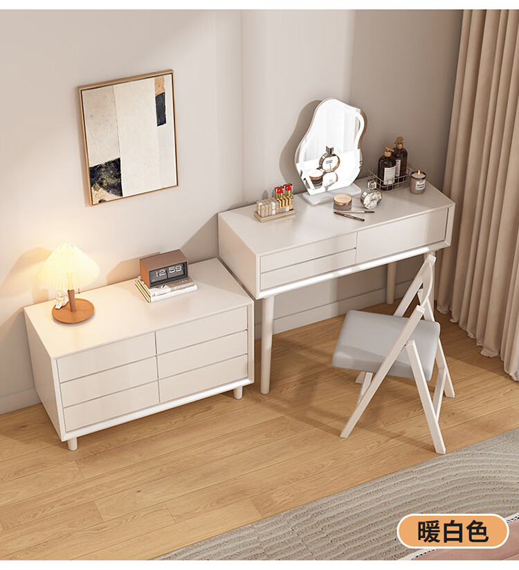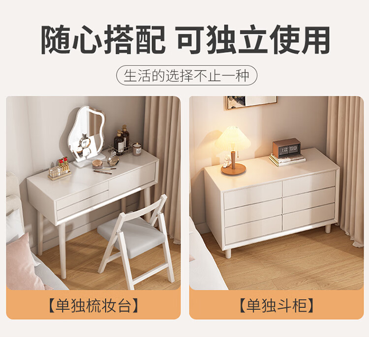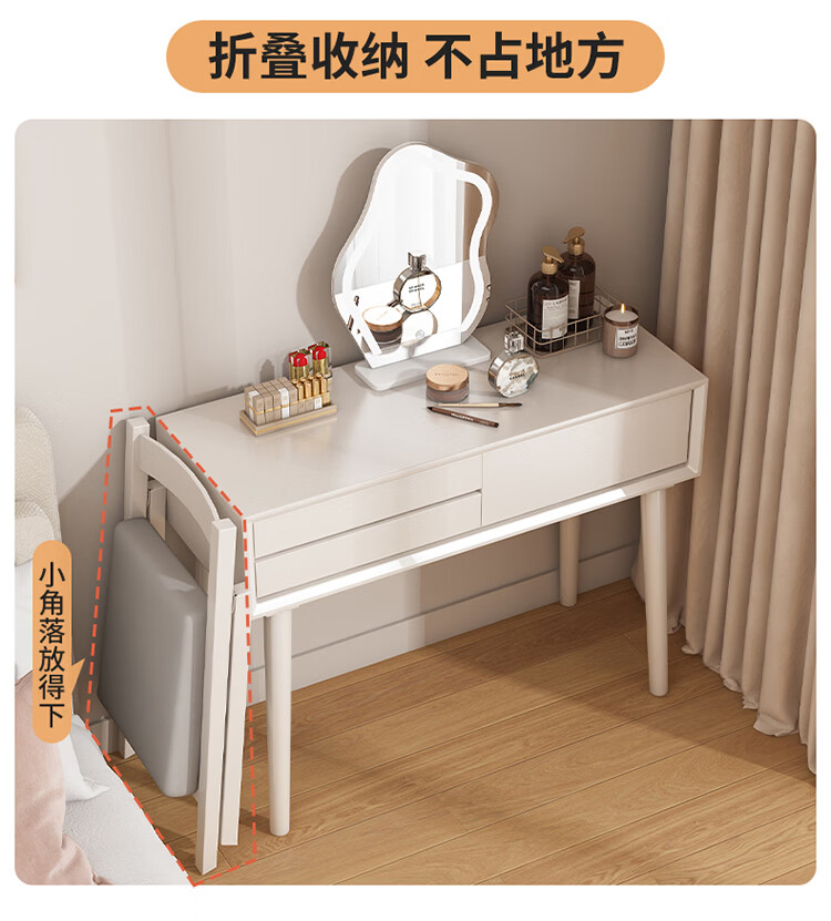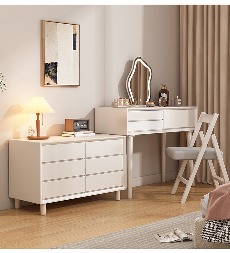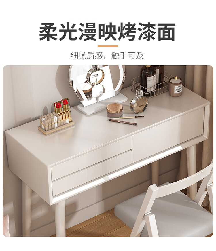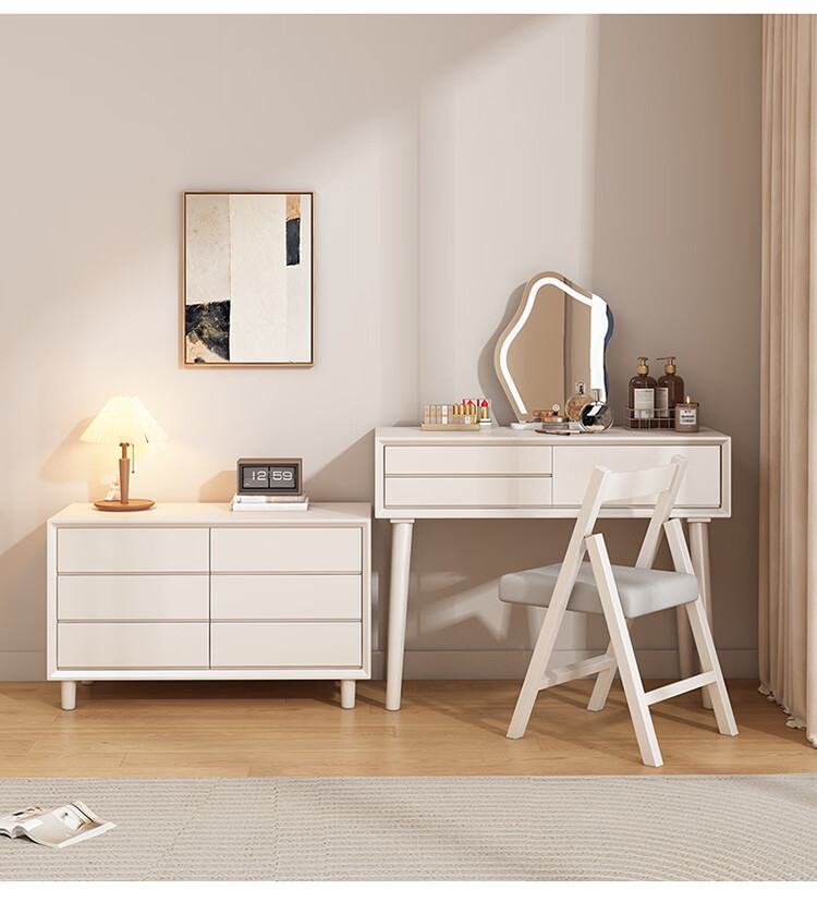 科虎卧室梳妆台斗柜一体实木化妆台书桌二合一小户型 奶油白 梳妆台(无镜)