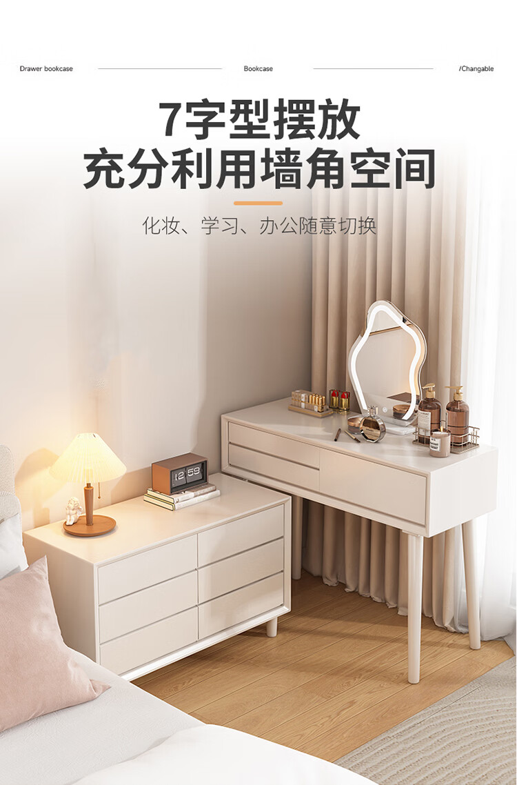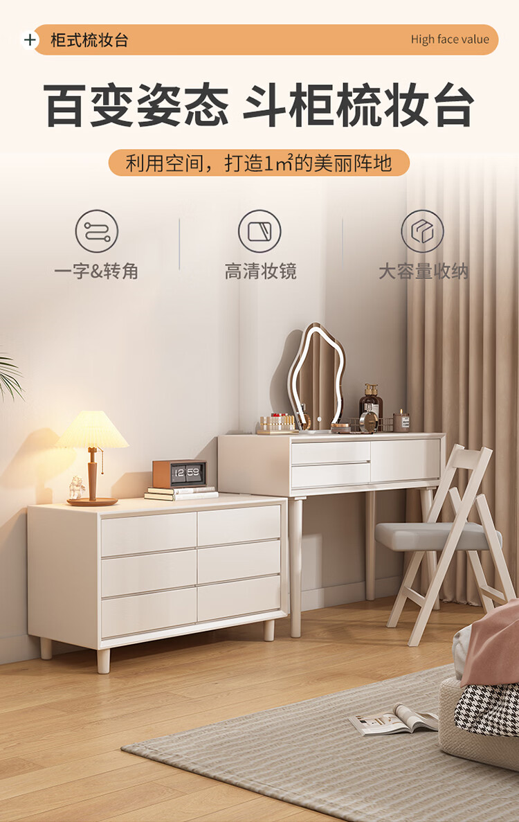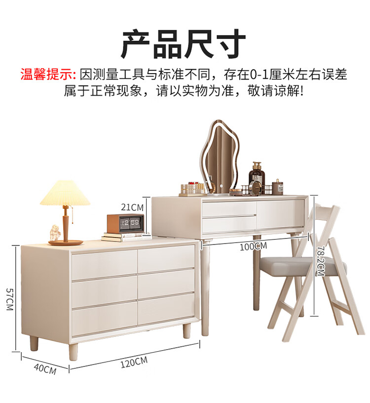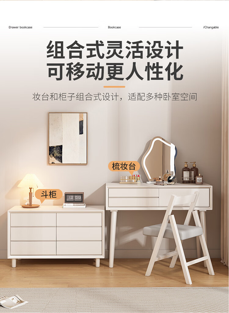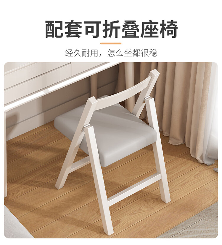 科虎卧室梳妆台斗柜一体实木化妆台书桌二合一小户型 奶油白 梳妆台(无镜)