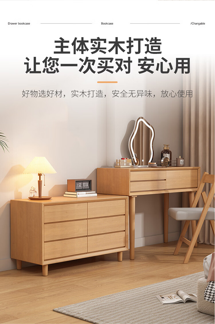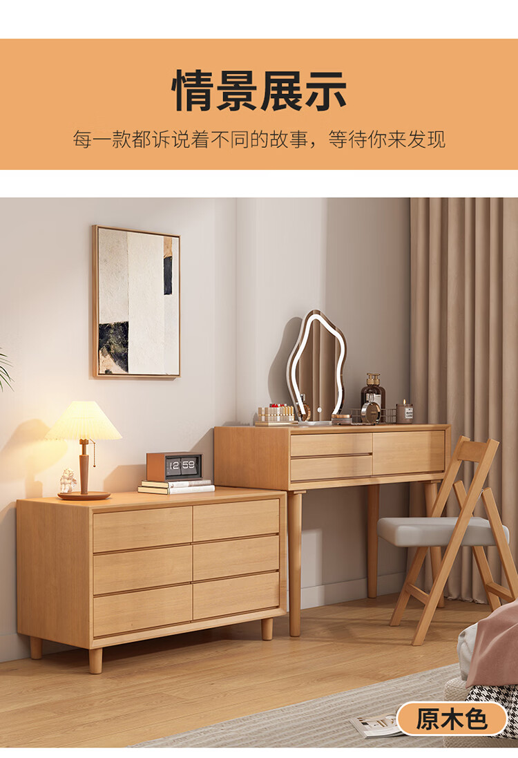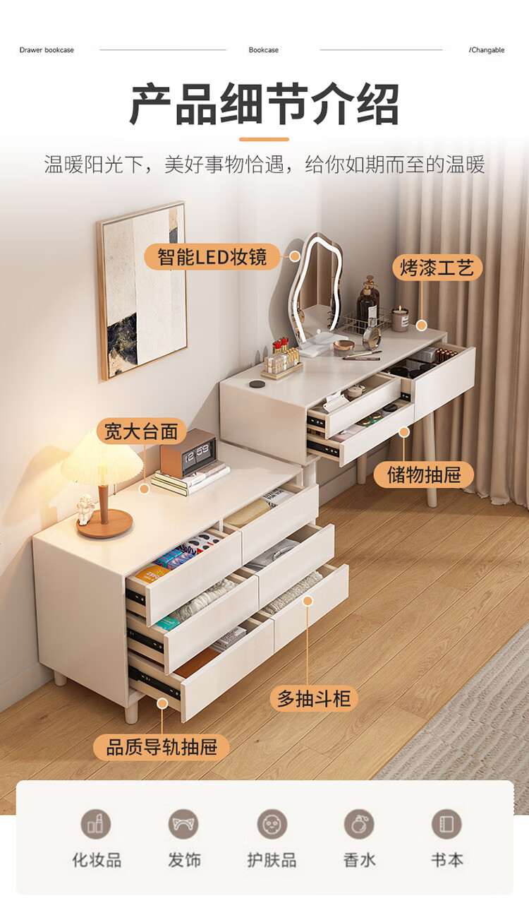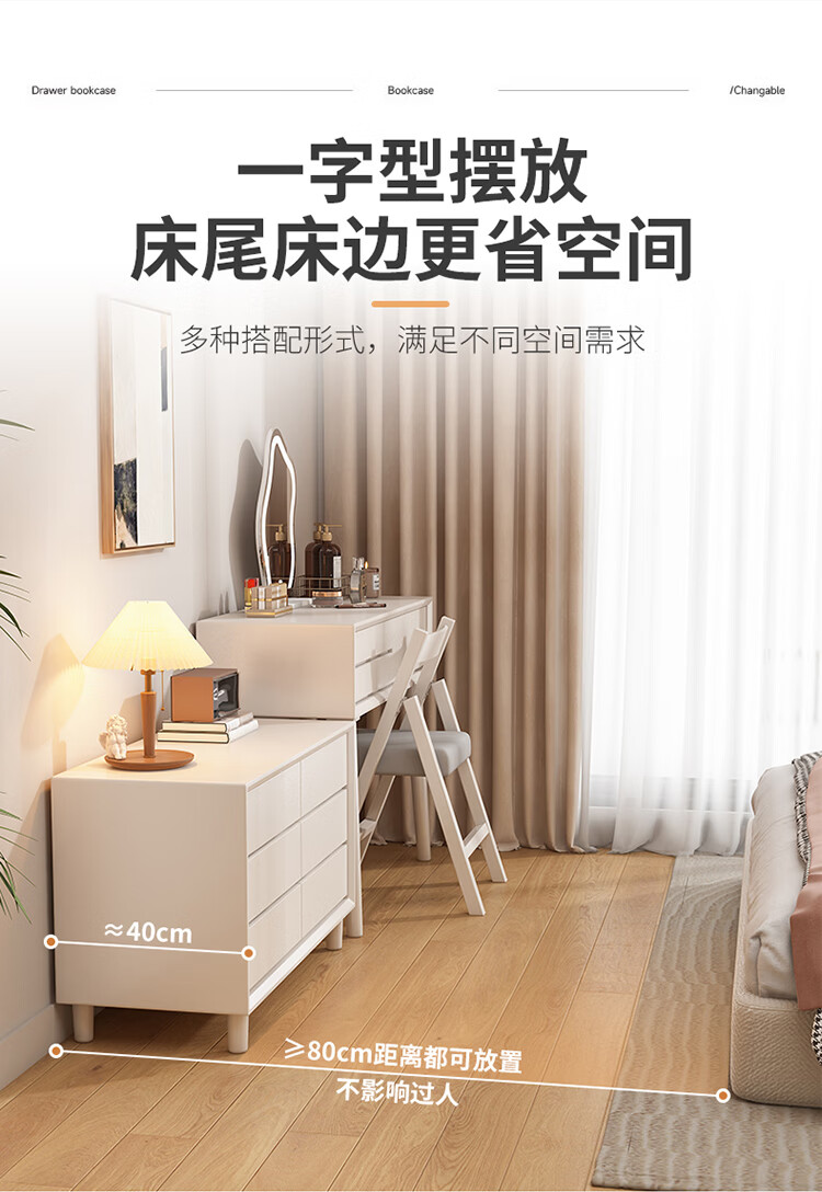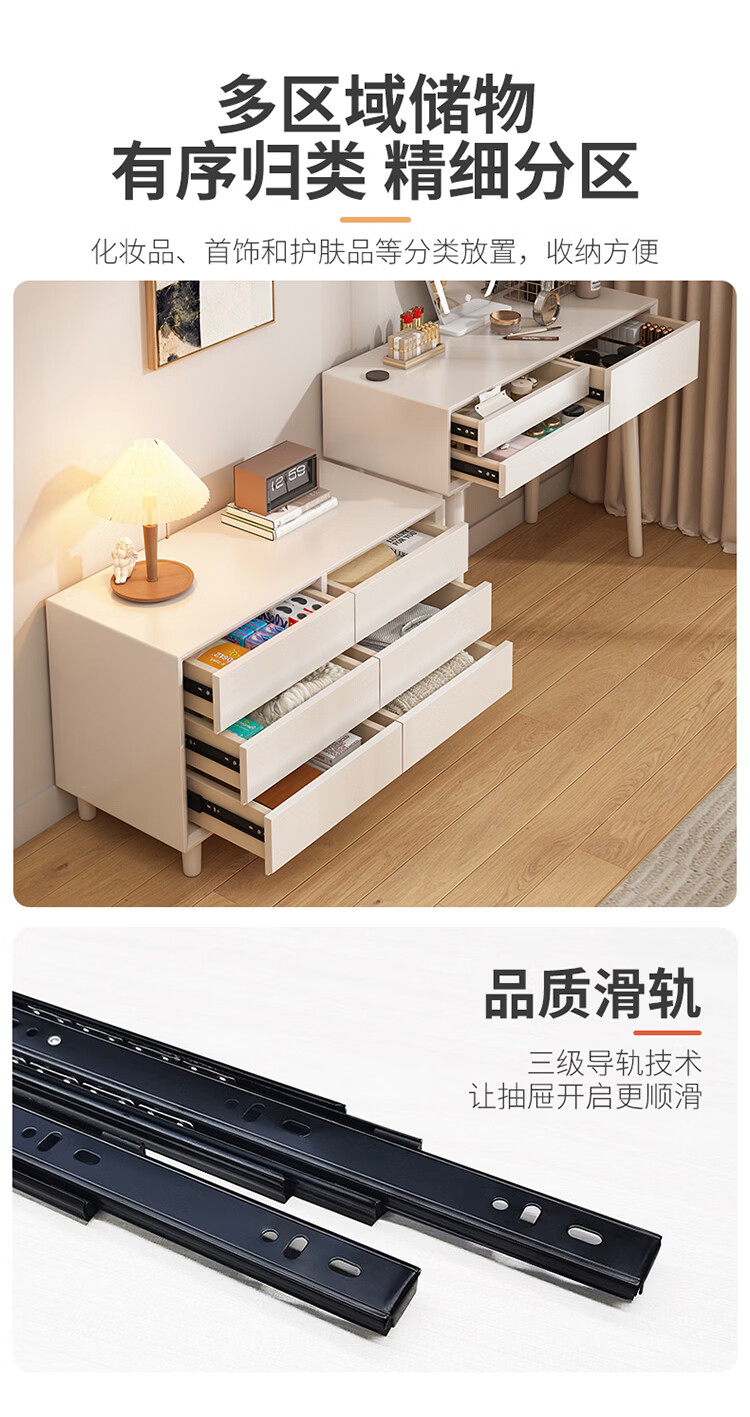 科虎卧室梳妆台斗柜一体实木化妆台书桌二合一小户型 奶油白 梳妆台(无镜)