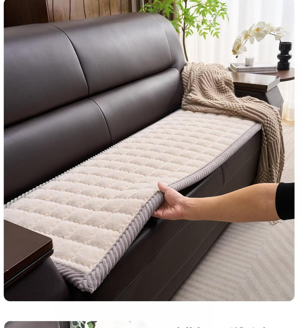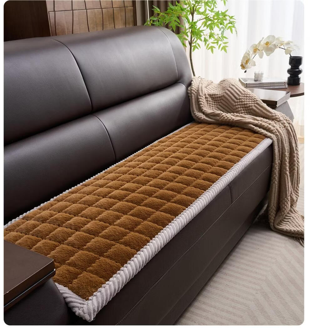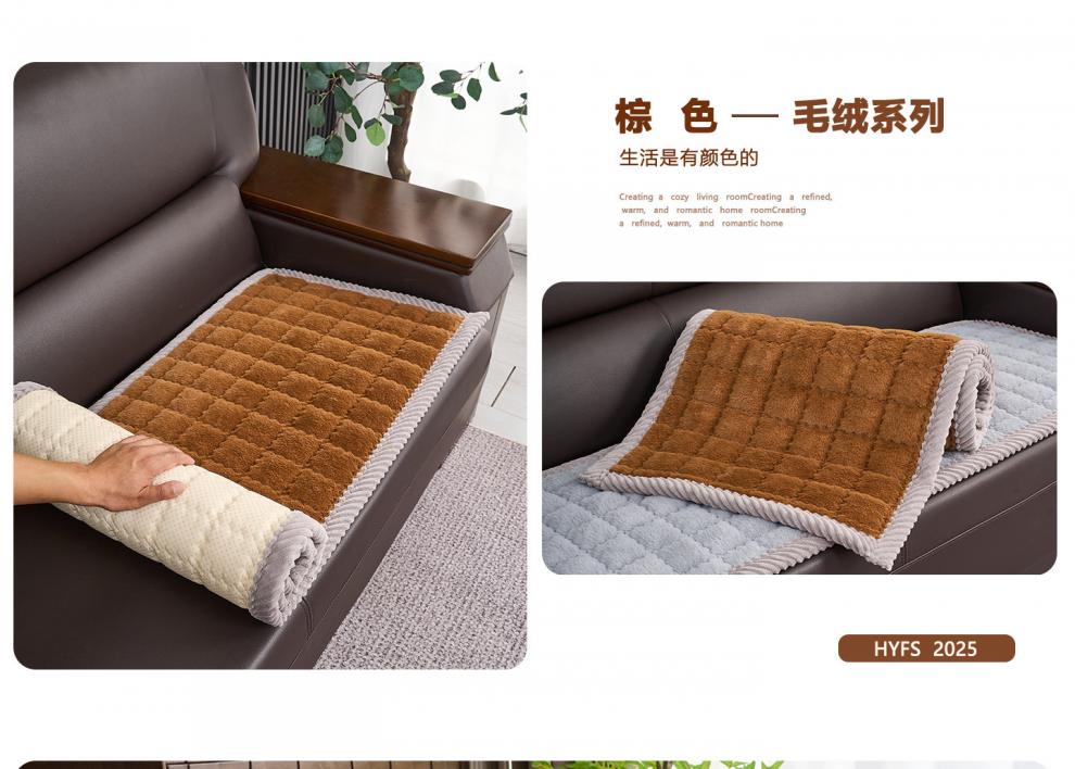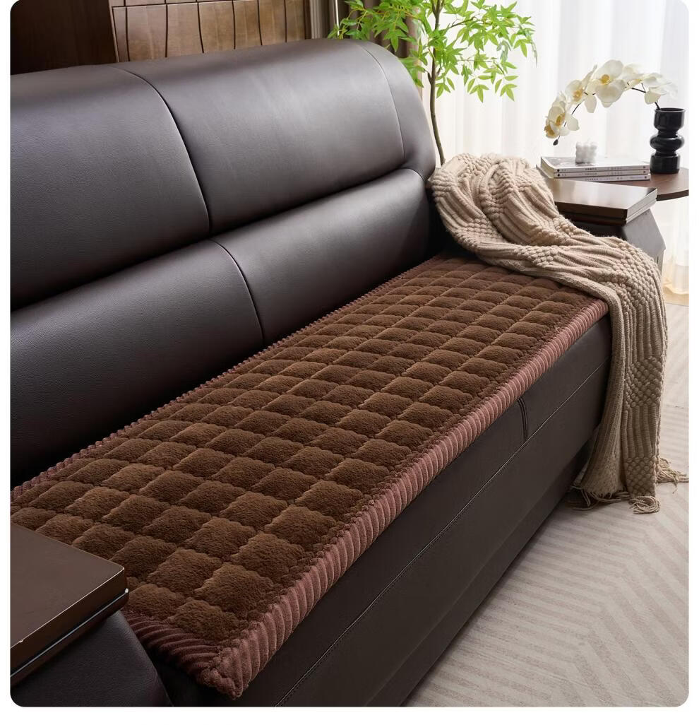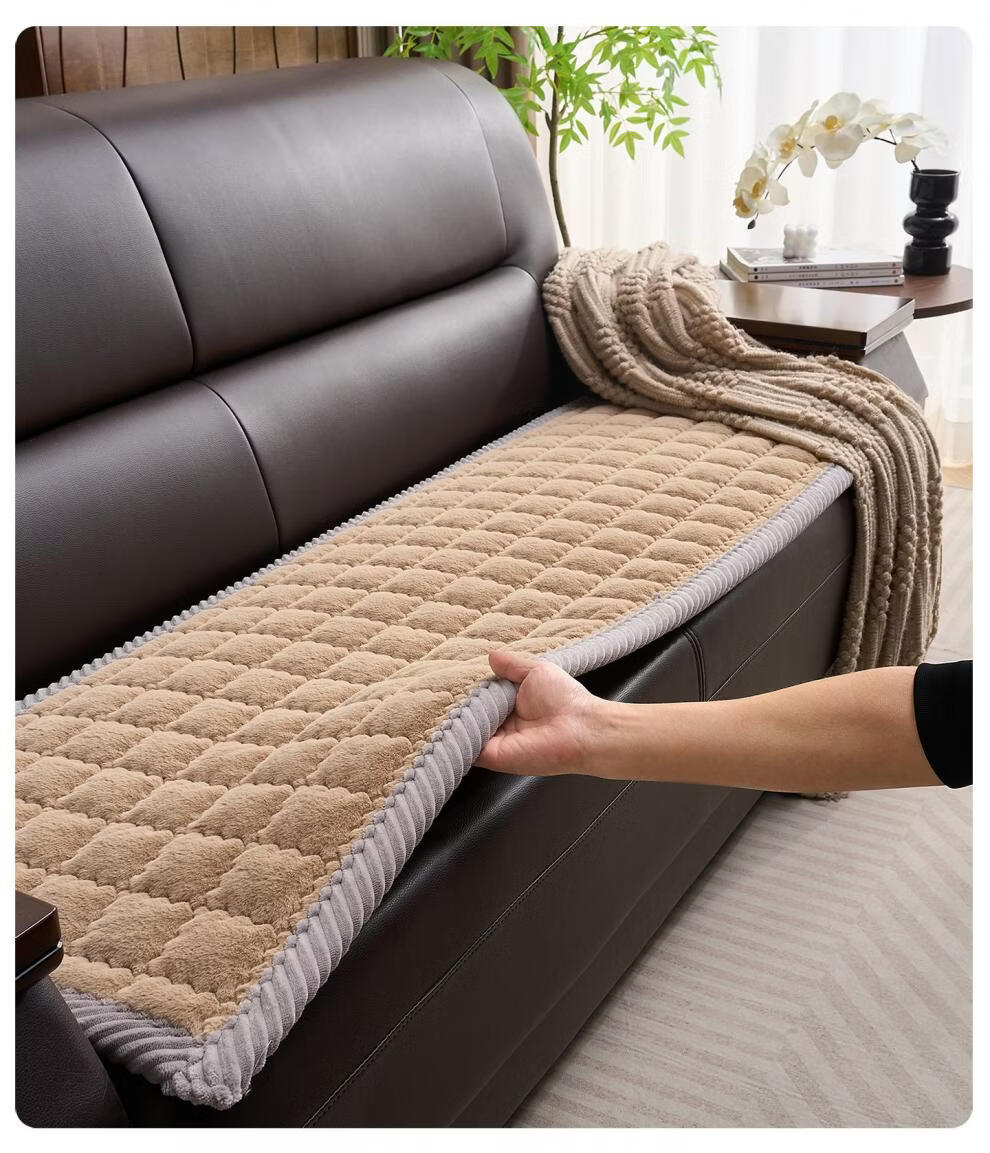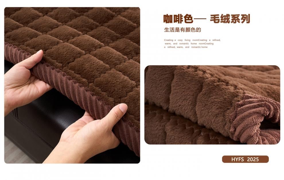 正圣加厚毛绒三人位沙发垫子沙发巾轻奢2025年流行皮沙发专用垫 兔毛-方格 咖啡 1cm*1cm 定制联系客服改价(不可退换)