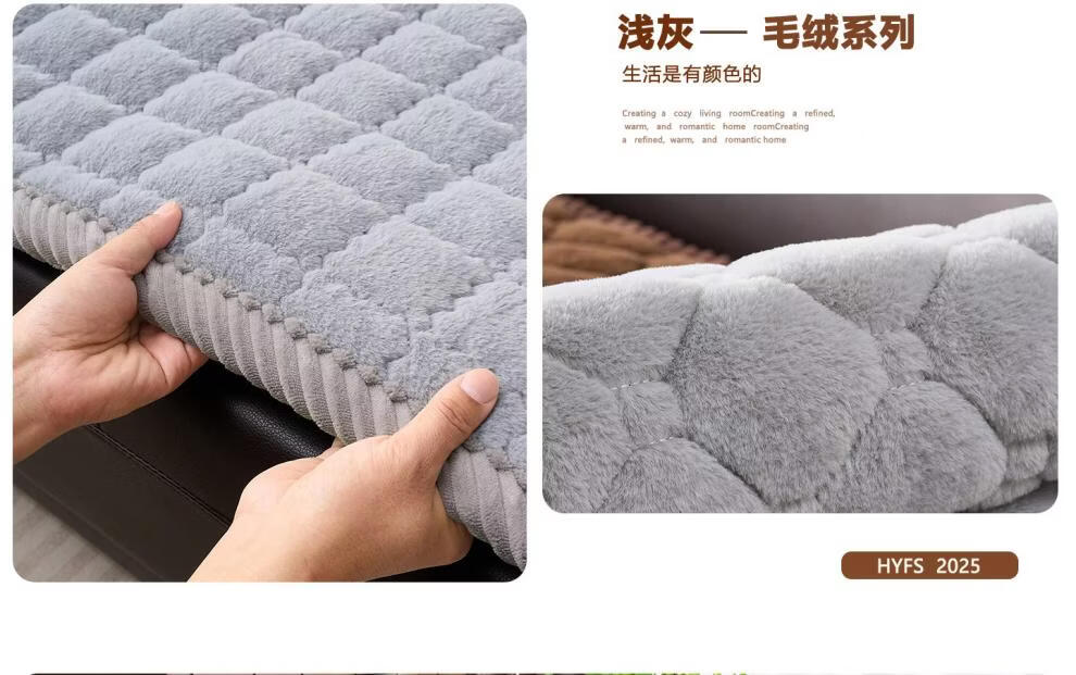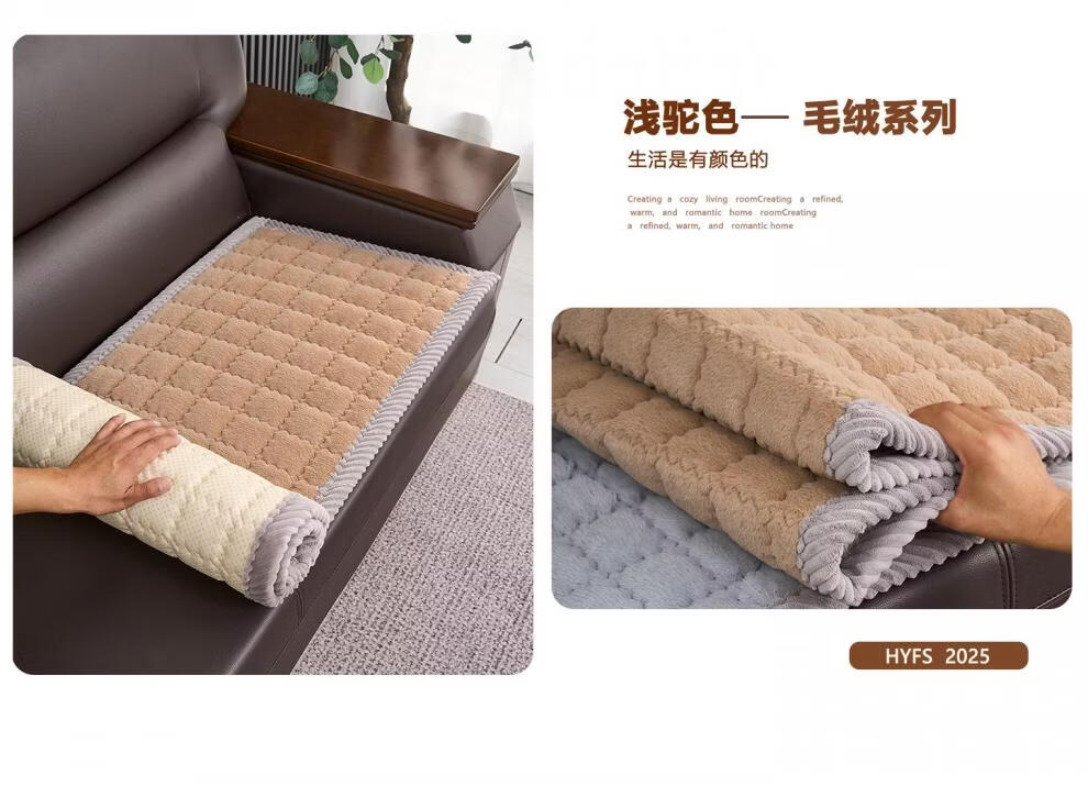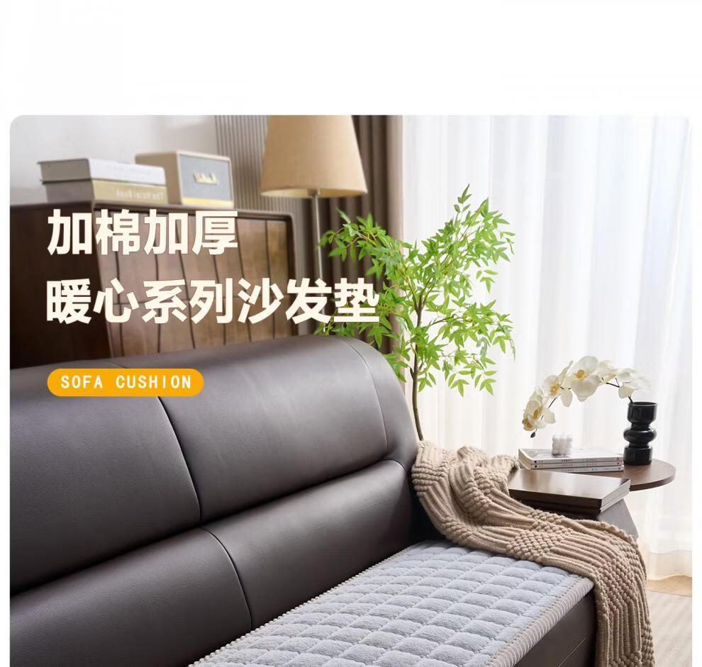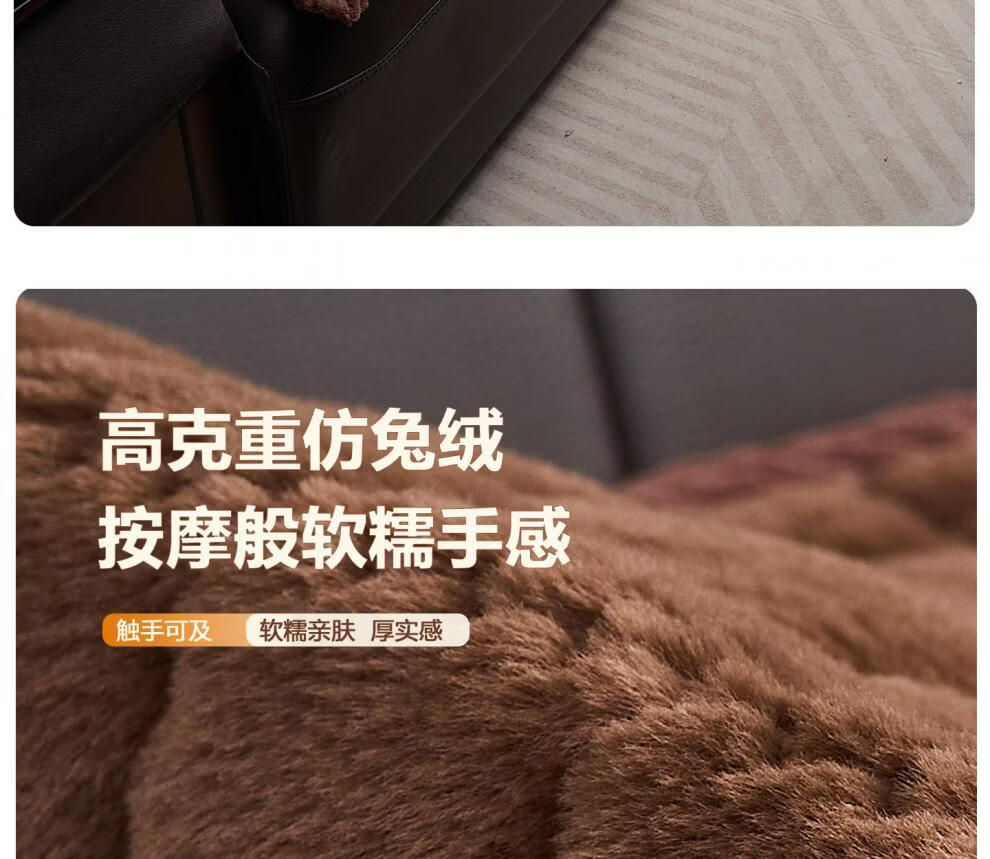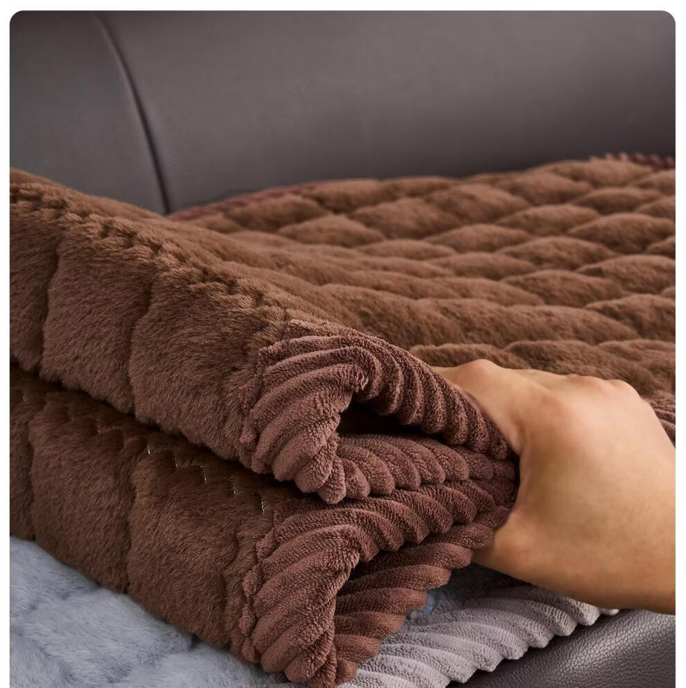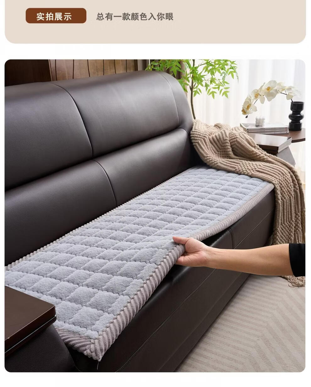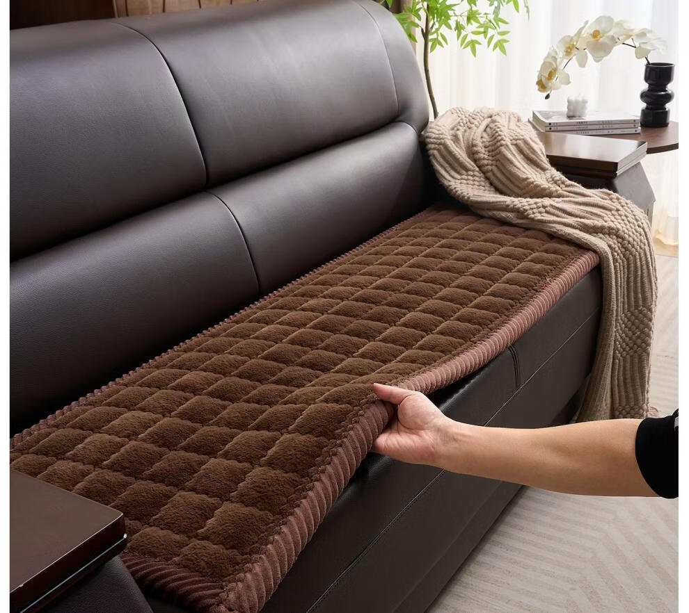正圣加厚毛绒三人位沙发垫子沙发巾轻奢2025年流行皮沙发专用垫 兔毛-方格 咖啡 1cm*1cm 定制联系客服改价(不可退换)
