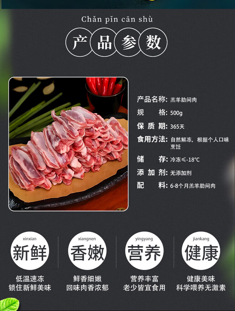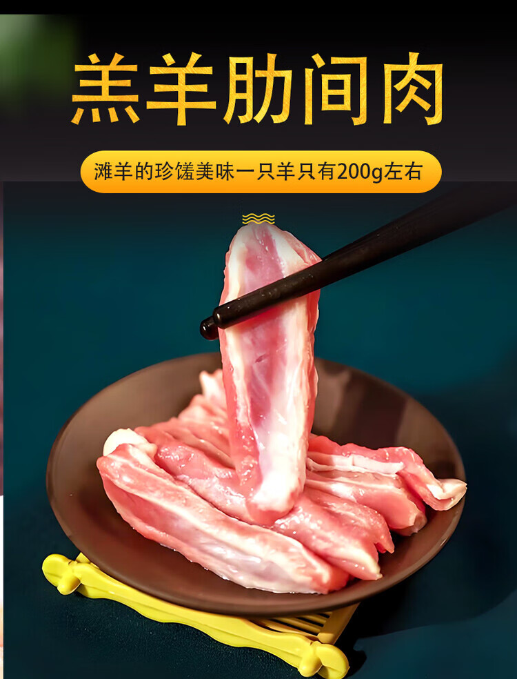 羊肉羔羊肋间肉新鲜羊排肉烧烤食材油炸大串手抓羊排顺丰包邮清真 2斤 6-8月龄羔羊肋间肉