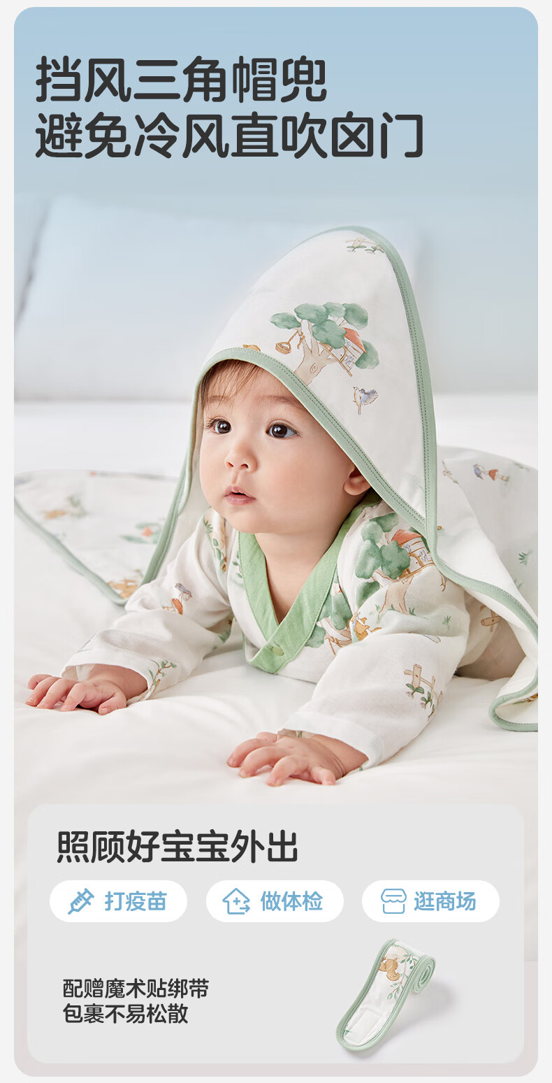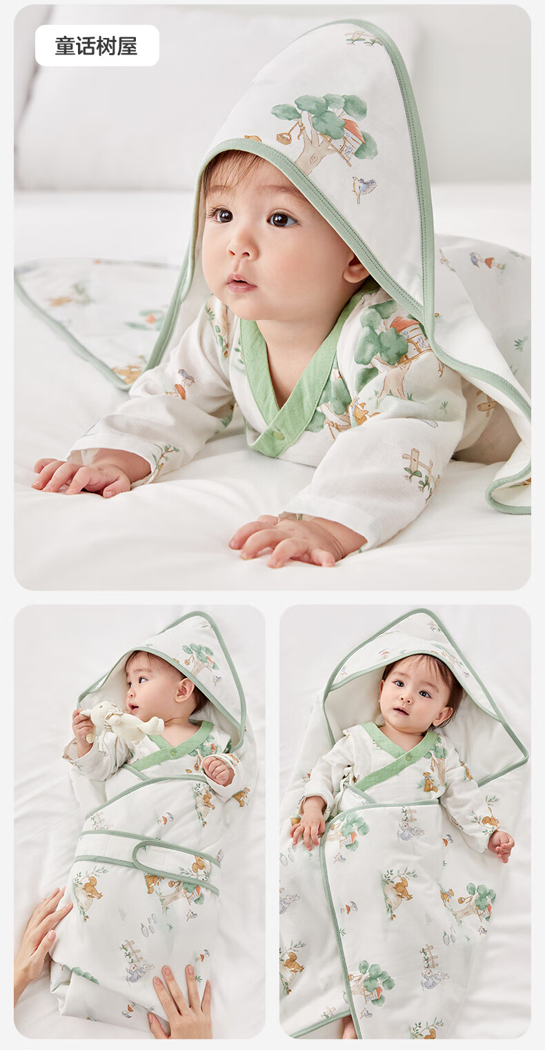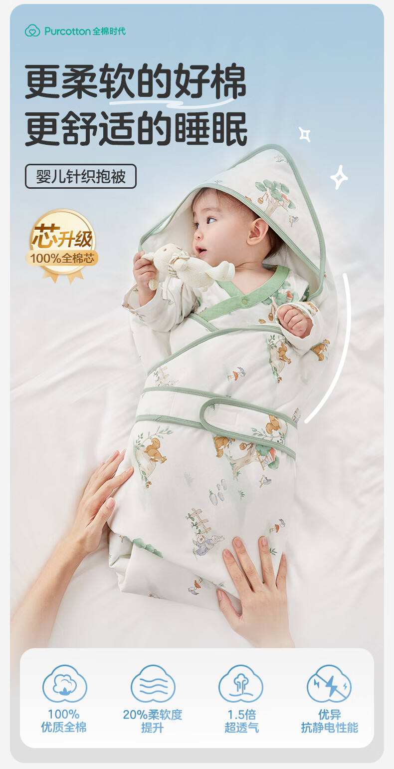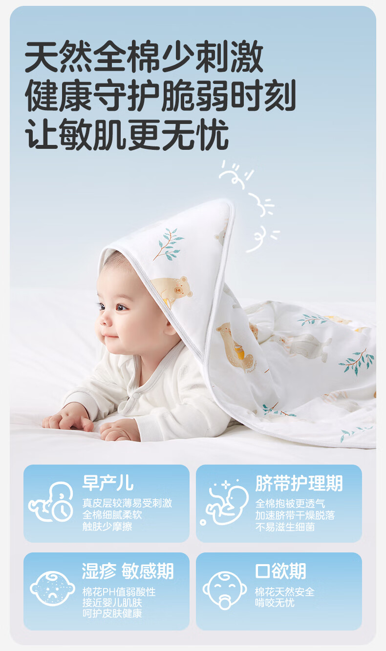 全棉时代婴儿抱被纯棉新生儿包被襁褓微厚包单四季通用 快乐小象90cm