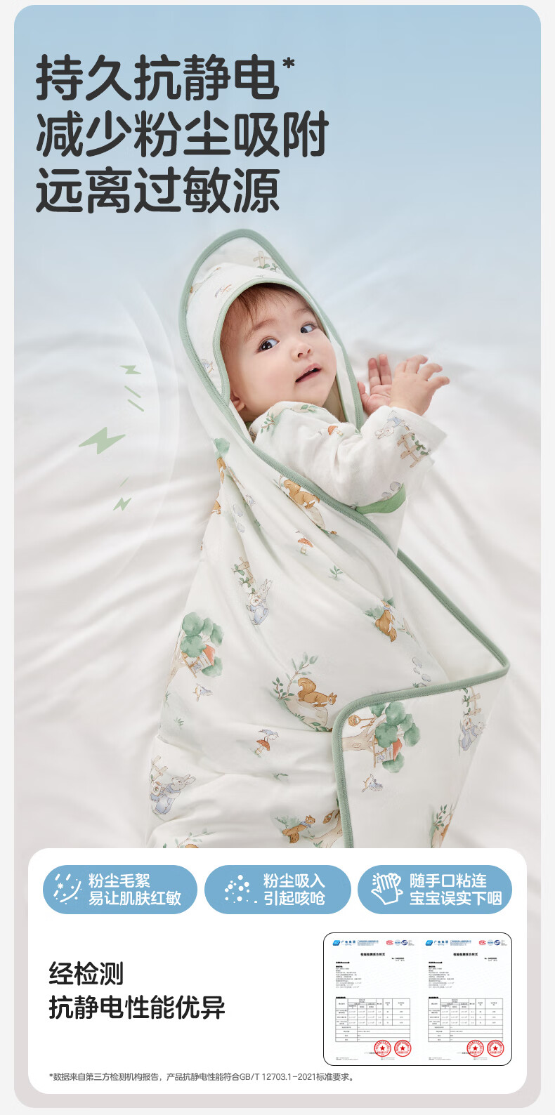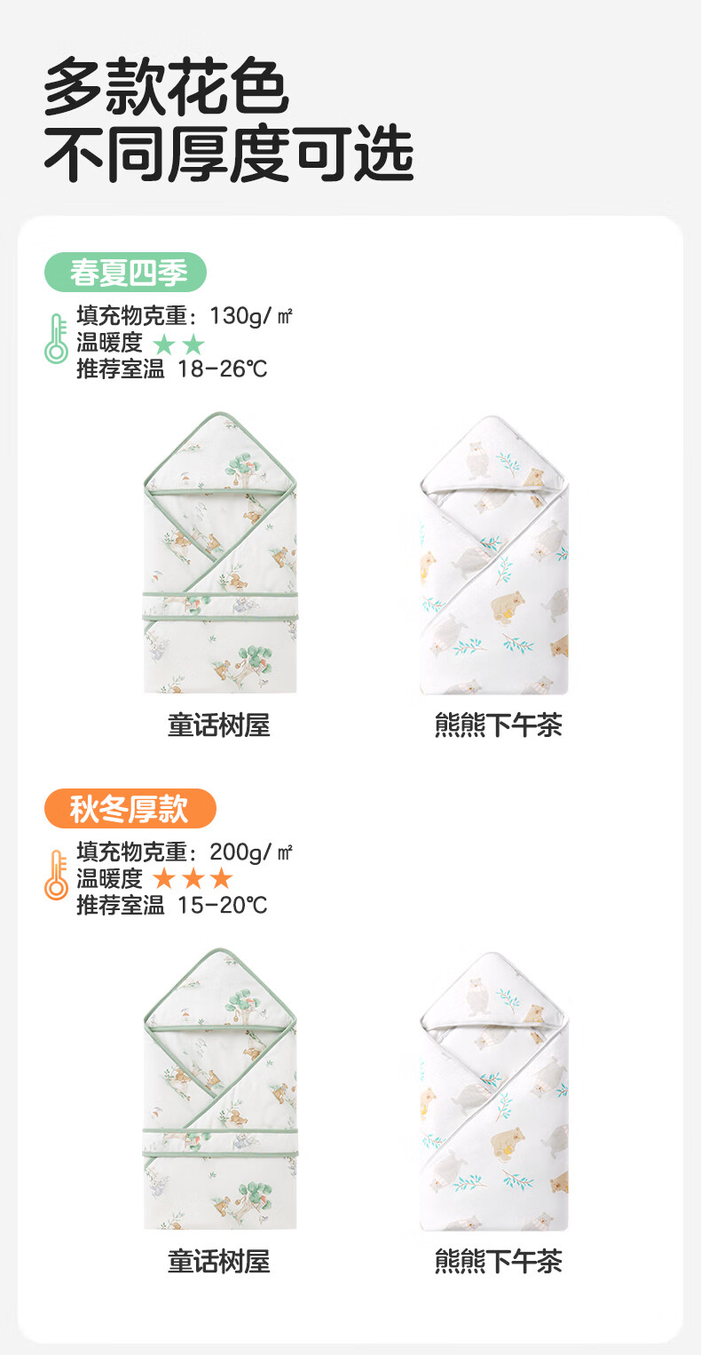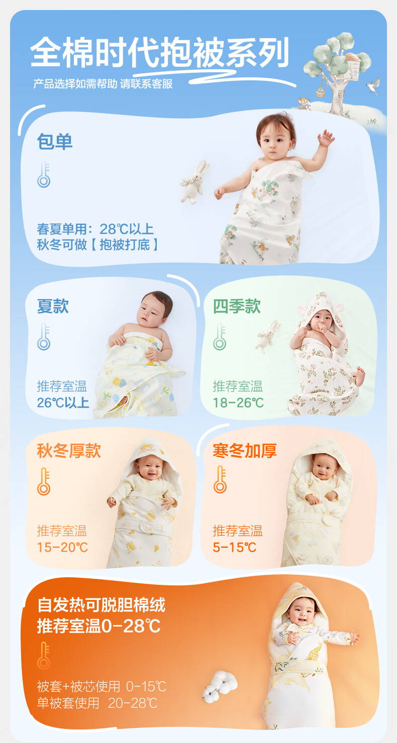 全棉时代婴儿抱被纯棉新生儿包被襁褓微厚包单四季通用 快乐小象90cm