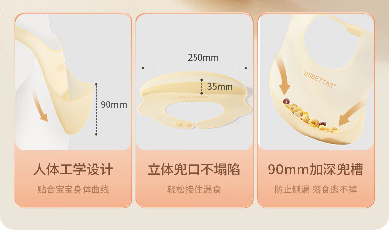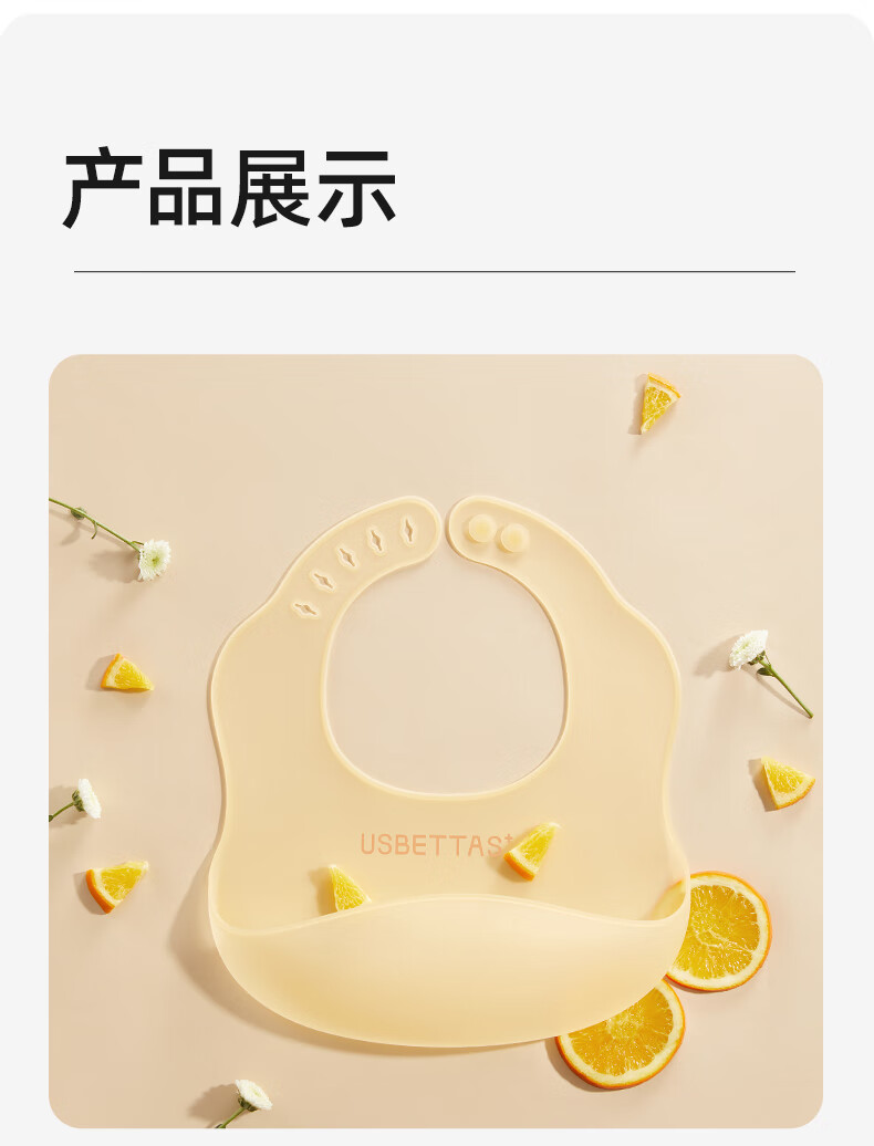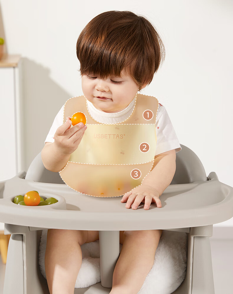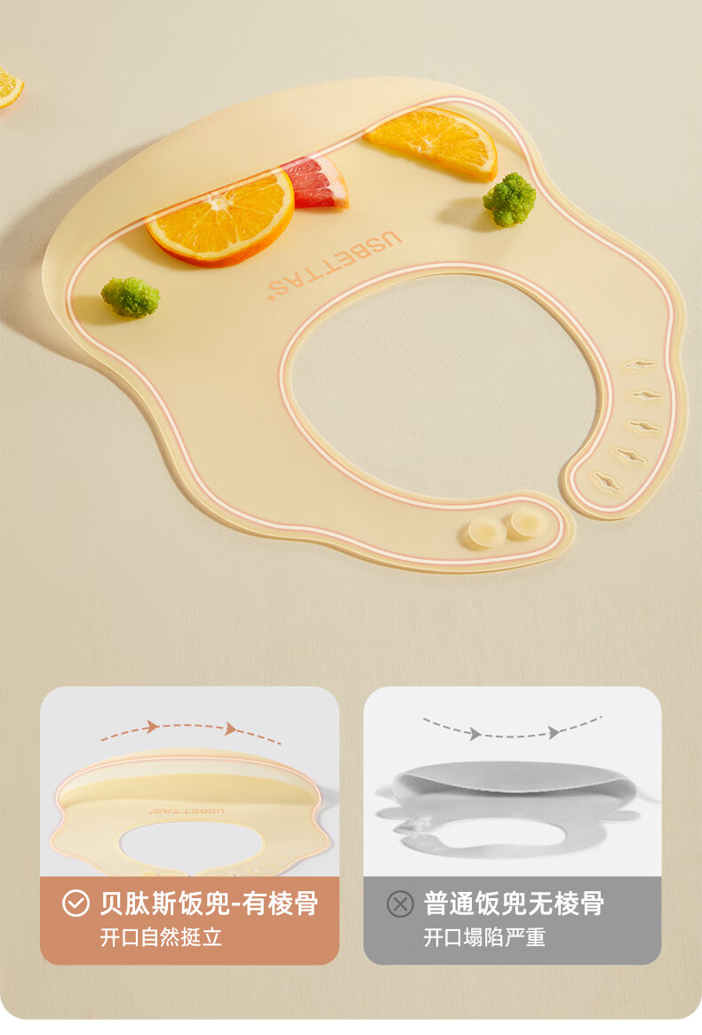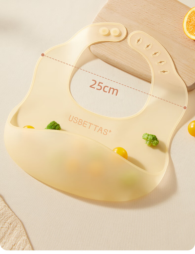 贝肽斯宝宝吃饭围兜春秋婴儿围嘴辅食饭兜超软硅胶儿童防水防油饭日光黄