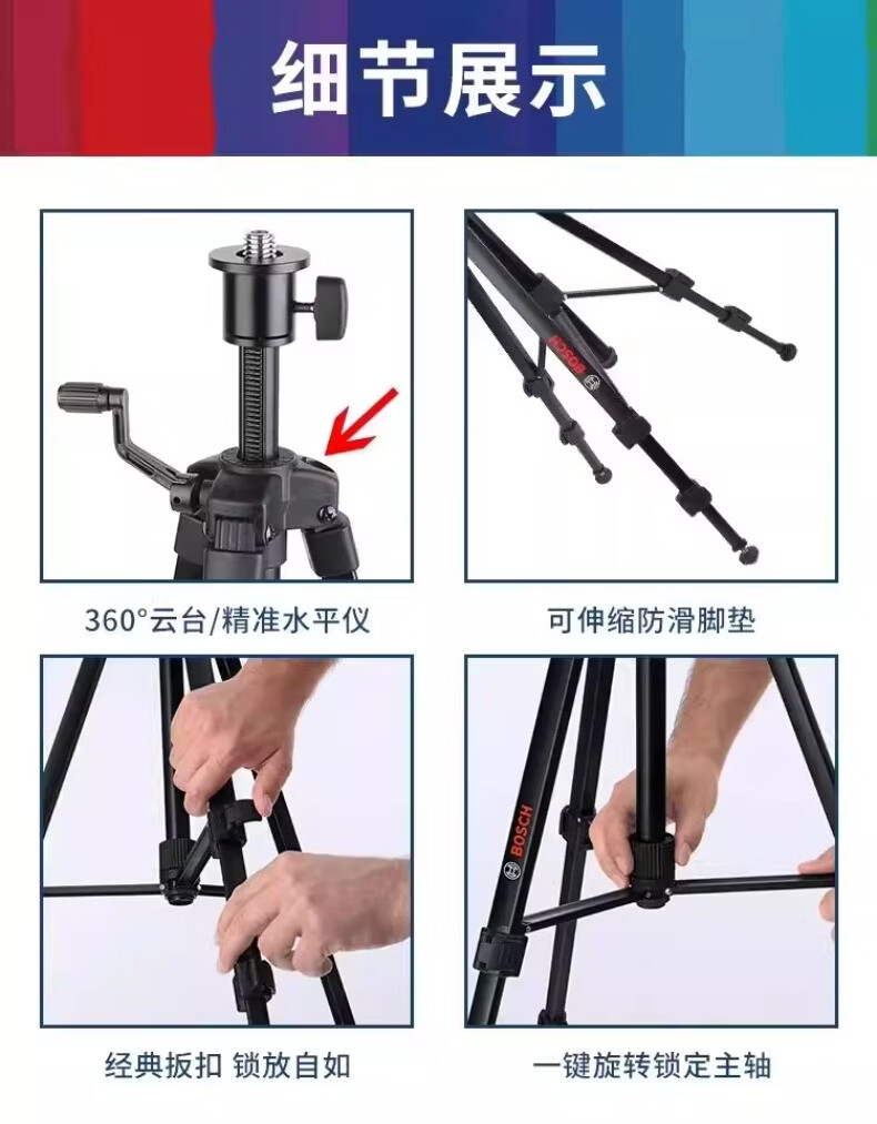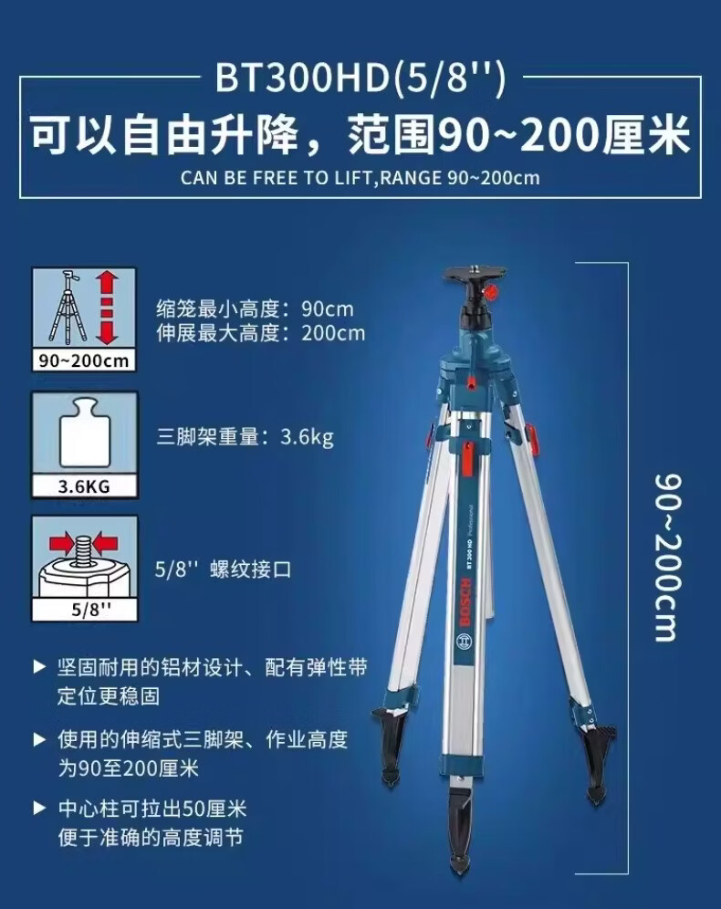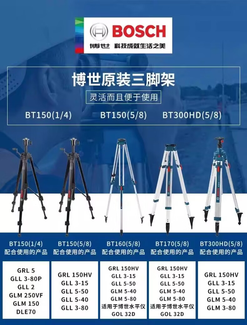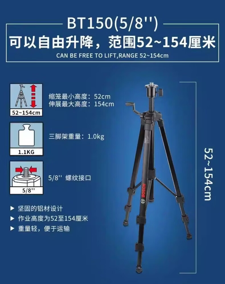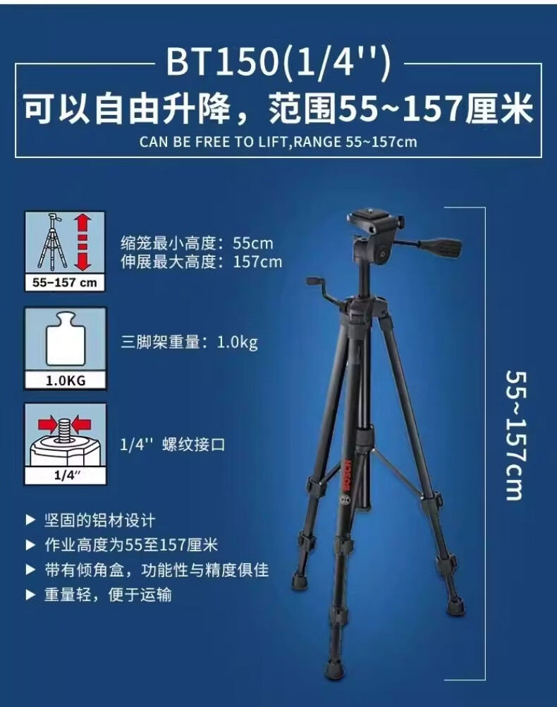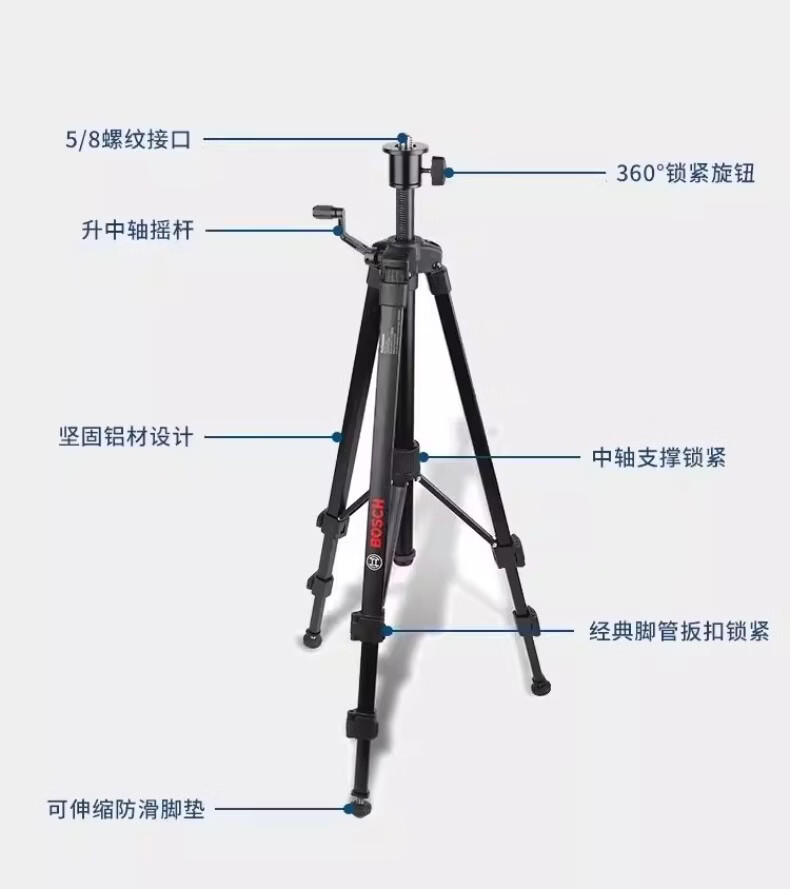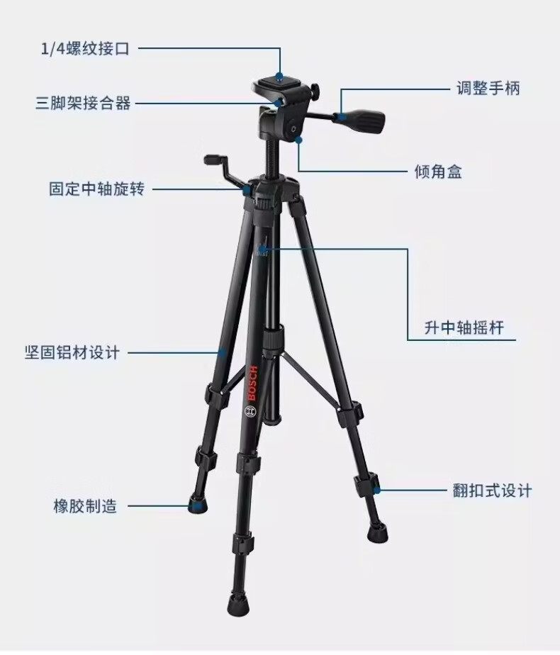 博世(BOSCH)红外线水平仪三脚架BT150/BT300HD/BT160/170水准仪三角架5/8 BT150【1/4接口】三脚架