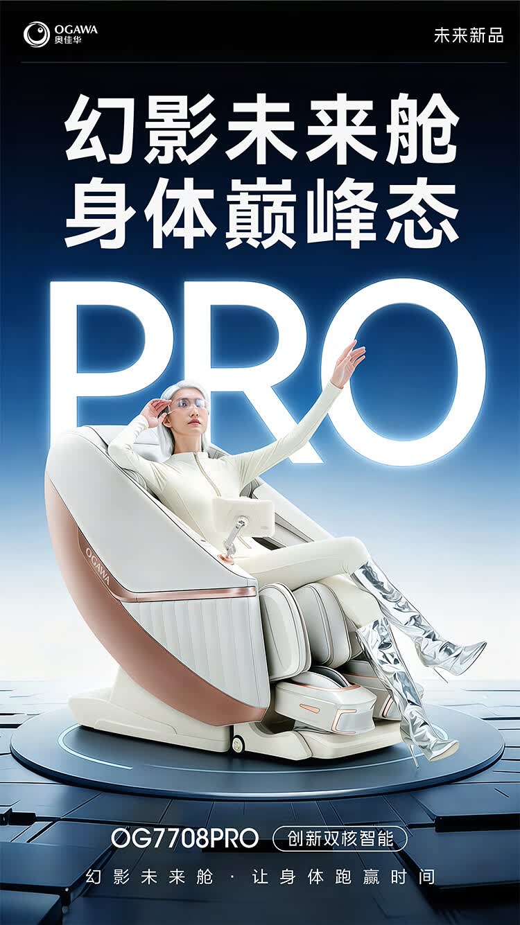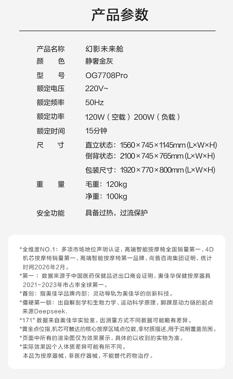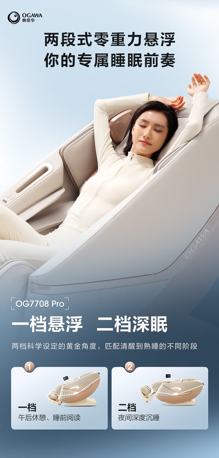 奥佳华【上市企业】按摩椅家用太空舱肩颈腰背全身电动摇摇椅送老人生日礼物7708Pro静奢金灰