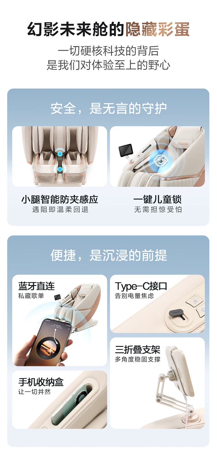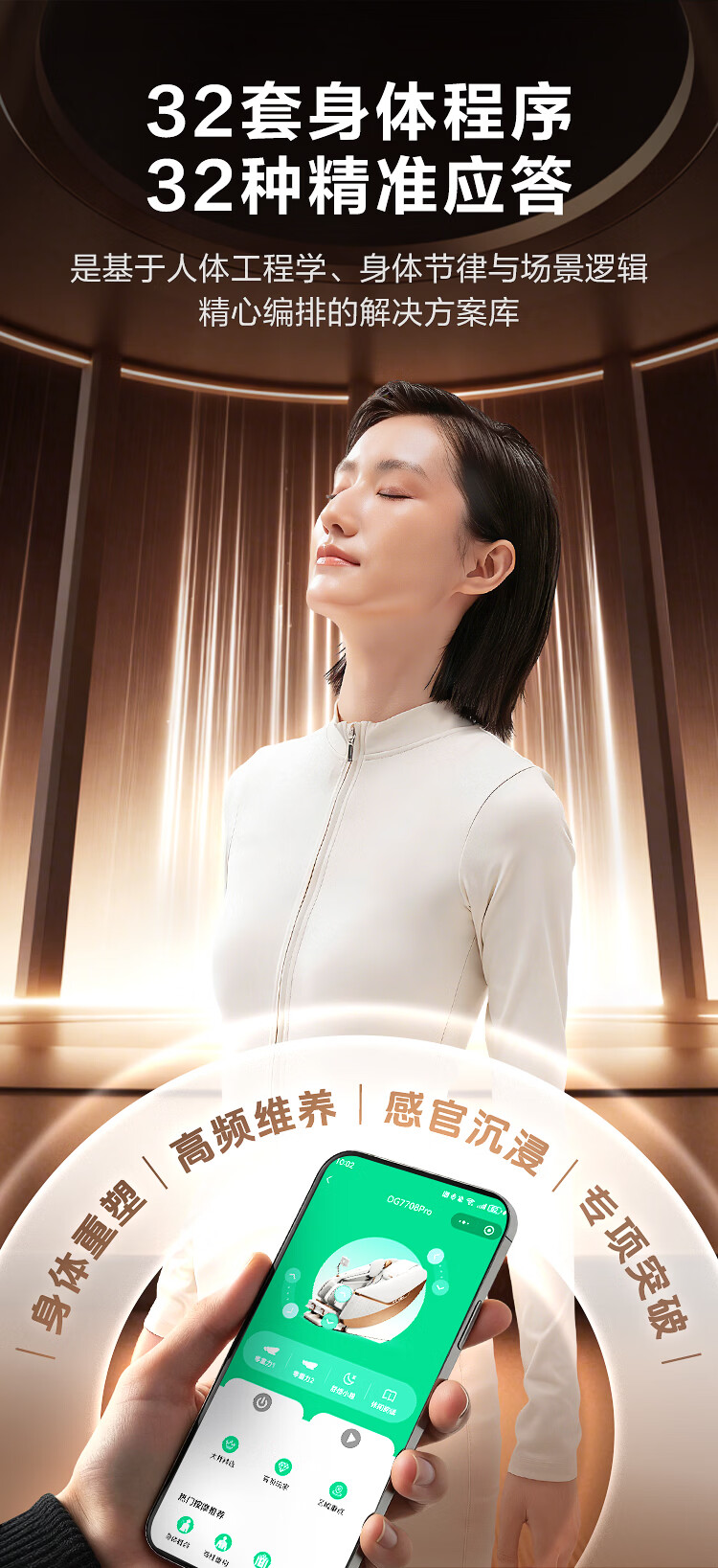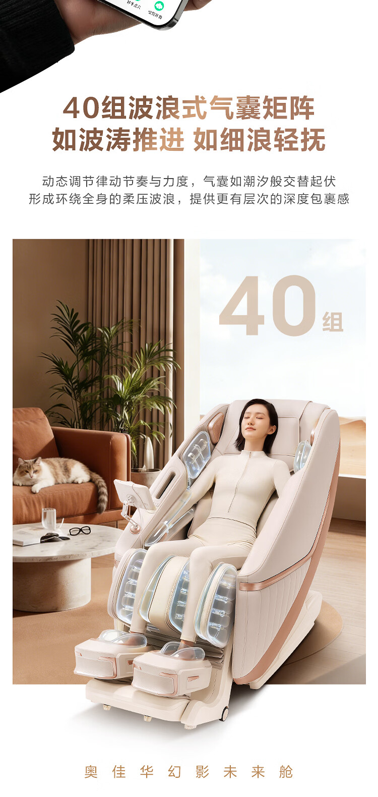 奥佳华【上市企业】按摩椅家用太空舱肩颈腰背全身电动摇摇椅送老人生日礼物7708Pro静奢金灰
