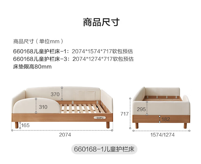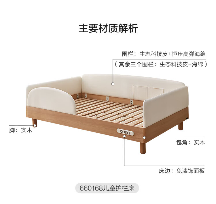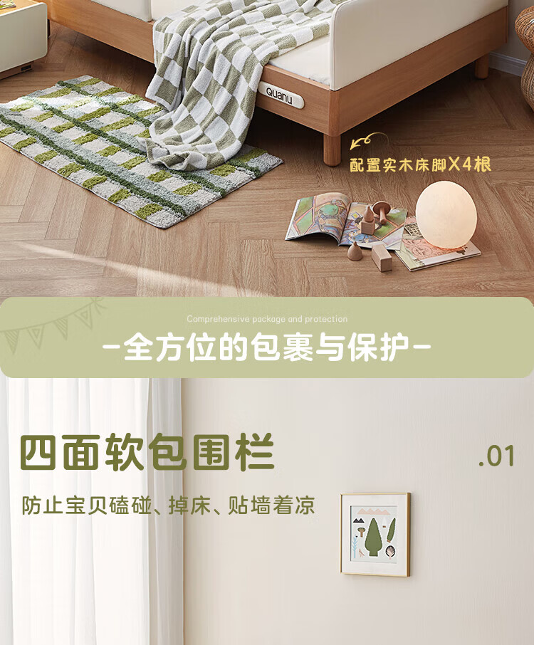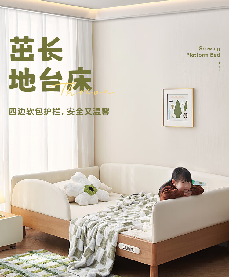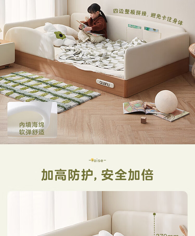 全友家居儿童房单人床带护栏1.5x2米地台床男孩女孩卧室家具学生小床 软包|单地台床 1.2米