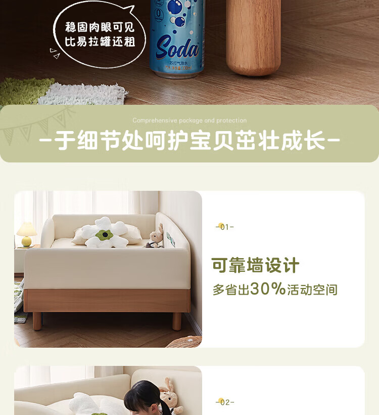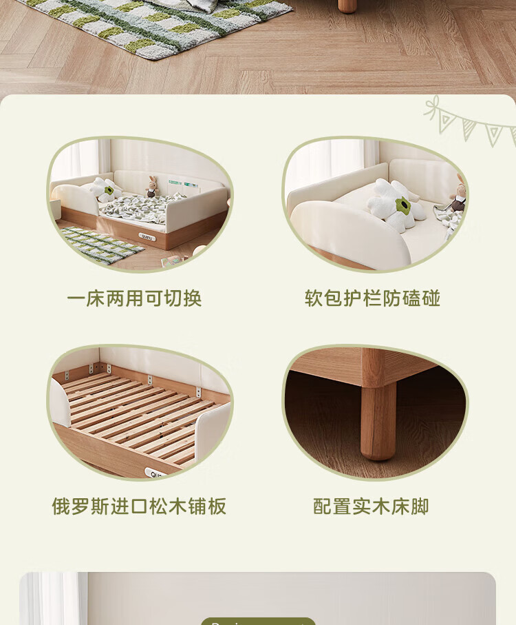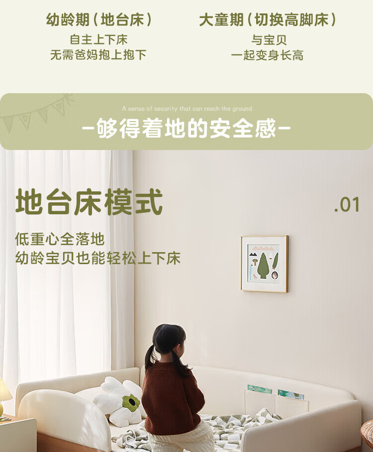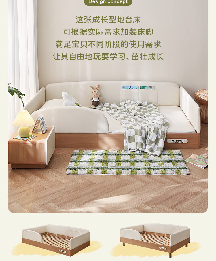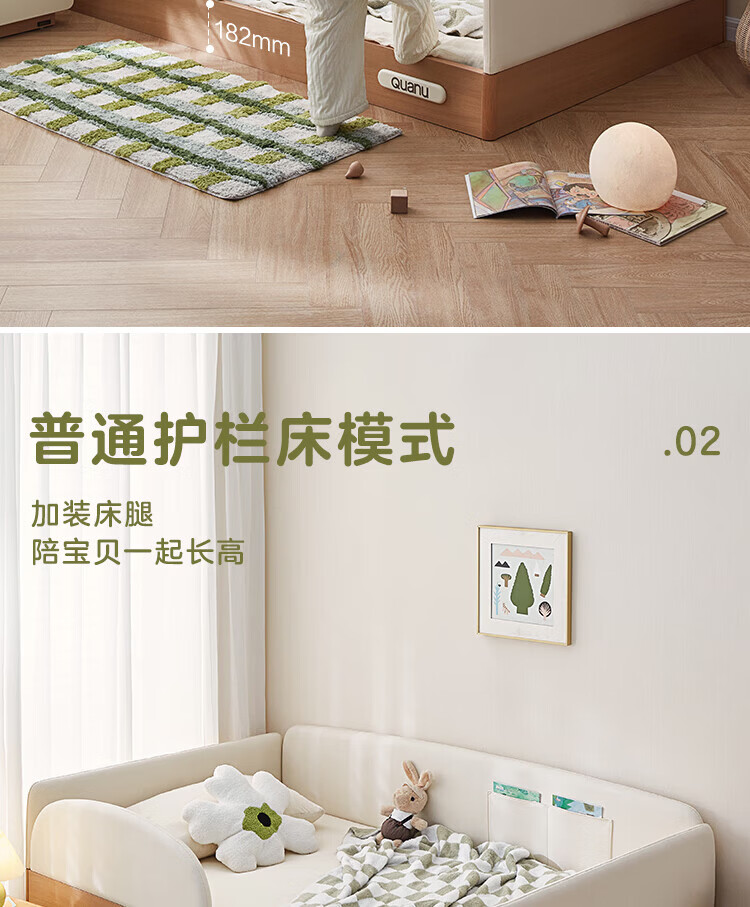 全友家居儿童房单人床带护栏1.5x2米地台床男孩女孩卧室家具学生小床 软包|单地台床 1.2米