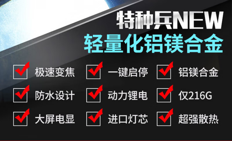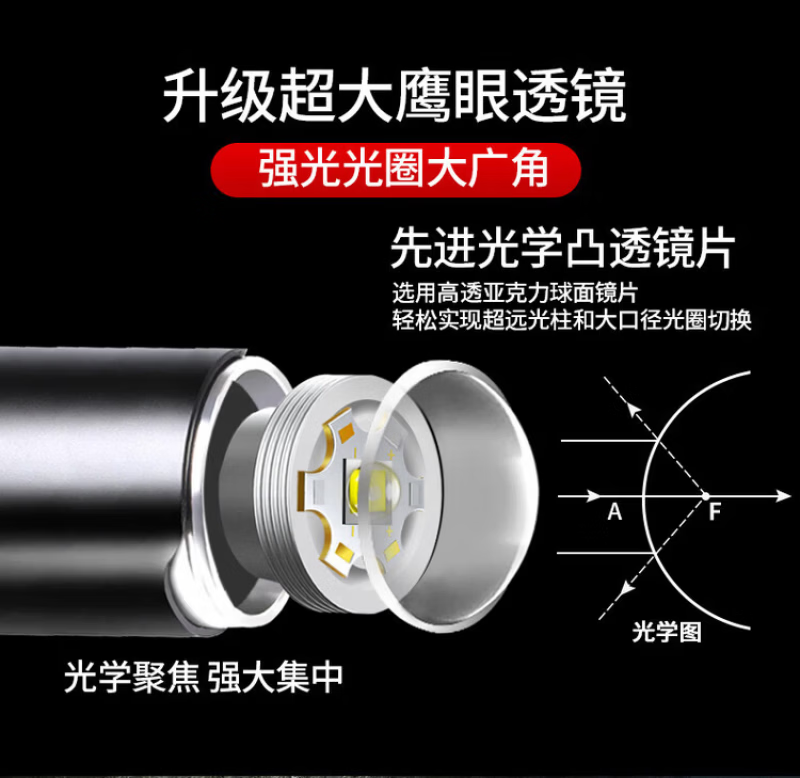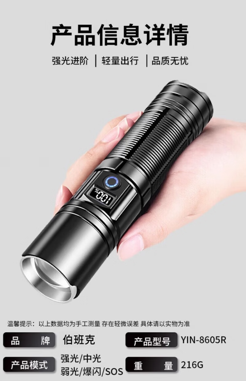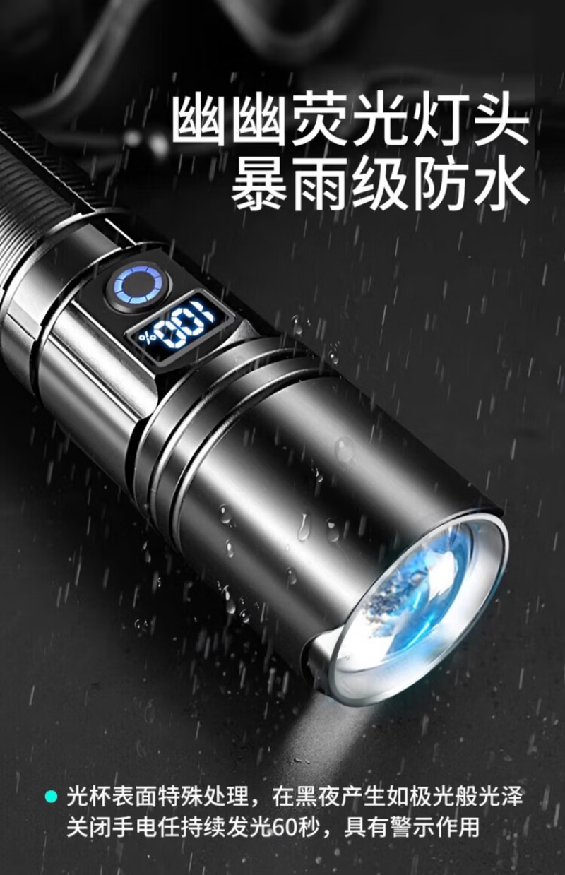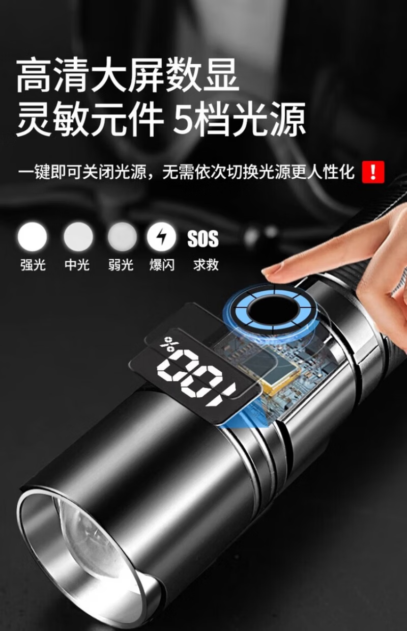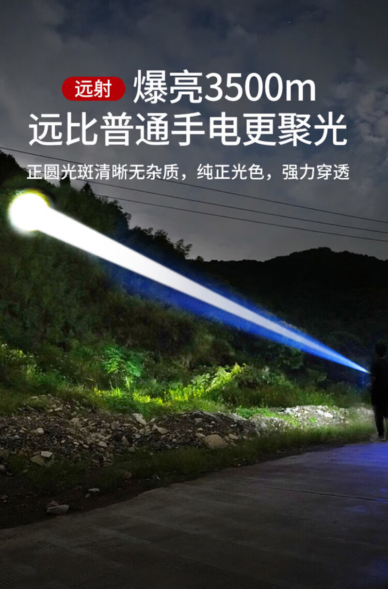 Lovefamily【德国】强光手电筒强光超长续航变焦远射小型便携充电军户外专用 数显款-【激光灯芯】-32700双锂电