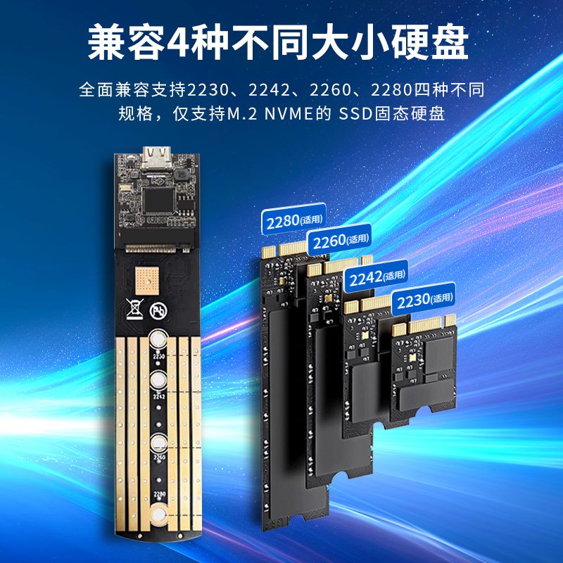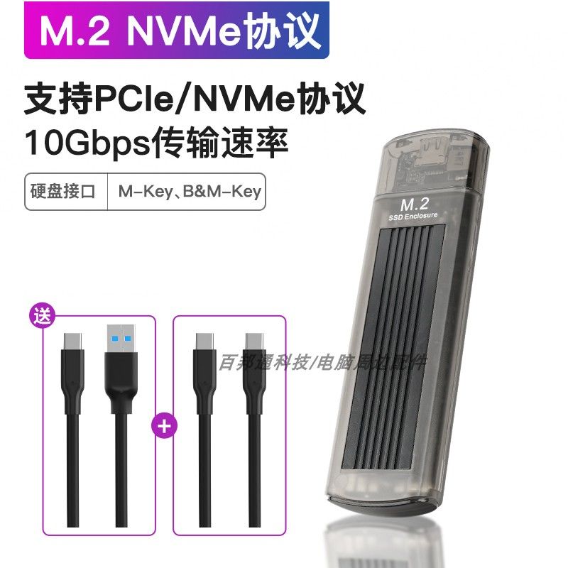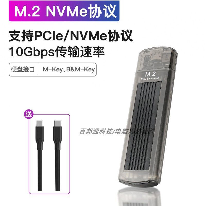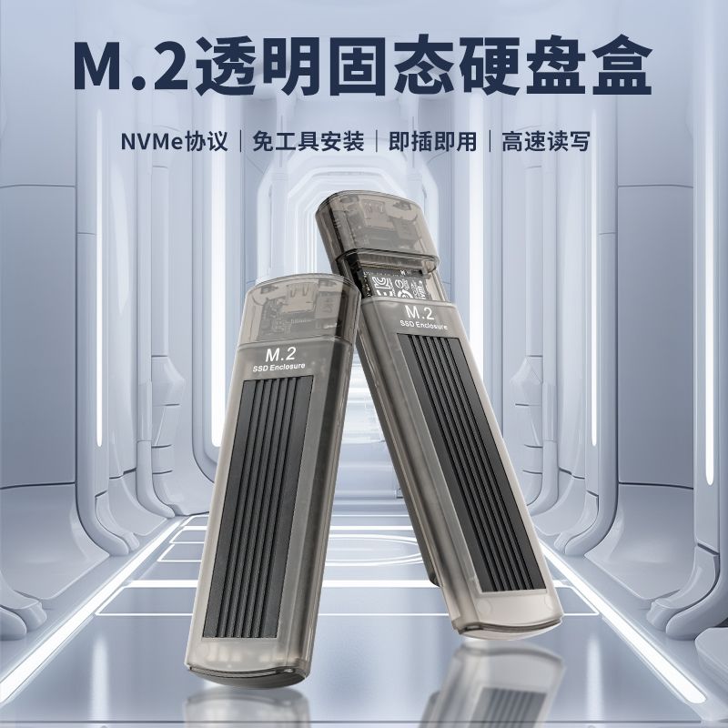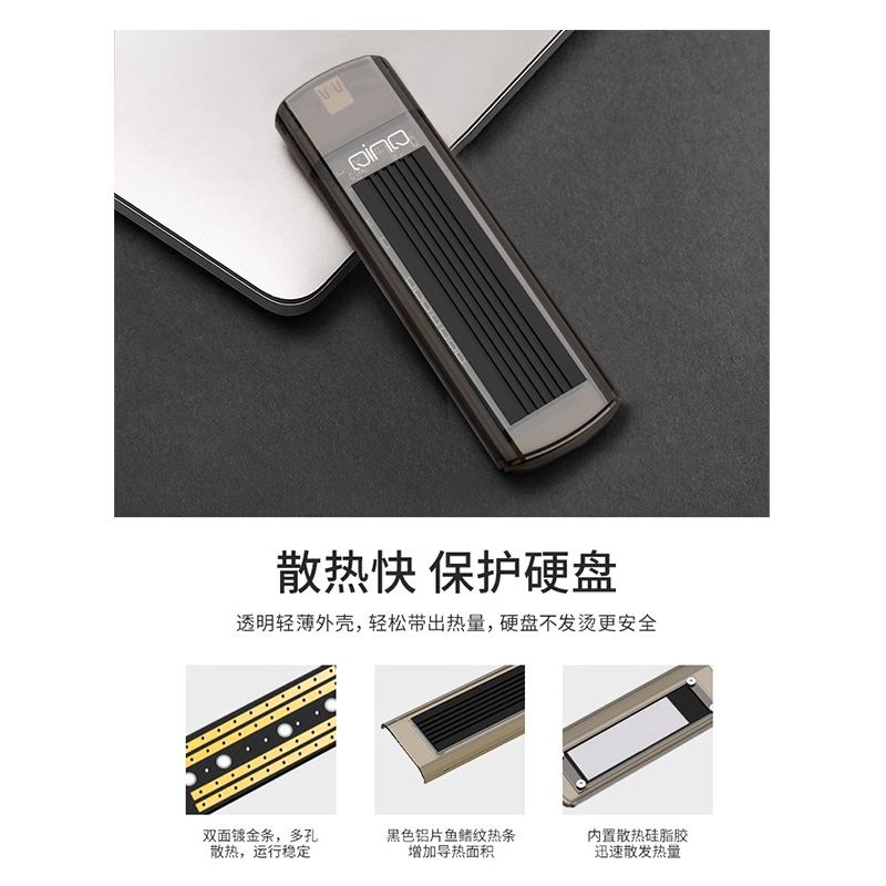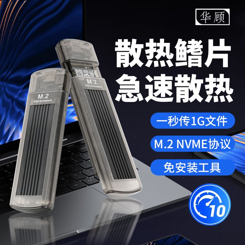 华顾透灰m.2固态硬盘盒子nvme协议转typec移动笔记本外接带散热片