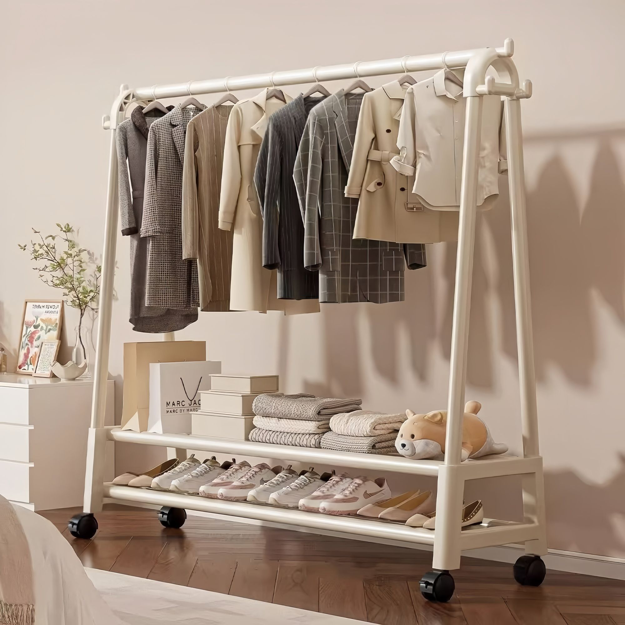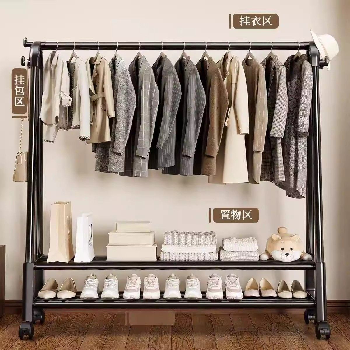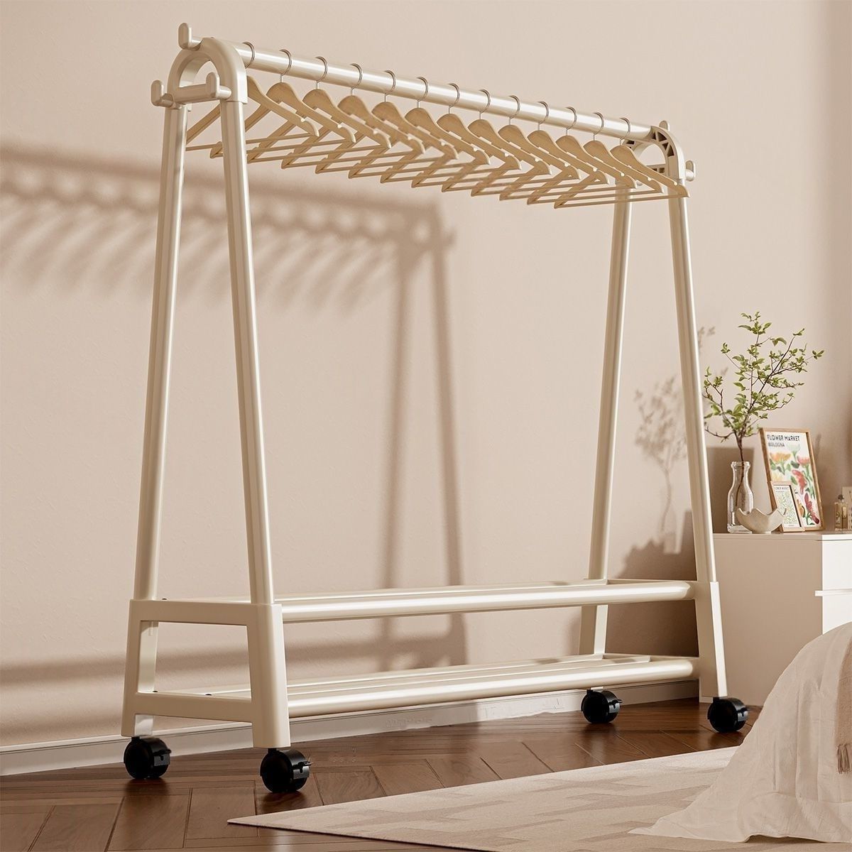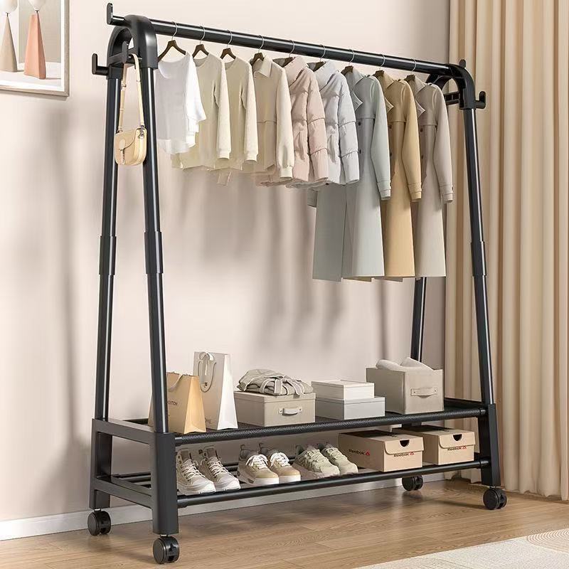 落地衣架立式双杆可移动加粗加厚衣帽架衣柜移动宿舍家用卧室阳台