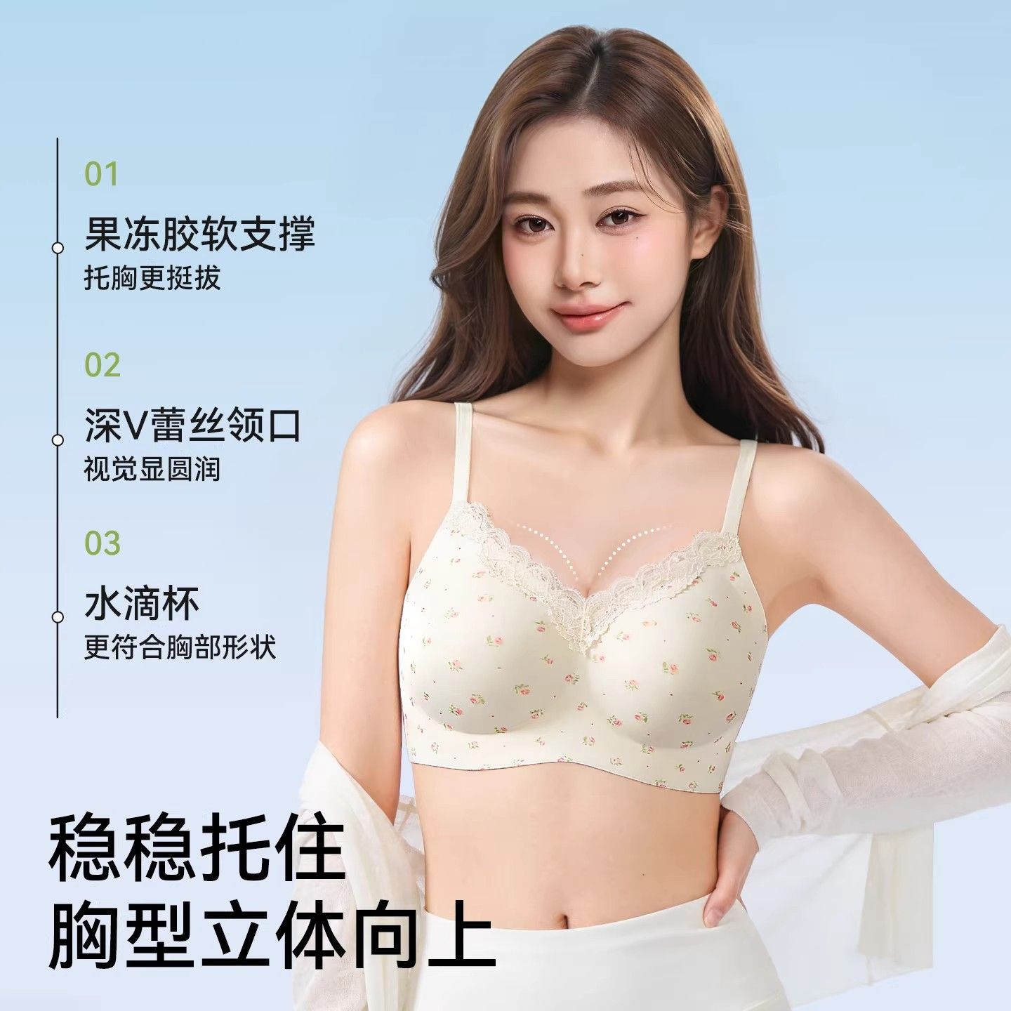 【都市丽人】蕾丝女士碎花小胸内衣法式清新甜美纯欲性感聚拢文胸【4天内发货】
