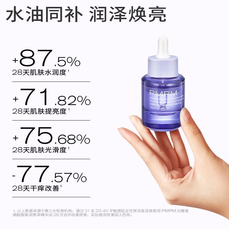 PMPM白睡莲精华油水润嘭弹舒缓保湿以油养肤换季护肤精华正品