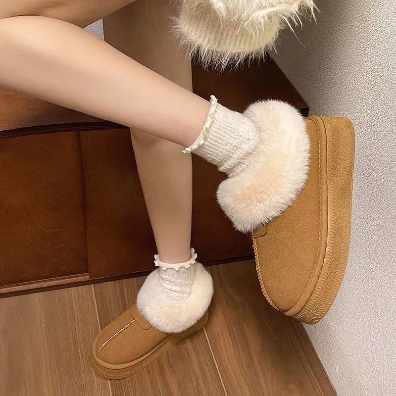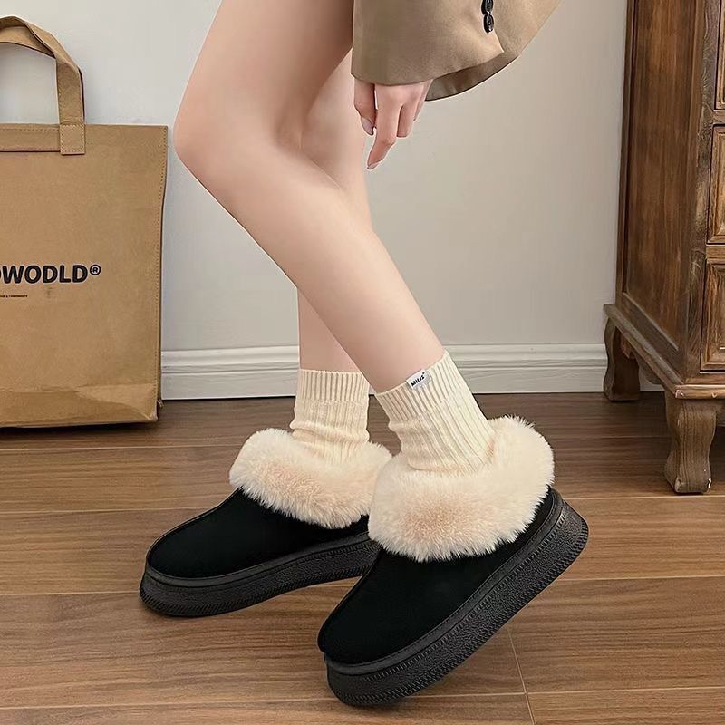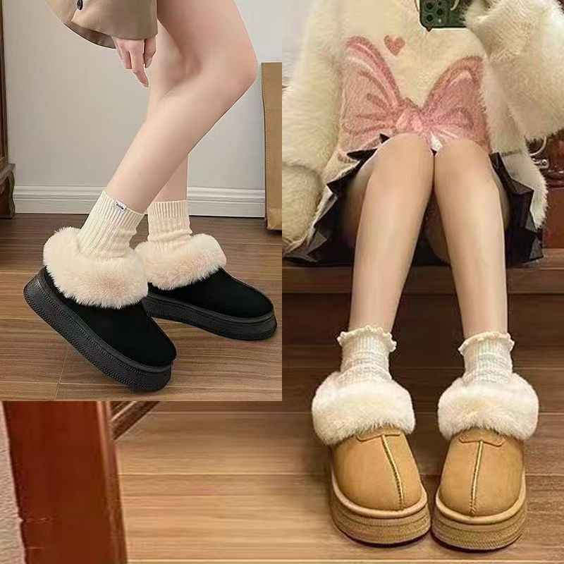2026冬季厚底新款皮毛加绒加厚保暖雪地靴女全包跟棉拖鞋【5天内发货】