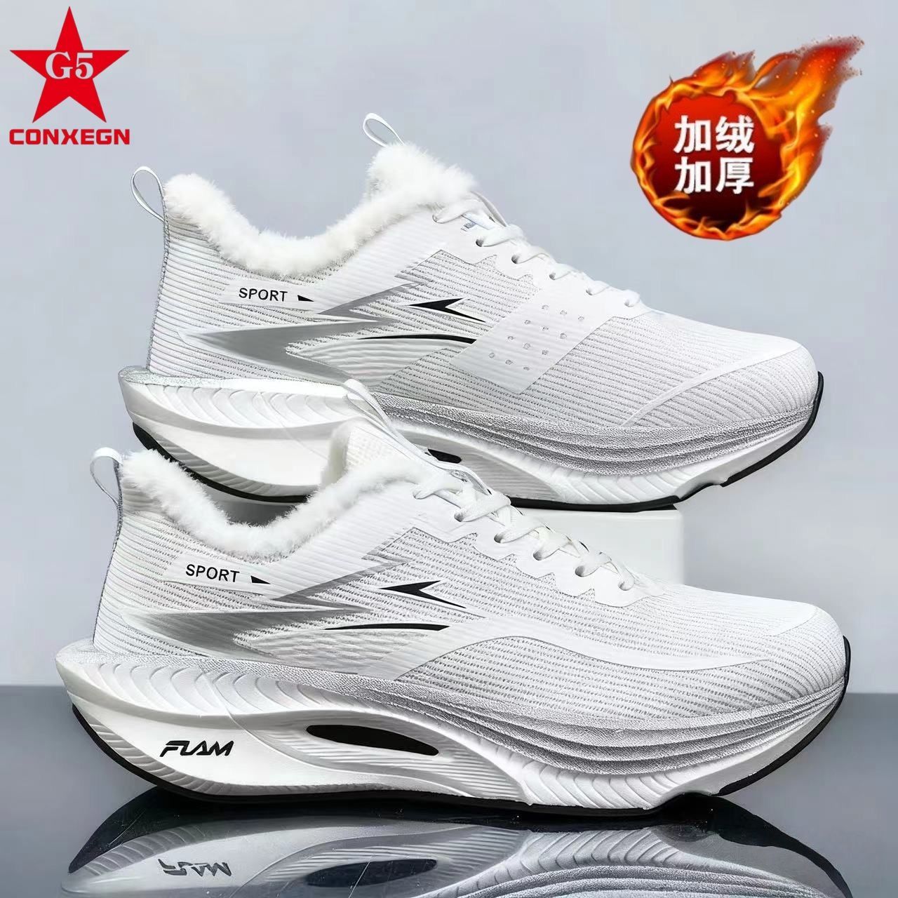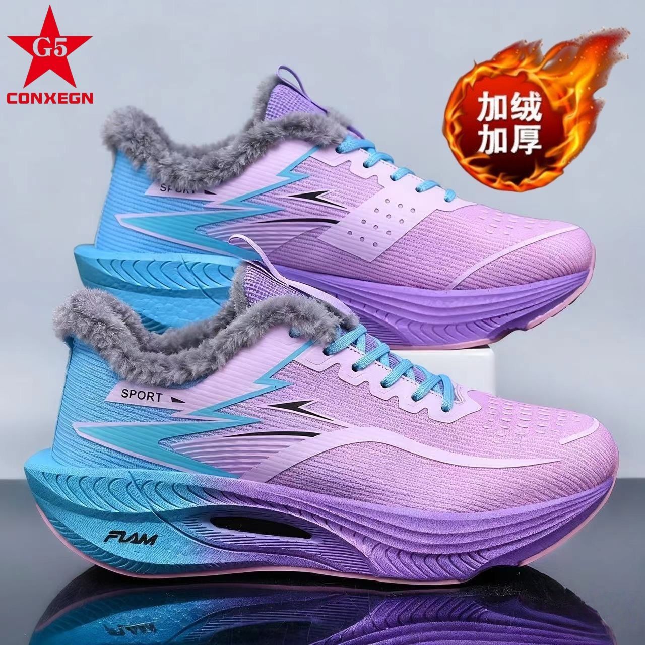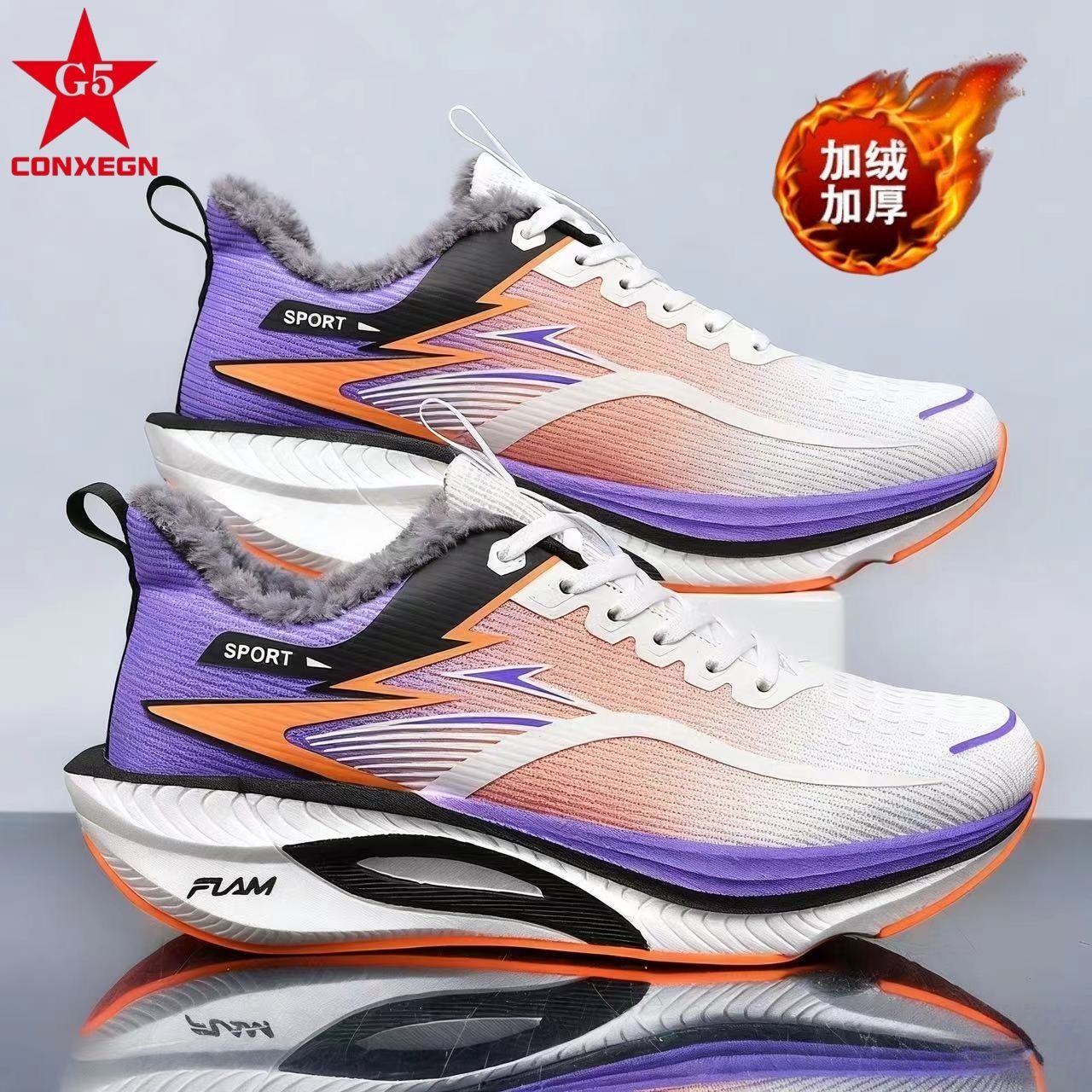 G5冬季加绒碳板跑步鞋青少年马拉松竞速跑鞋男女学生减震运动鞋潮