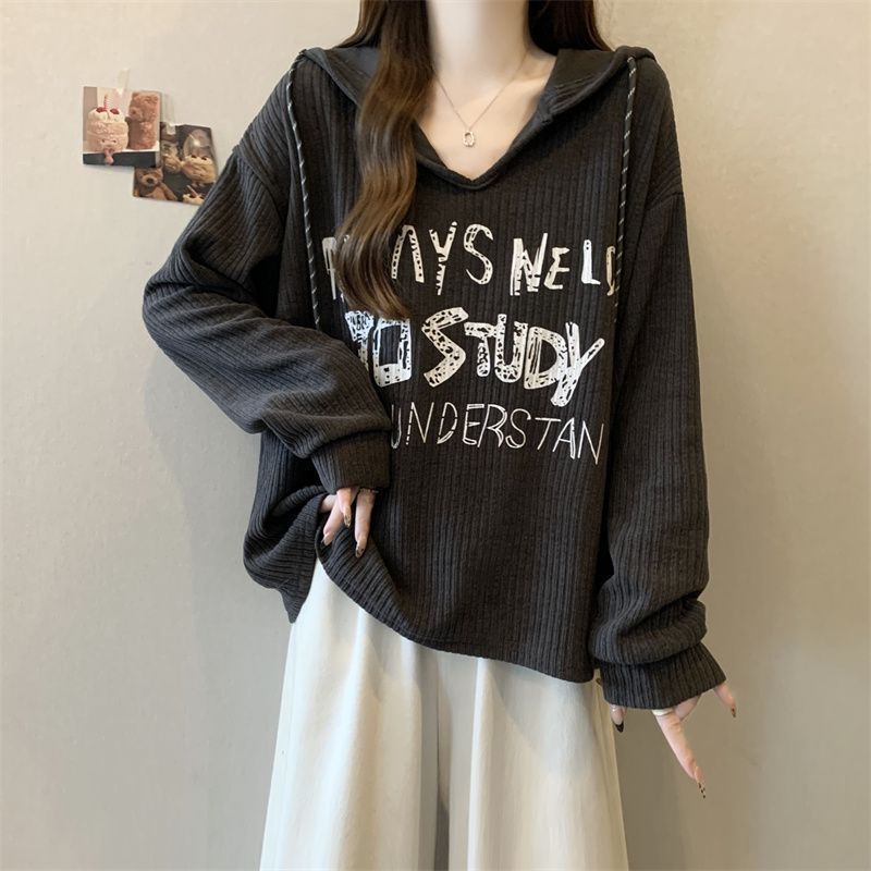 大码胖mm连帽长袖T恤女装春秋冬新款独特别致设计感显瘦外穿上衣