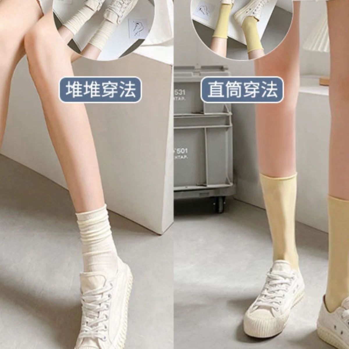 【10双装】冰冰袜子天鹅绒袜子女中筒薄款春夏堆堆袜纯色女冰丝袜【3天内发货】