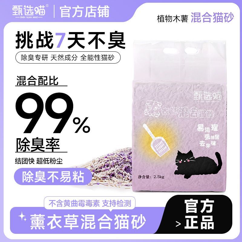 甄选喵3合1薰衣草混合猫砂豆腐木薯植物除臭低尘秒速结团可冲马桶