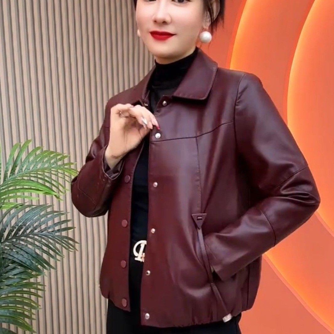 原版带绳短款女士皮衣外套2026春秋新款百搭宽松休闲洋气皮夹克