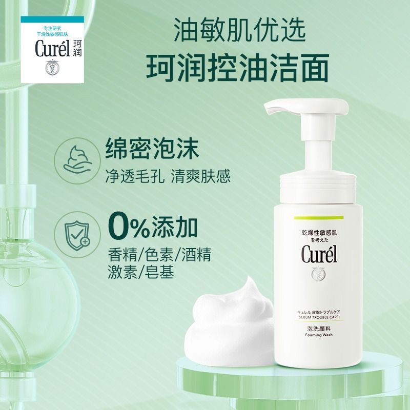 Curel珂润润浸保湿洁颜泡沫控油150ml绵密泡沫温和学生党用洗面奶