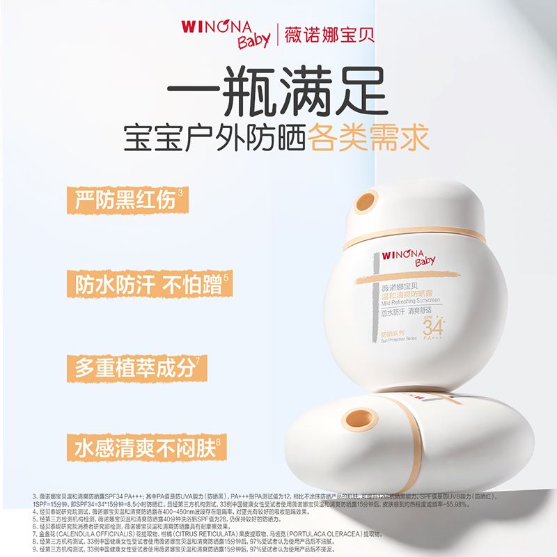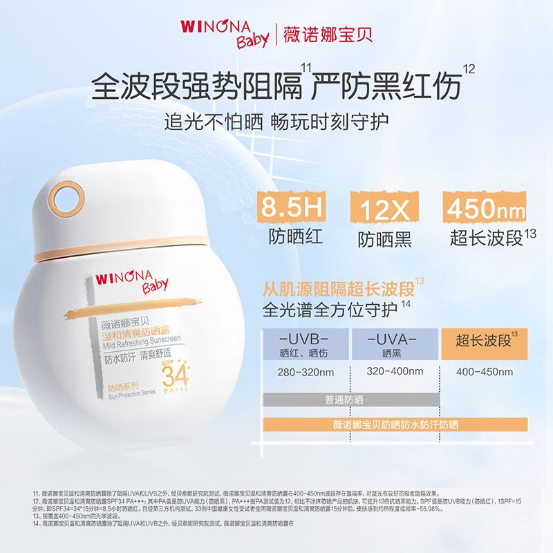 抢!薇诺娜宝贝防晒露15ml*2支防水防汗户外不假白SPF34清爽不闷肤