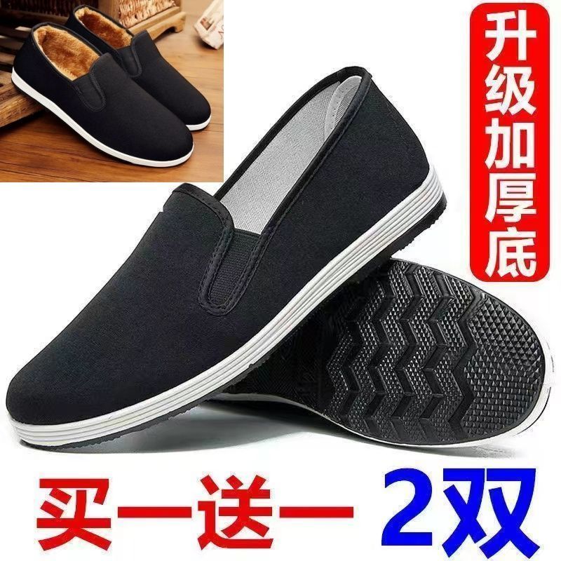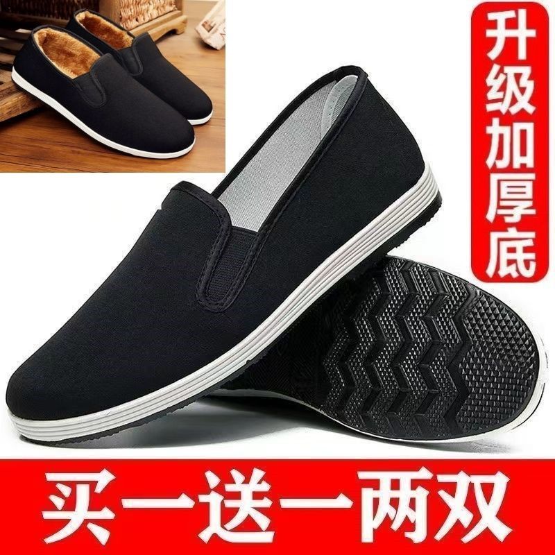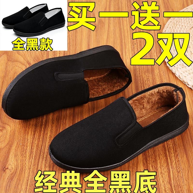 (清仓)老北京布鞋男款冬季黑单加绒棉鞋防滑透气耐磨工作劳保板鞋