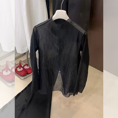 杭州四季青高端爆款~圆领设计感黑色气质防晒衣夏洋气长袖衬衫春