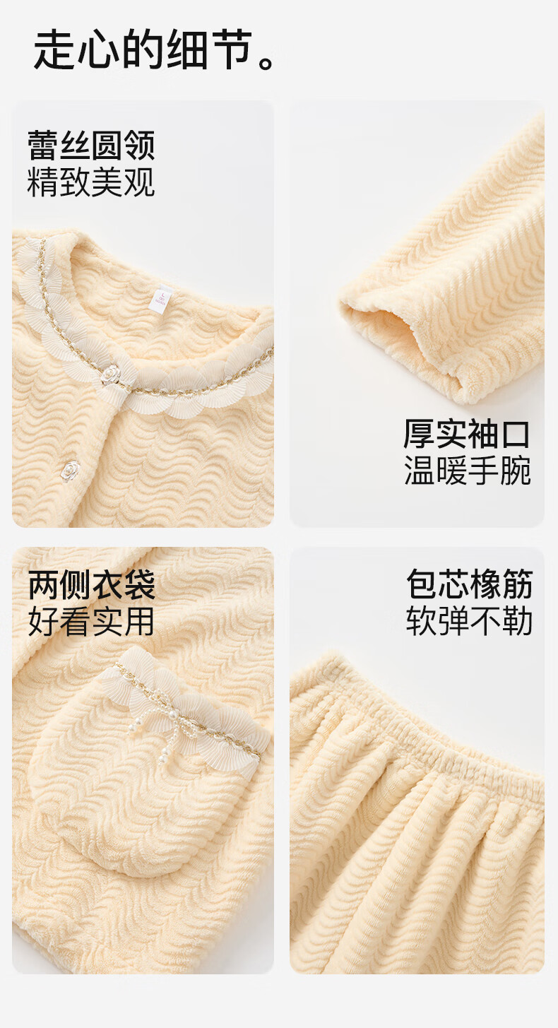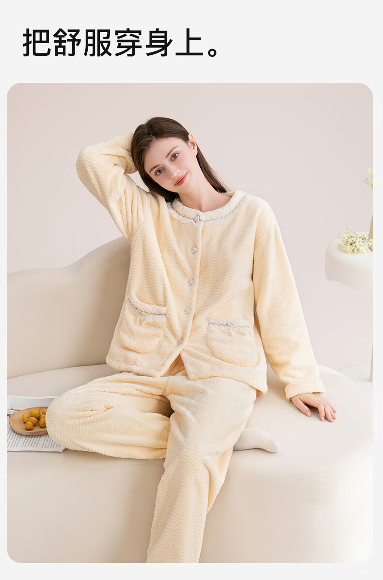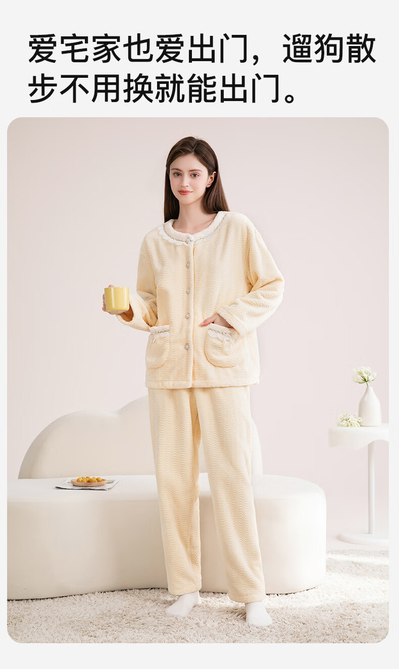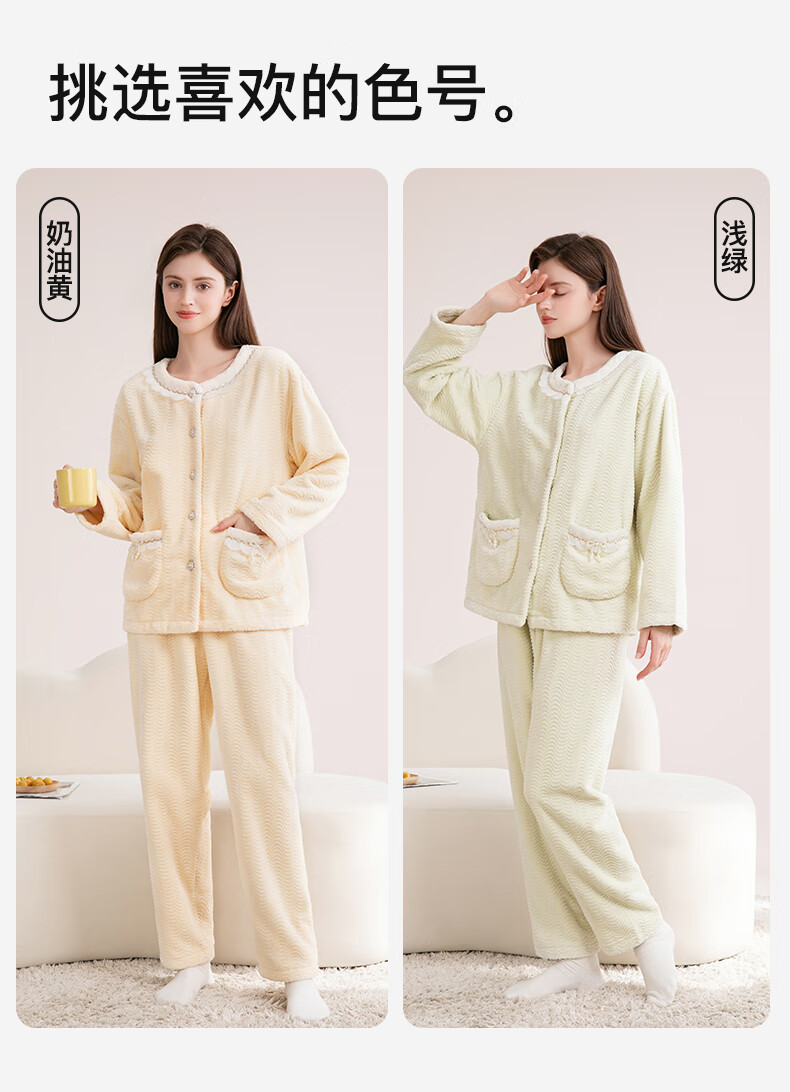 芬腾睡衣女2025秋冬新款双面暖绒韩系风开衫长袖ins家居服套装保暖 浅绿 L