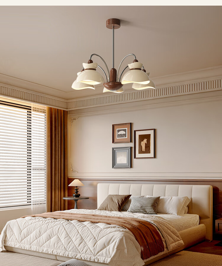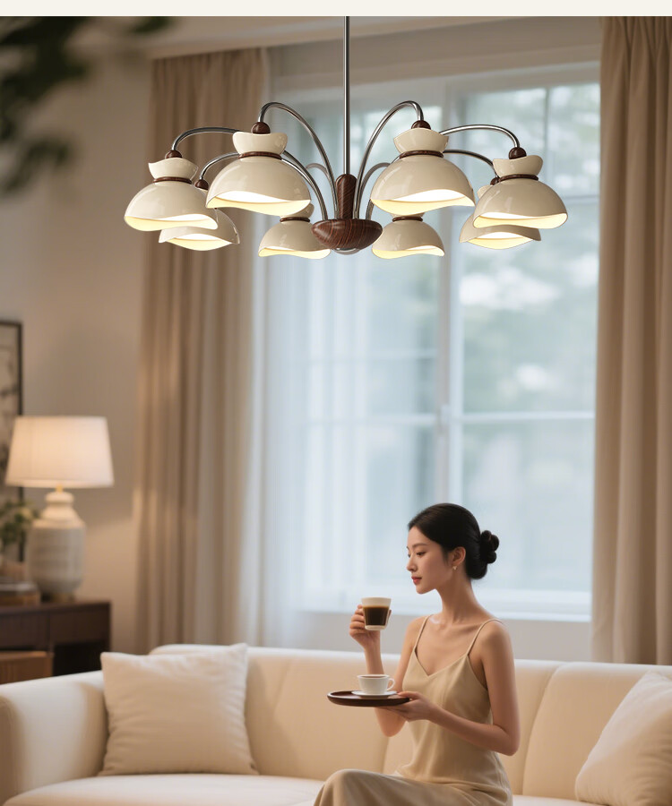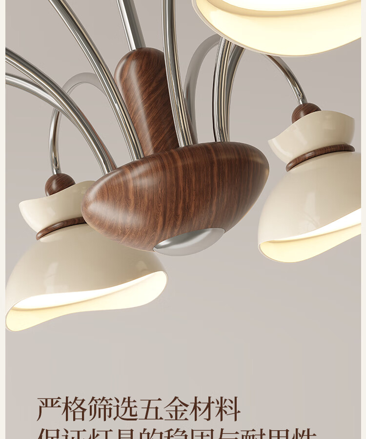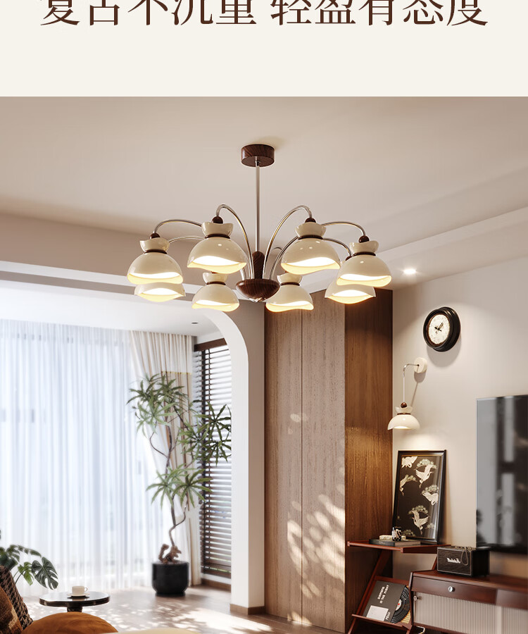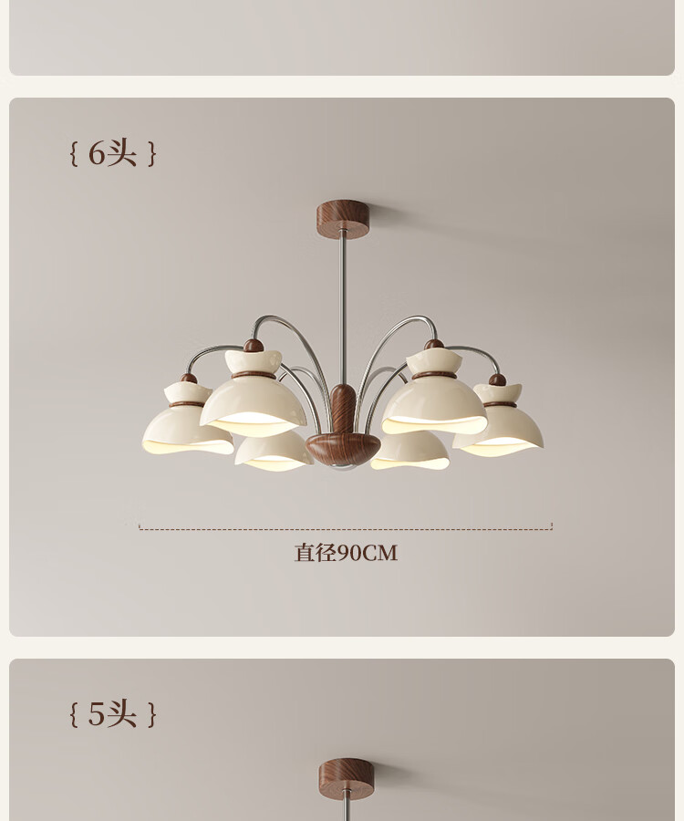 大自然照明中古风客厅吊灯2025新款创意花束法式奶油风大气大厅主灯中山灯具 【全光谱护眼光源】奶白色 5头75CM 三色变光