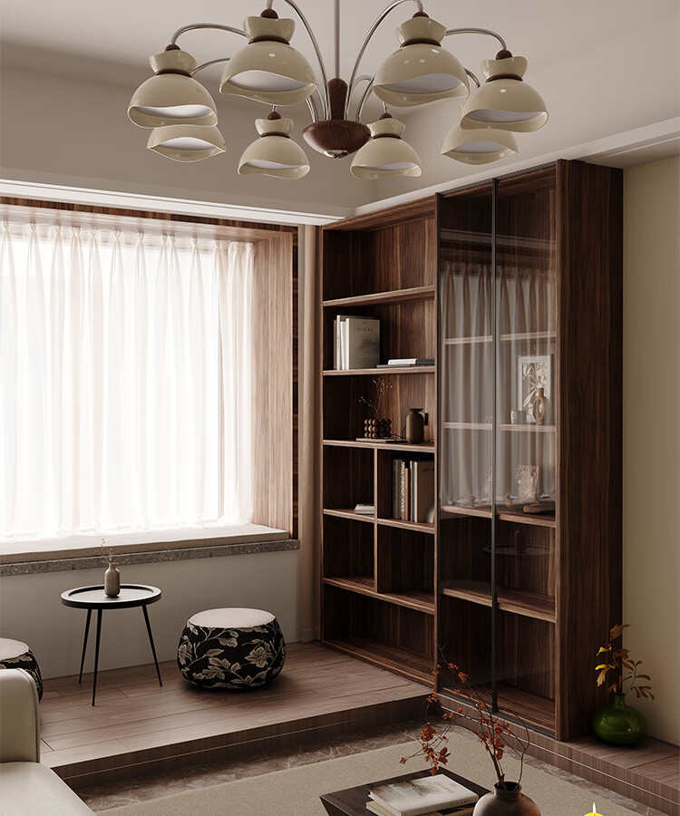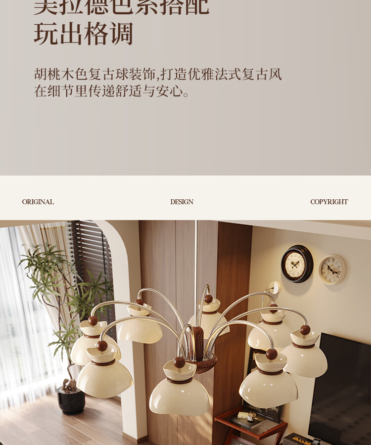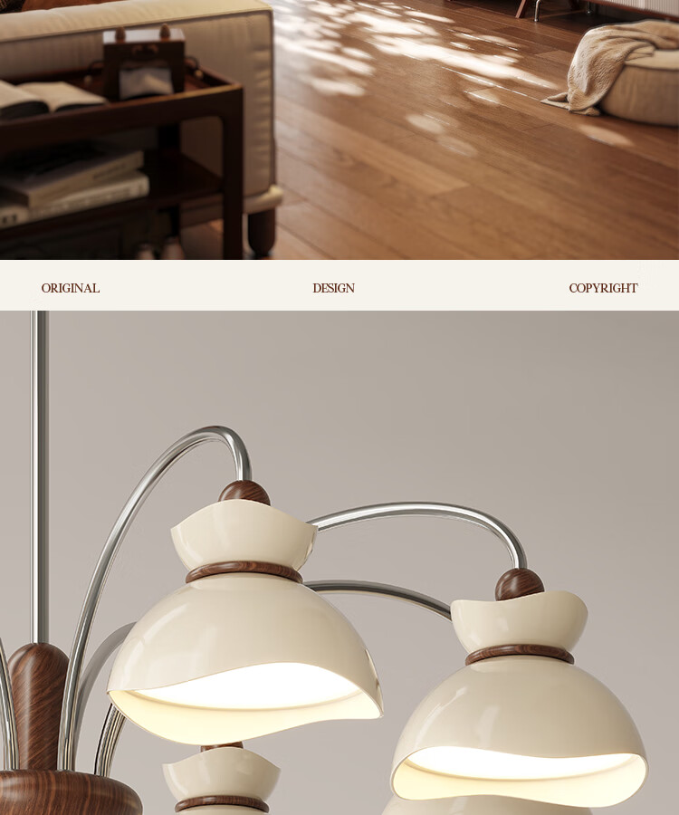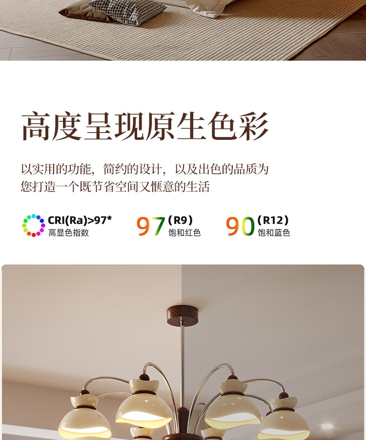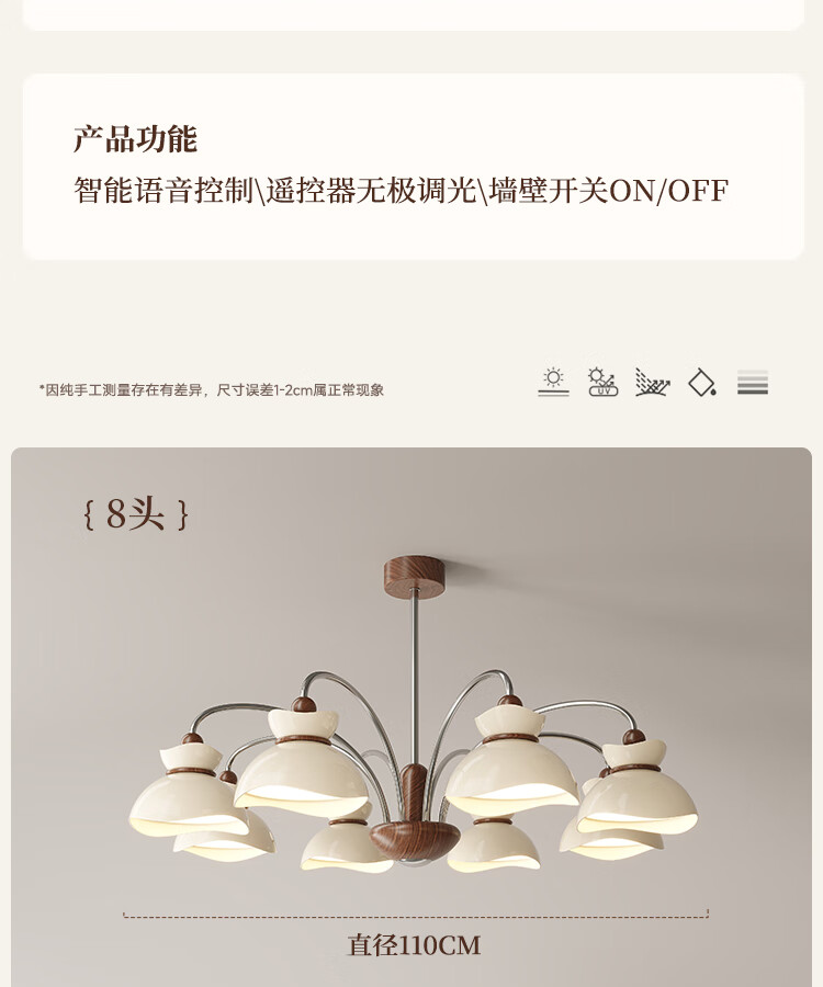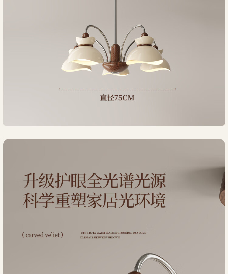 大自然照明中古风客厅吊灯2025新款创意花束法式奶油风大气大厅主灯中山灯具 【全光谱护眼光源】奶白色 5头75CM 三色变光