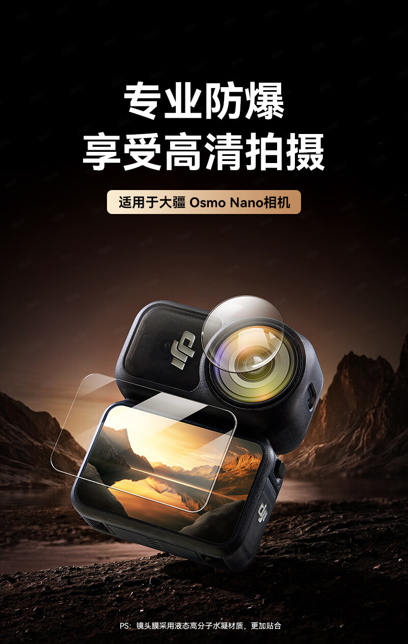 绿巨能(llano)适用大疆Osmo Nano钢化膜屏幕贴膜镜头膜1套装运动相机钢化膜防刮耐磨高清配件