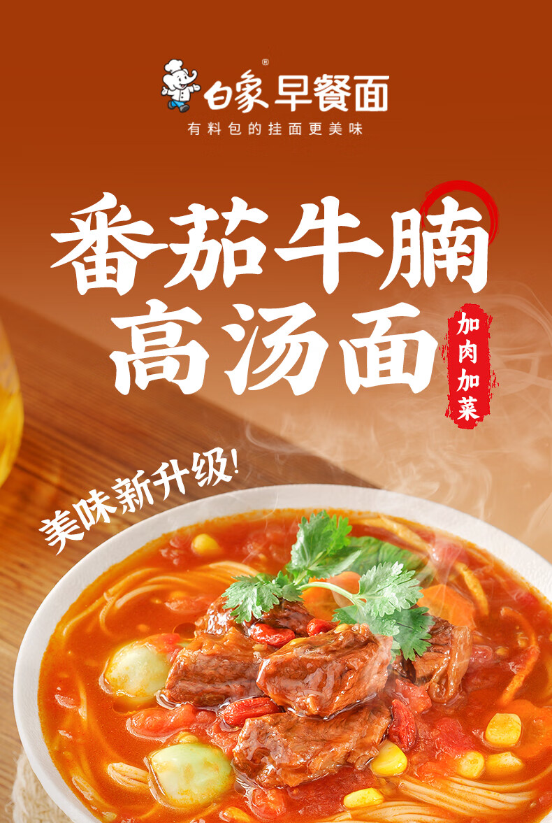 白象山药番茄牛腩面【20g肉臊子】非油炸方便速食大骨早餐面条169g