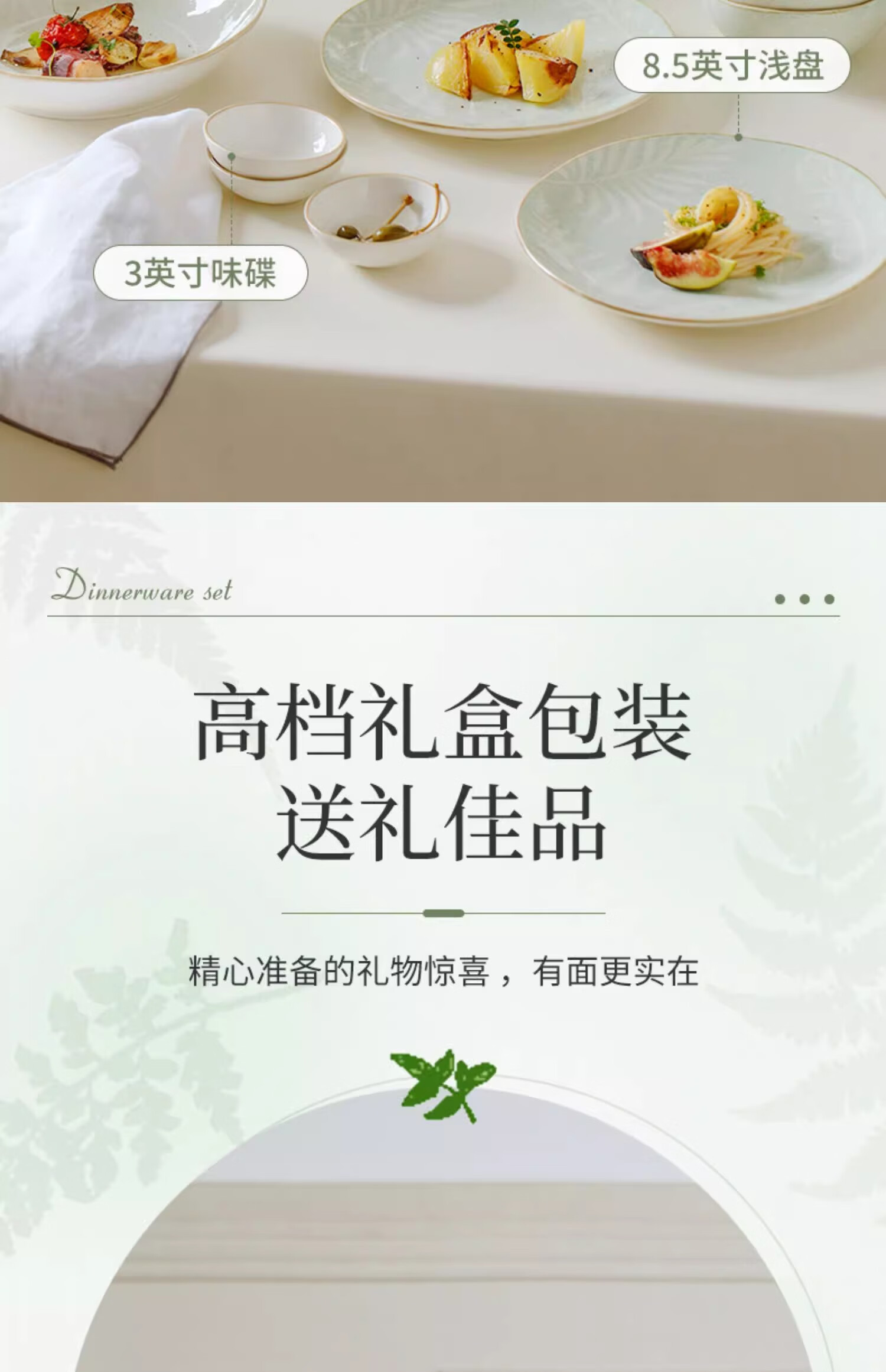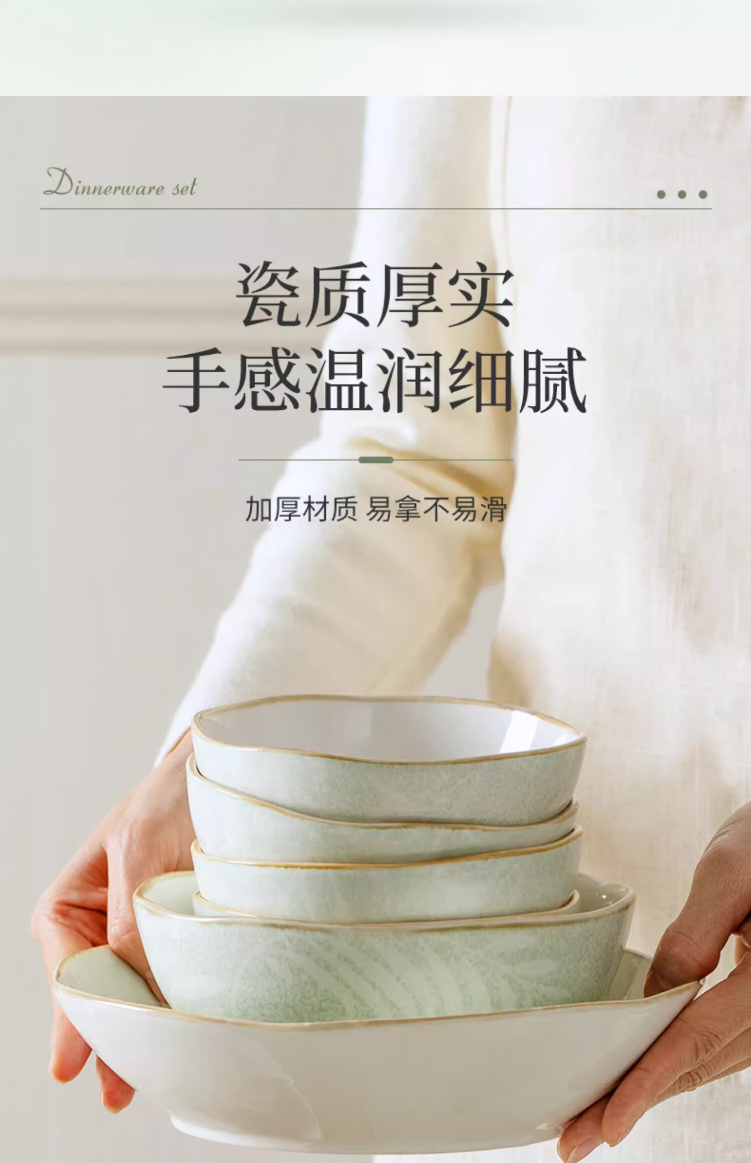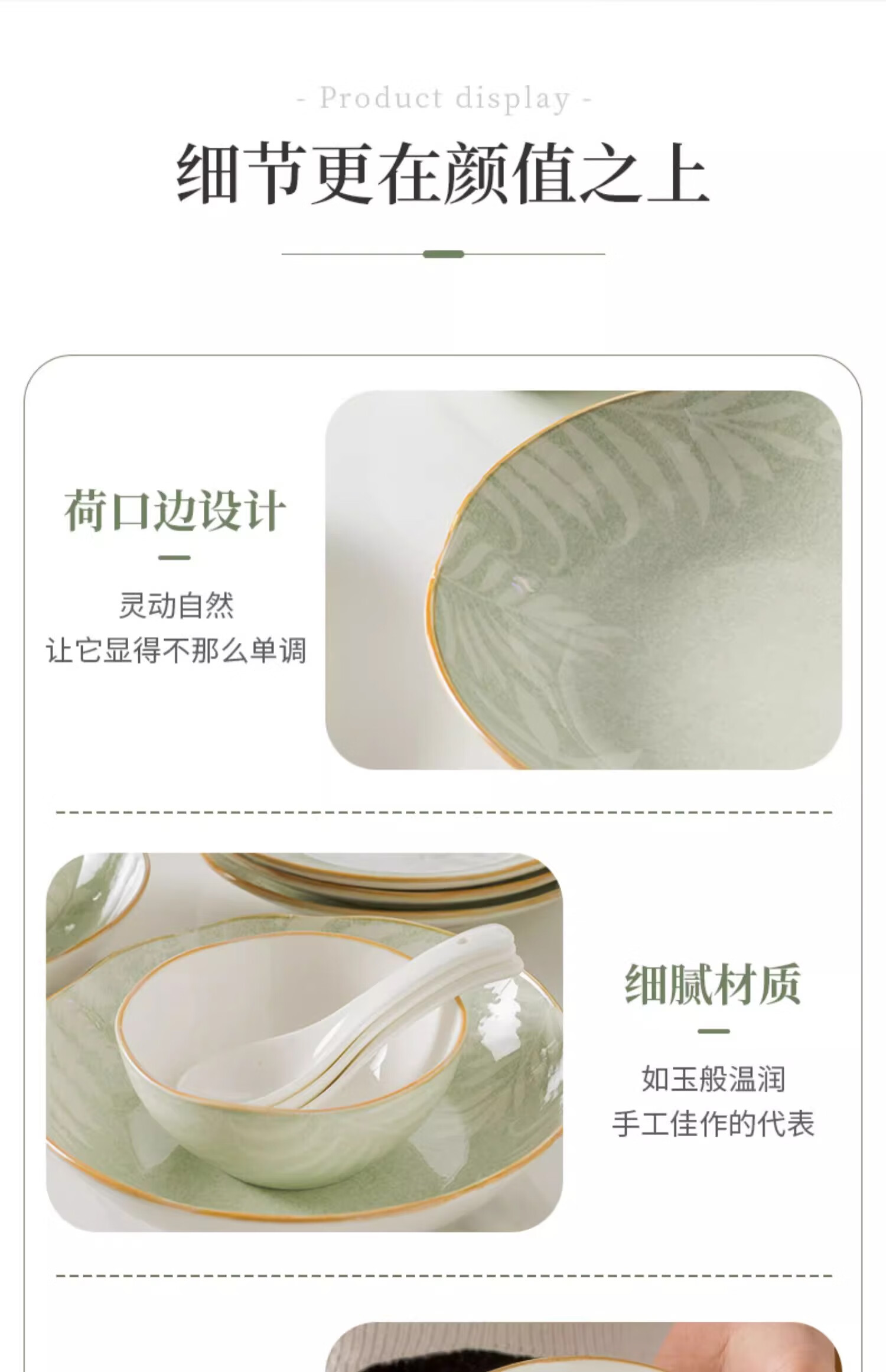 松发瓷器陶瓷餐具碗碟套装釉下彩整套碗盘筷套装乔迁彩盒28头凤尾草绿