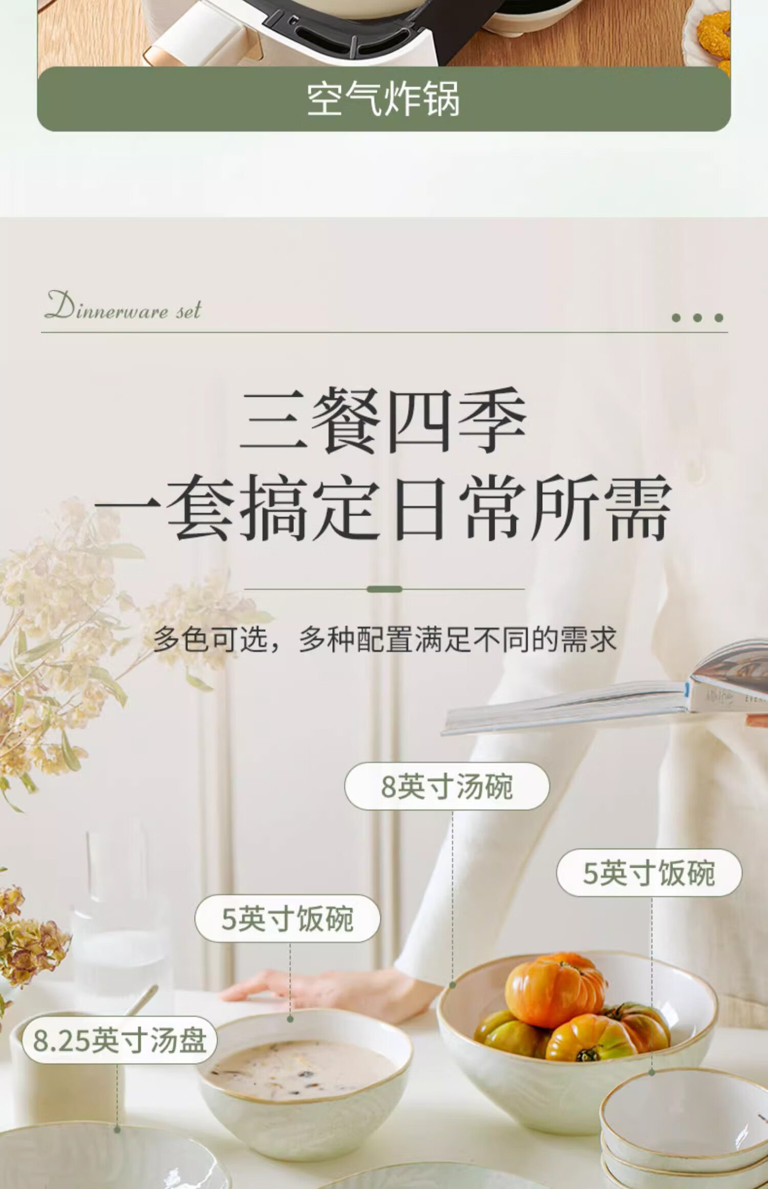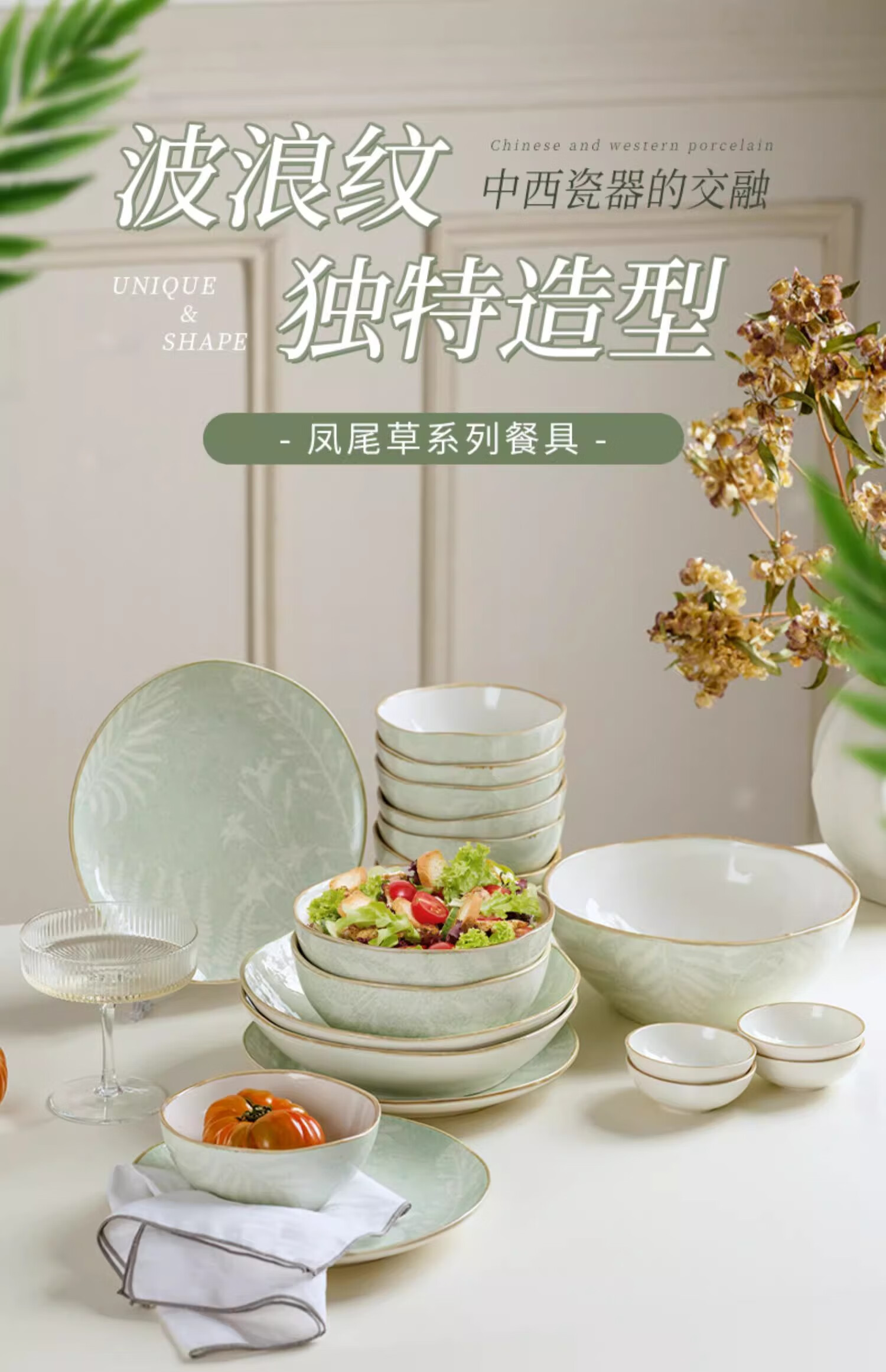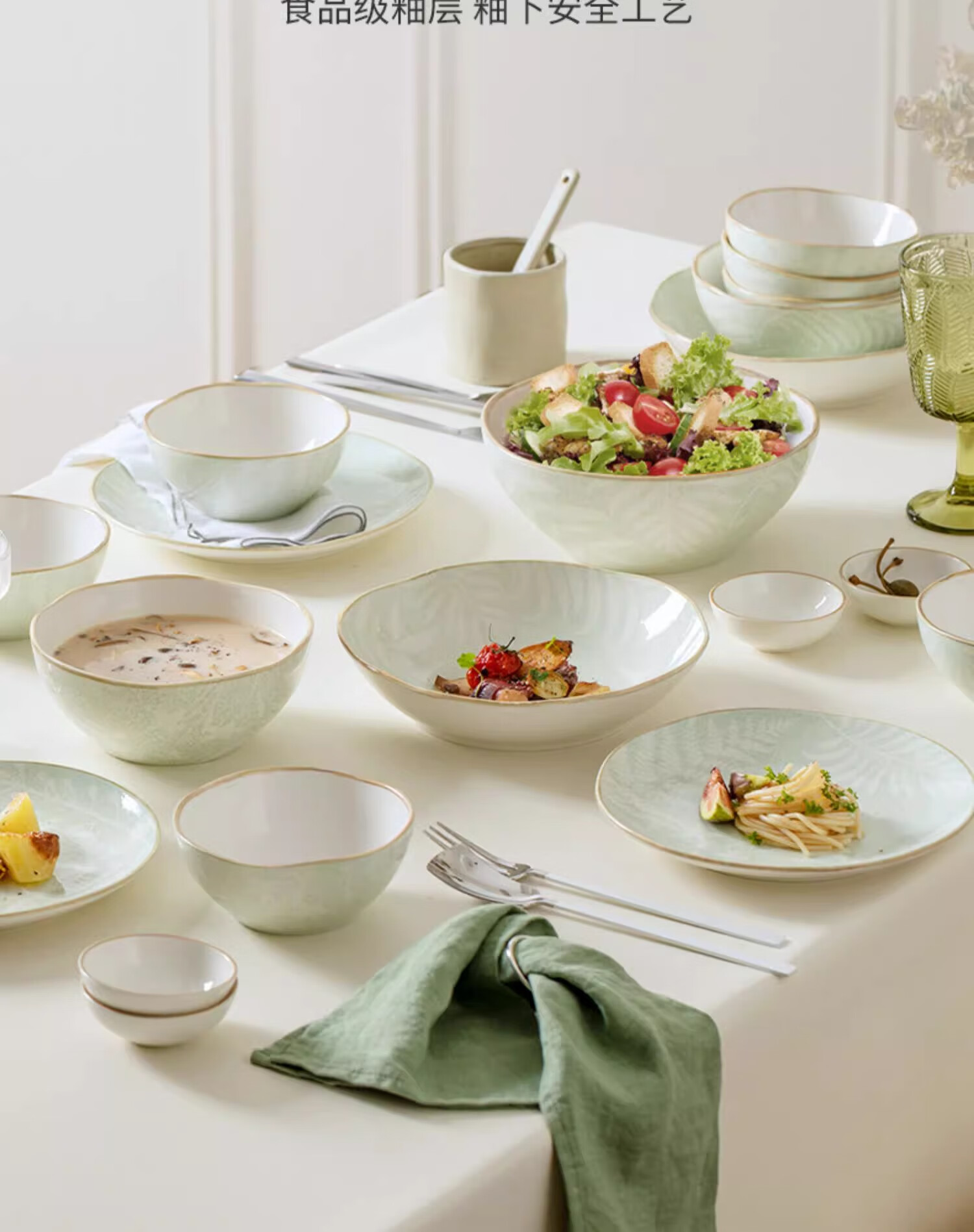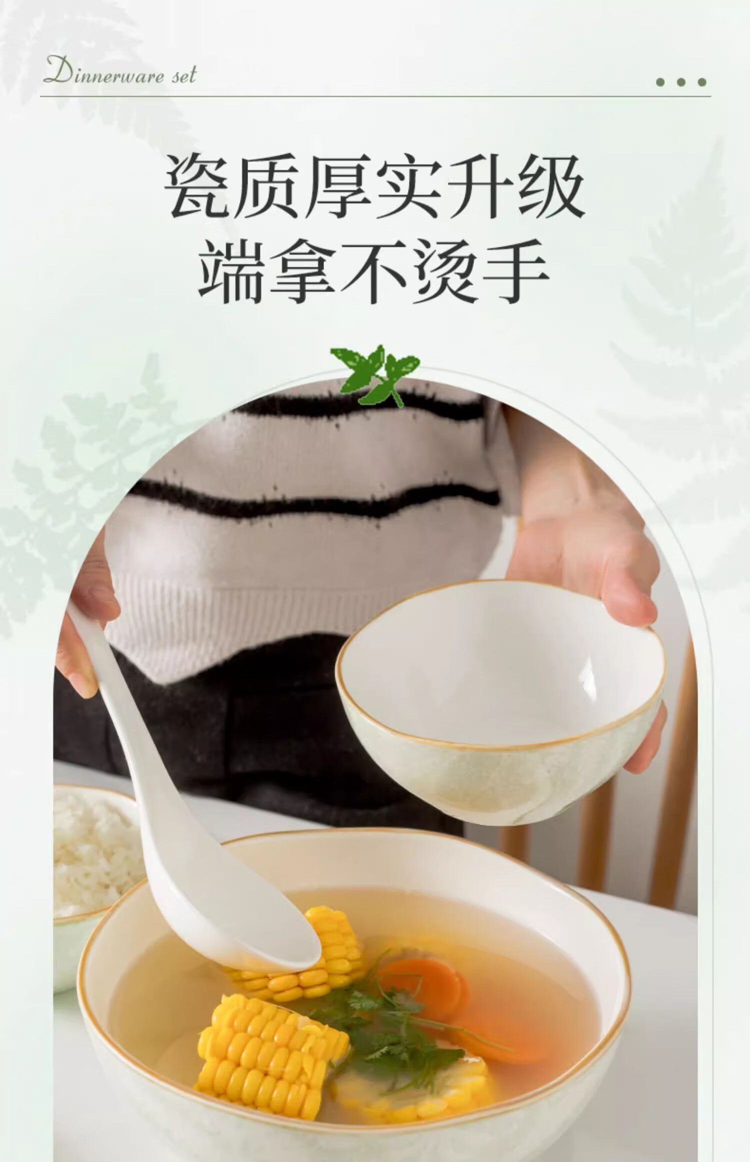 松发瓷器陶瓷餐具碗碟套装釉下彩整套碗盘筷套装乔迁彩盒28头凤尾草绿