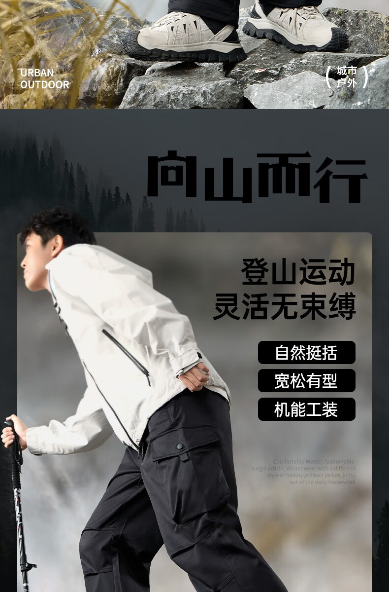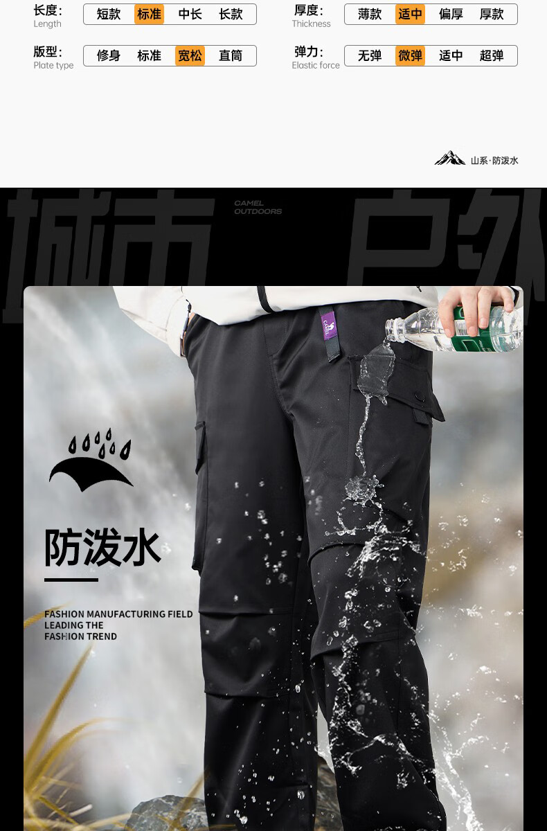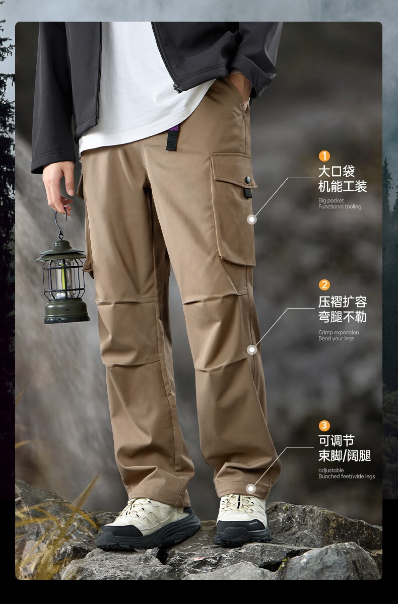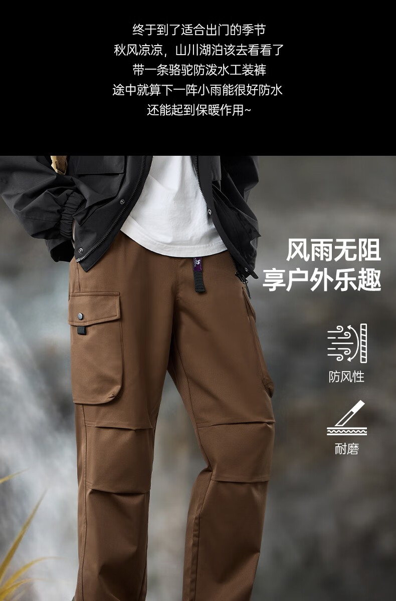 骆驼山海工装裤男装阔腿王俊凯同款春夏软壳直筒休闲长裤M14CAWI644