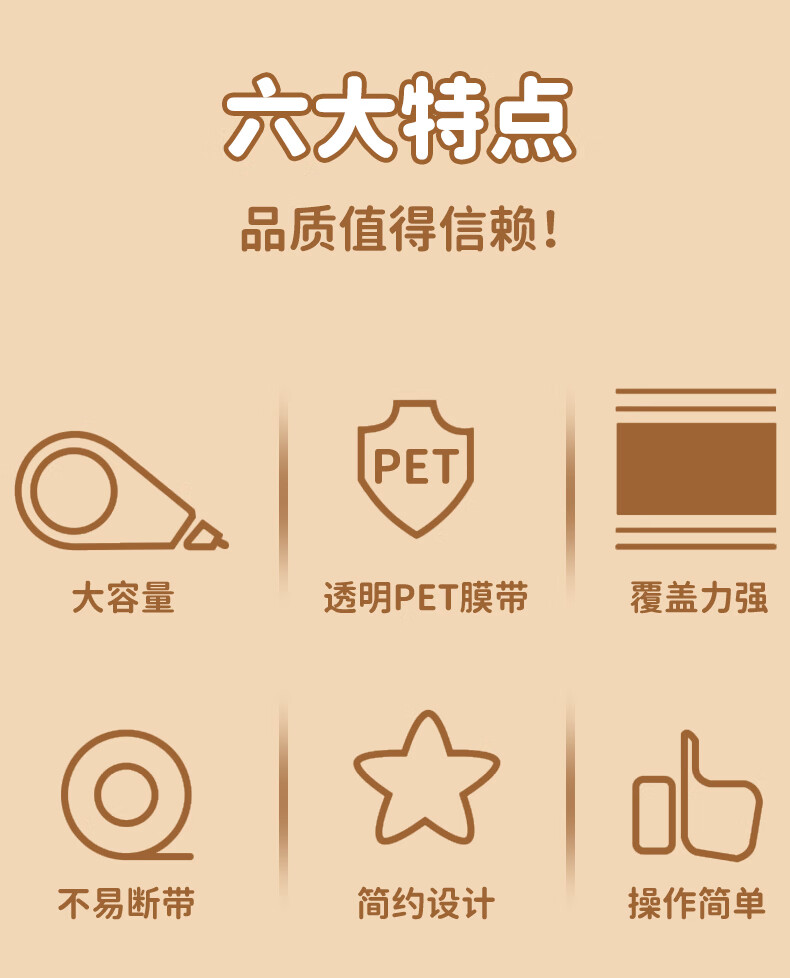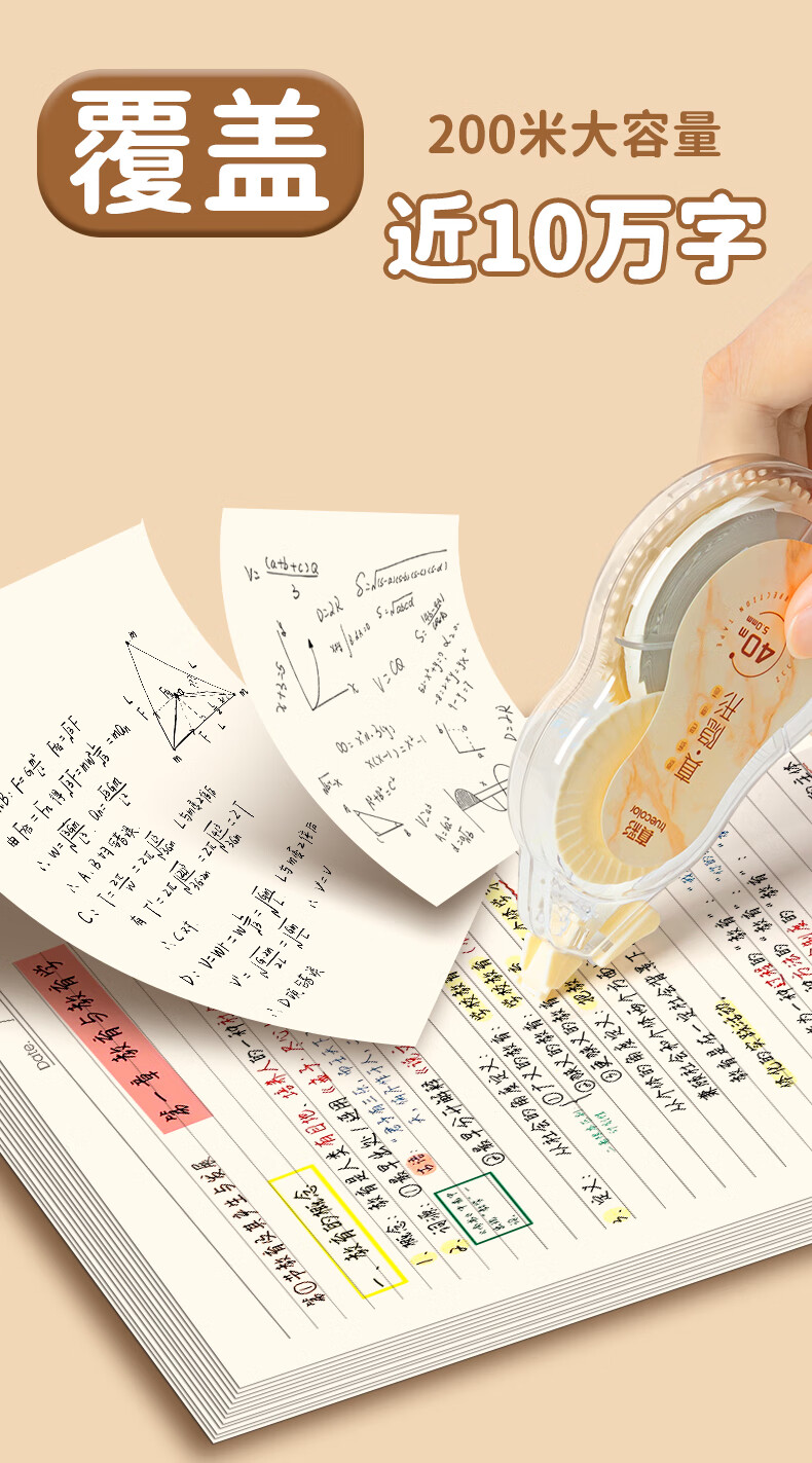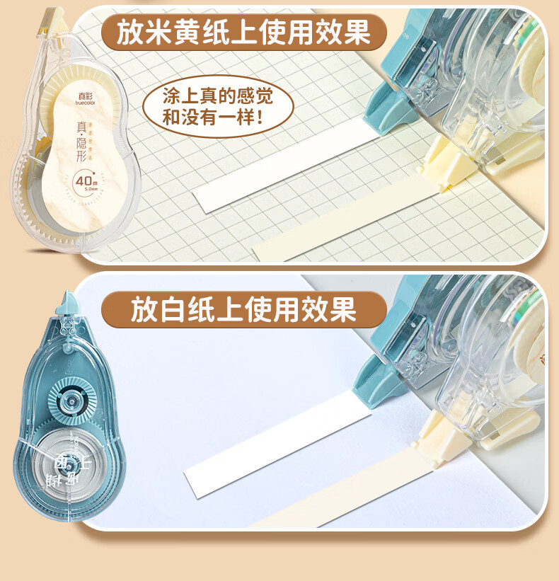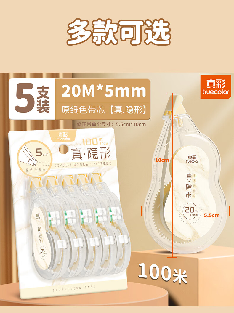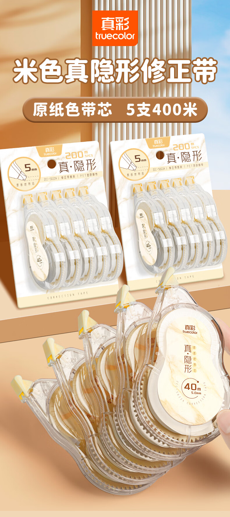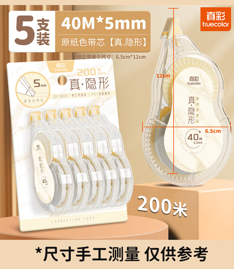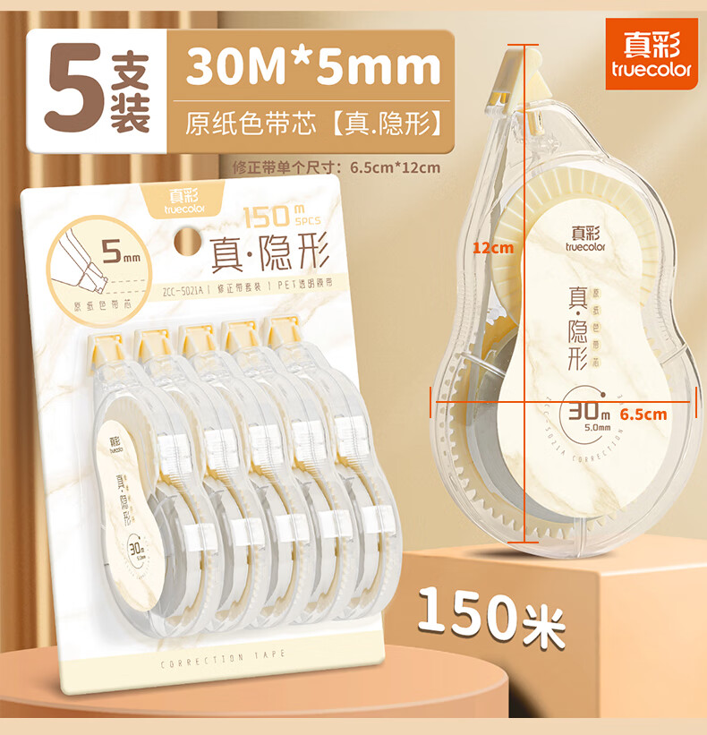 真彩(TRUECOLOR)米黄色修正带小学生专用涂改带隐形简约风初中高中生改正带高颜值大容量改字带顺滑护眼原纸色5020