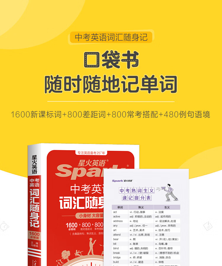 星火英语2026 中考英语词汇随身记 初中英语词汇口袋书 单词随身记 中考英语词汇随身记