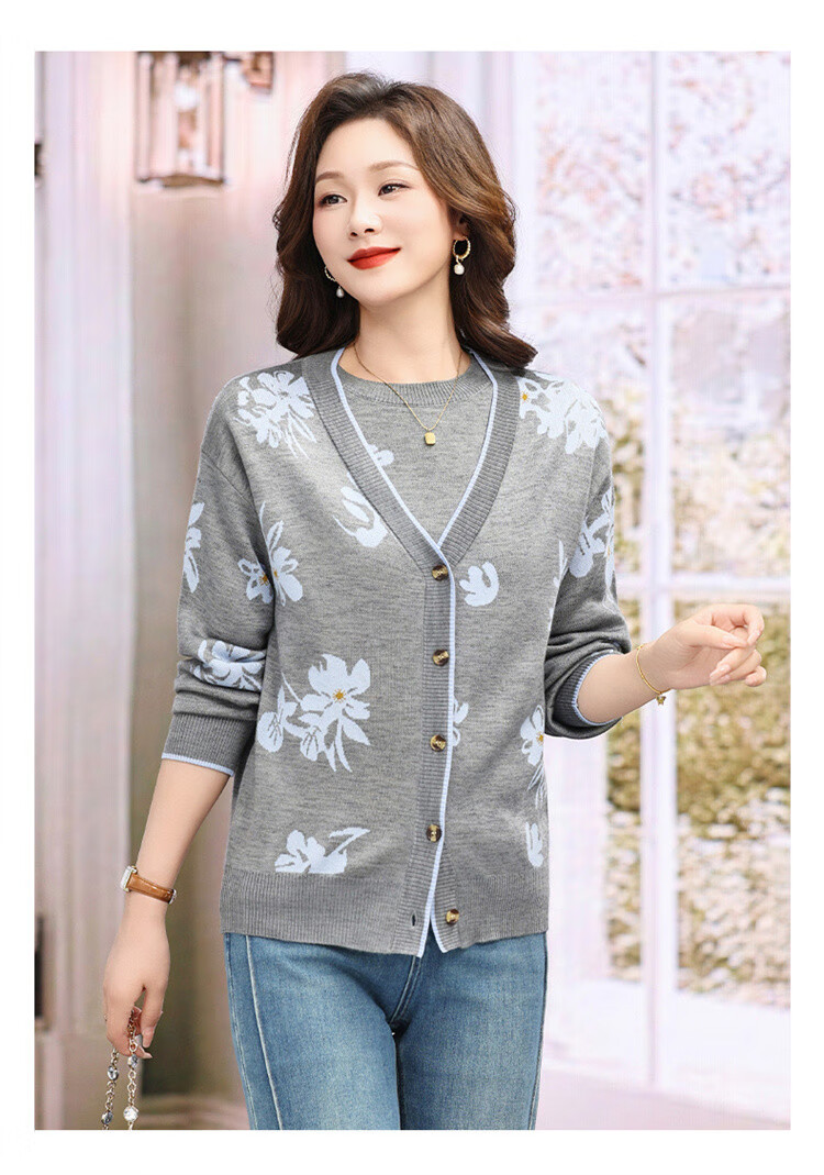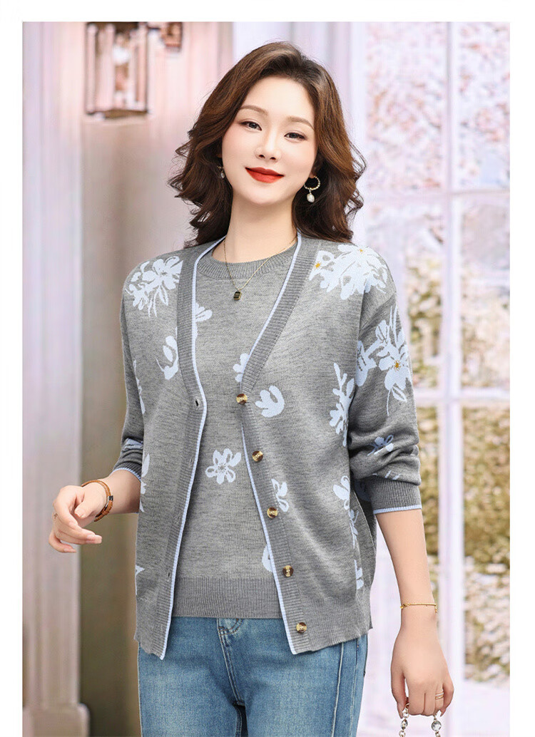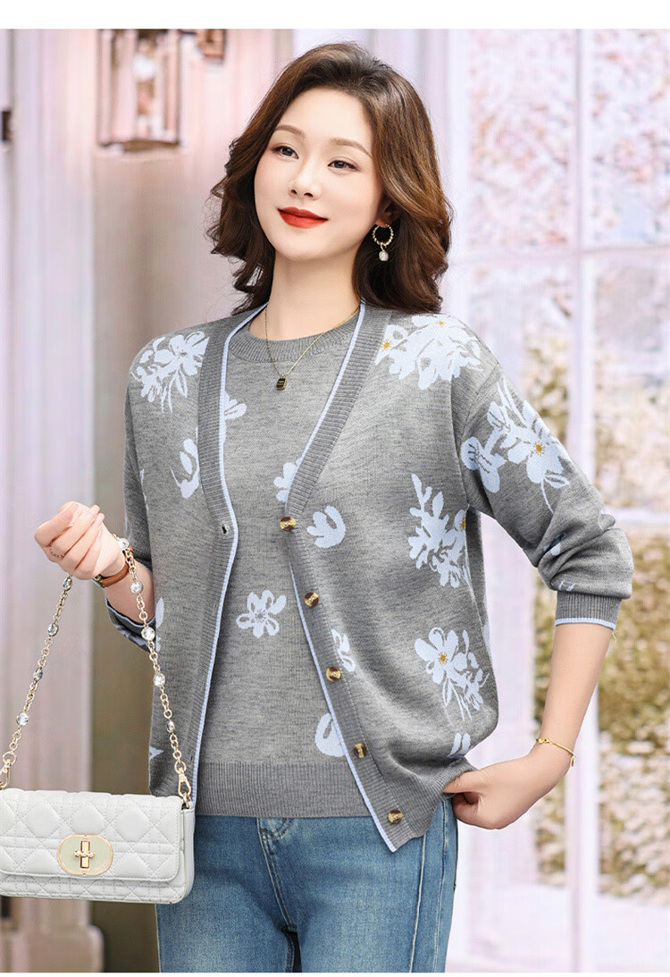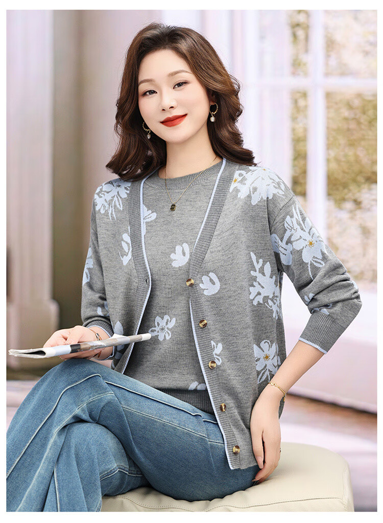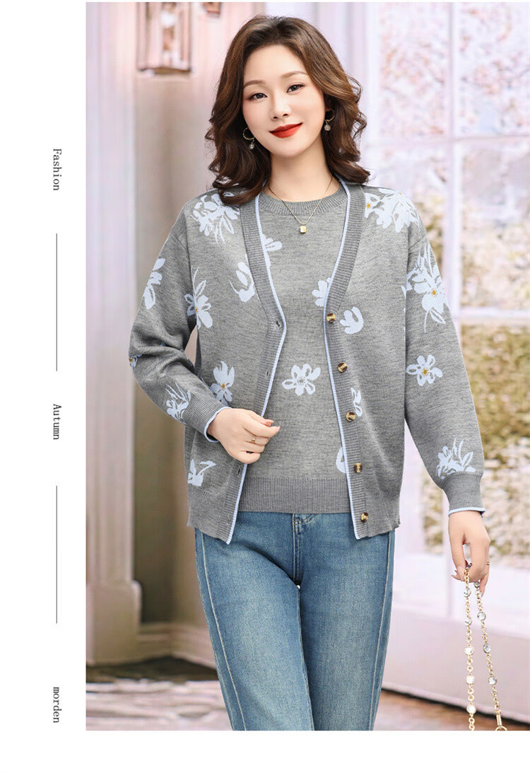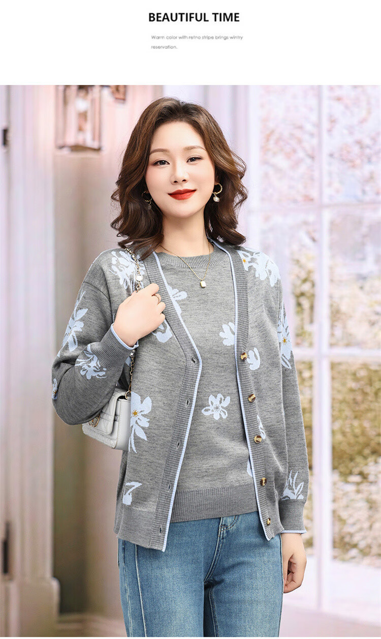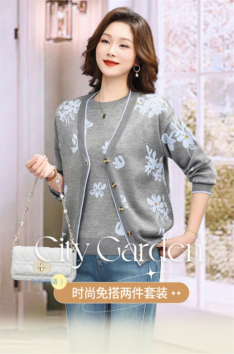 简狐妈妈秋季套装中老年女装秋装时尚春秋季长袖外套+纯色内搭两件套