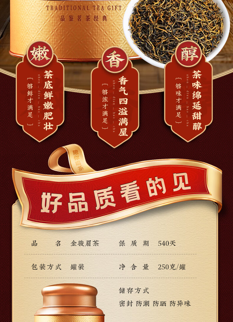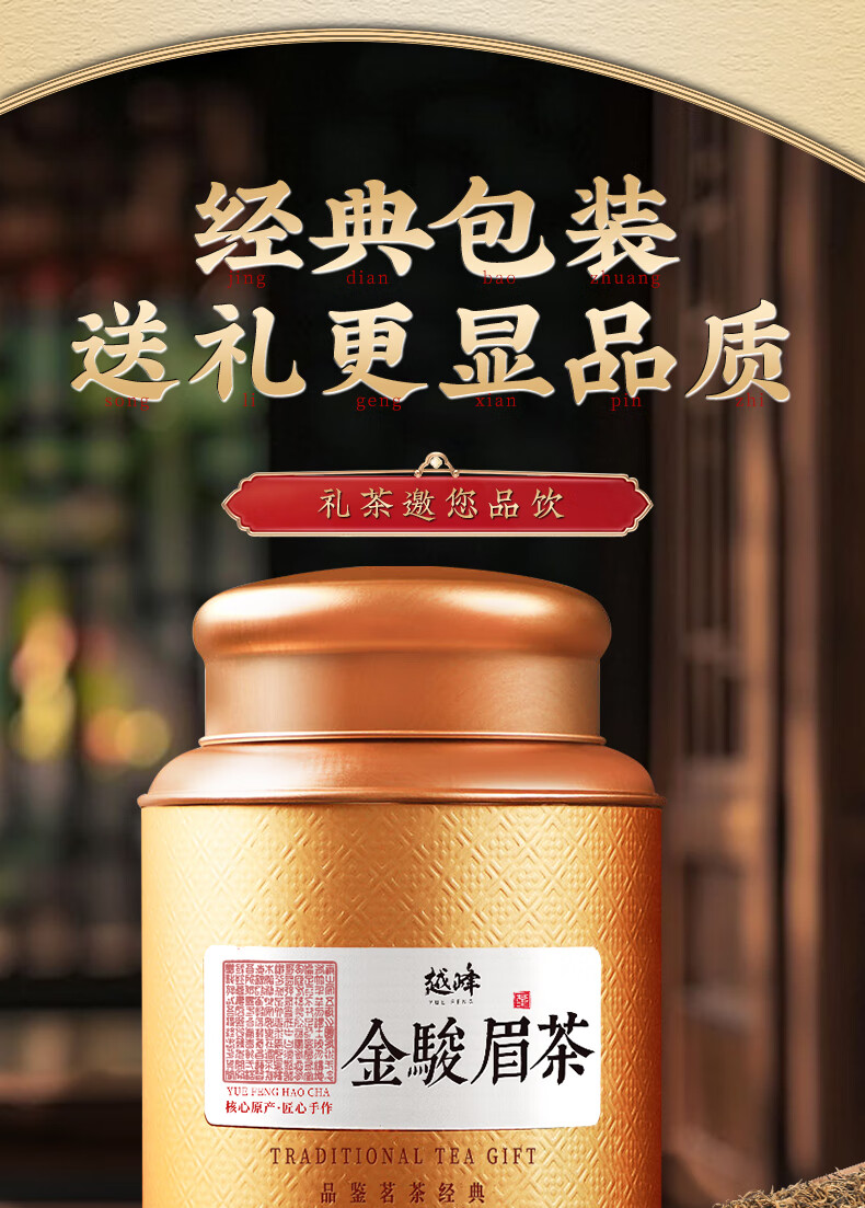 越峰金骏眉一级蜜香型红茶茶叶新茶正宗福建高山原产罐装送礼收藏500g