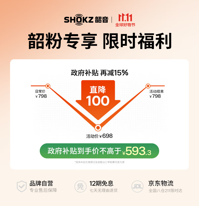 韶音(SHOKZ)【国家补贴】OpenRun Air S803骨传导耳机开放式运动跑步超长续航无线蓝牙耳机 石墨黑