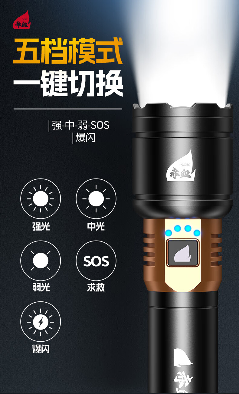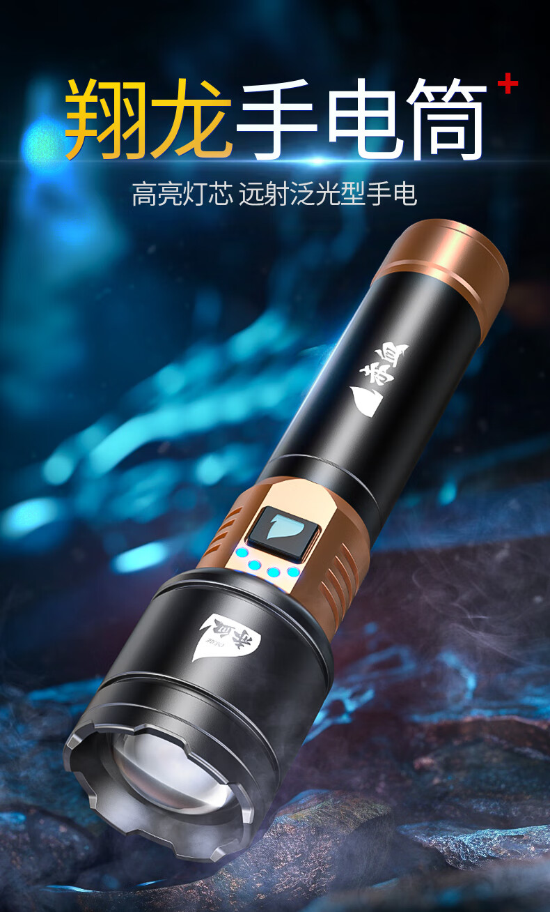黑熊猫赤血翔龙手电筒强光长续航照明灯二代升级款户外露营铝合金手电筒 【黑咖色】 赤血祥龙